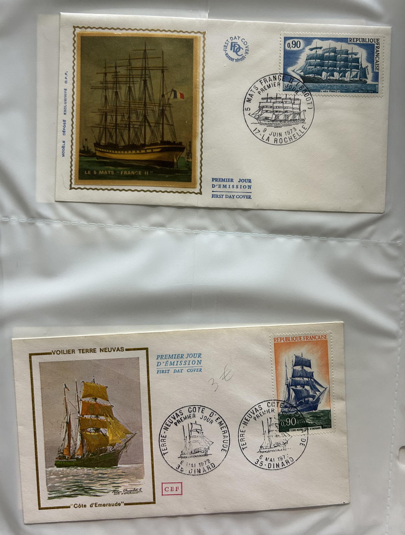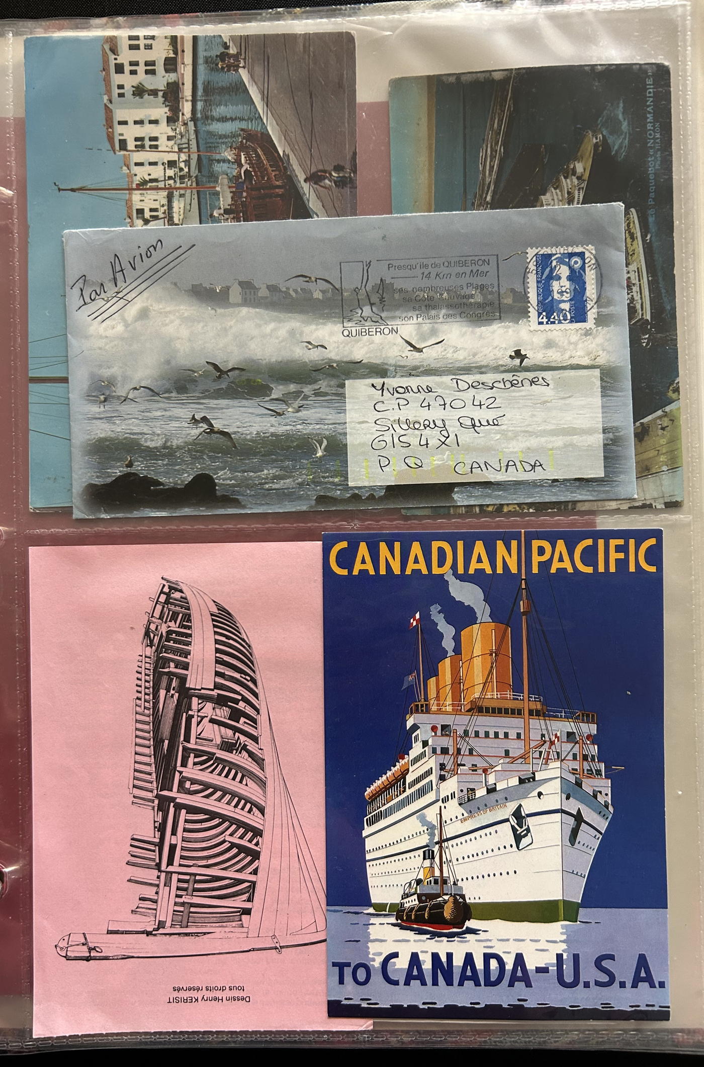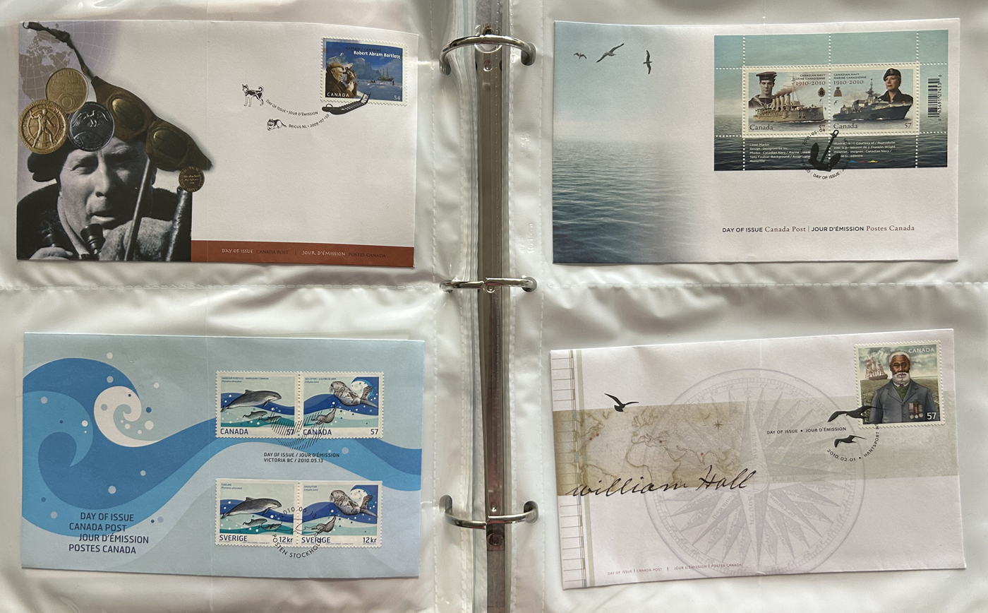 1690 CVR/nh   imageCollection and Accumulation of Boats and Ships on Stamps and Covers, with two binders containing about 210 worldwide commemorative or FDC covers or cards, with many from Canada, France and French Colonies. Mostly all modern, with a few older. Also about 100 mostly used stamps selected for the same topic. A good basis for expansion, overall very fine. (Scan 1) (Scan 2) (Scan 3) (Scan 4) (Scan 5) (Scan 6) (Scan 7) (Scan 8) (Scan 9) (Scan 10) (Scan 11) (Scan 12) (All Scans)