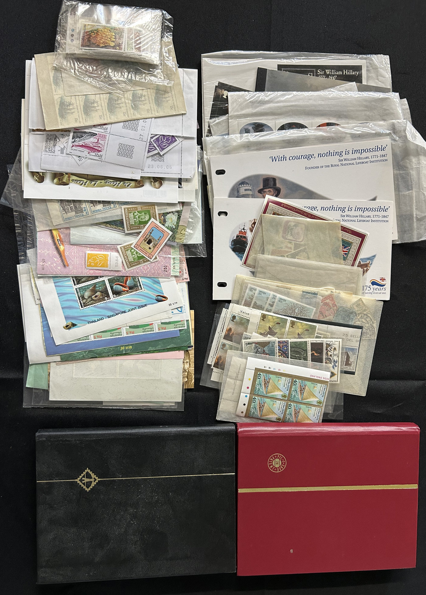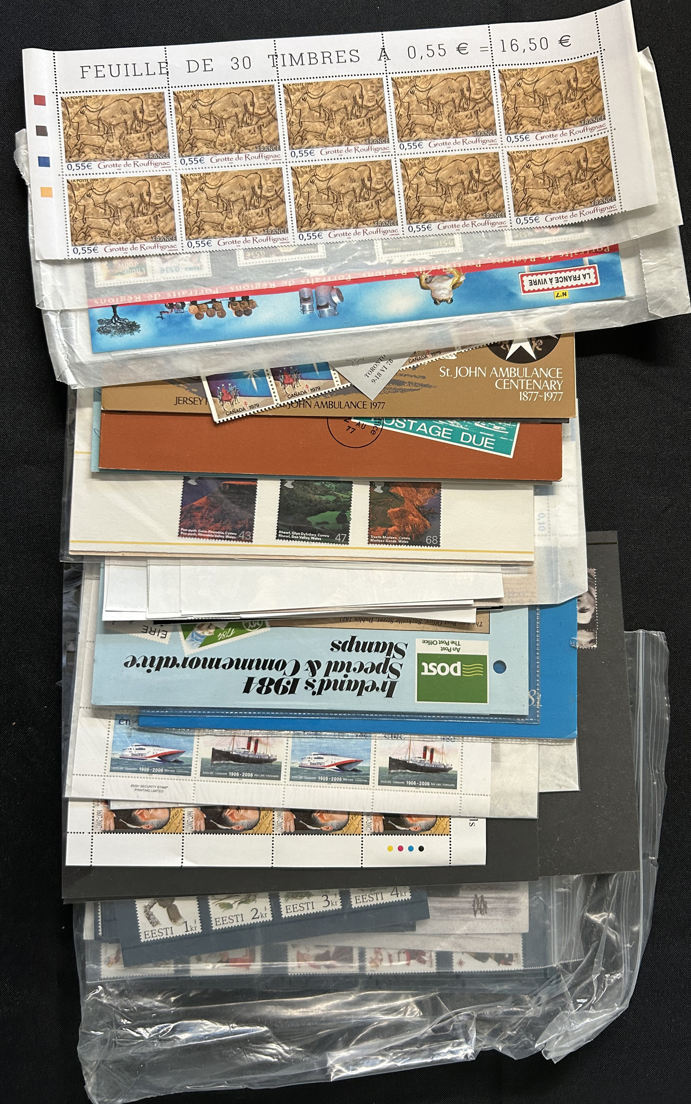 1687 O/og/nh   imageHuge Remainder Lot of Worldwide Singles, Sets, Souvenir Sheets, etc. in 8 binders / stockbooks plus a white box of glassines, presentation packs, etc. Some of the interesting items we noted include a box containing 115 different New Zealand booklets (2001-2003, face value NZ$658), several recent GB and other country presentation packs, a good quantity of worldwide modern NH new issues including from France, Australian Antarctic Territory, Ireland, Thailand, Estonia, Japan and more. The stockbooks contain a mix of mint and used, with hundreds of singles, sets, souvenir sheets and much more. Words simply cannot do justice to this valuable lot, see our pictures for just a small idea. Should easily be worth our very low estimate. (Scan 1) (Scan 2) (Scan 3) (Scan 4) (Scan 5) (Scan 6) (Scan 7) (Scan 8) (Scan 9) (Scan 10) (Scan 11) (Scan 12) (Scan 13) (Scan 14) (Scan 15) (All Scans)