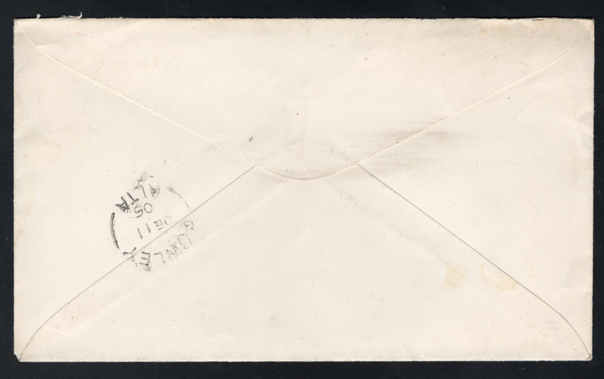 310 CVR   image1906 Gillingham and Cowley Alta Postmarks on Cover, a "Local Improvement District 4-A-5" corner card 2c red KEVII stationery envelope mailed from Gillingham on DEC.10.1906 (very fine free strike) to Cowley, with a fine JAN.11.1906 receiver on back, very fine. Interesting that it would have taken this cover 30 days to reach its destination, unless the month of the despatch date is incorrect). A scarce postmark, as the Gillingham post office was only open from 1898 to 1912. (Scan 1) (Scan 2) (All Scans) (All Images)