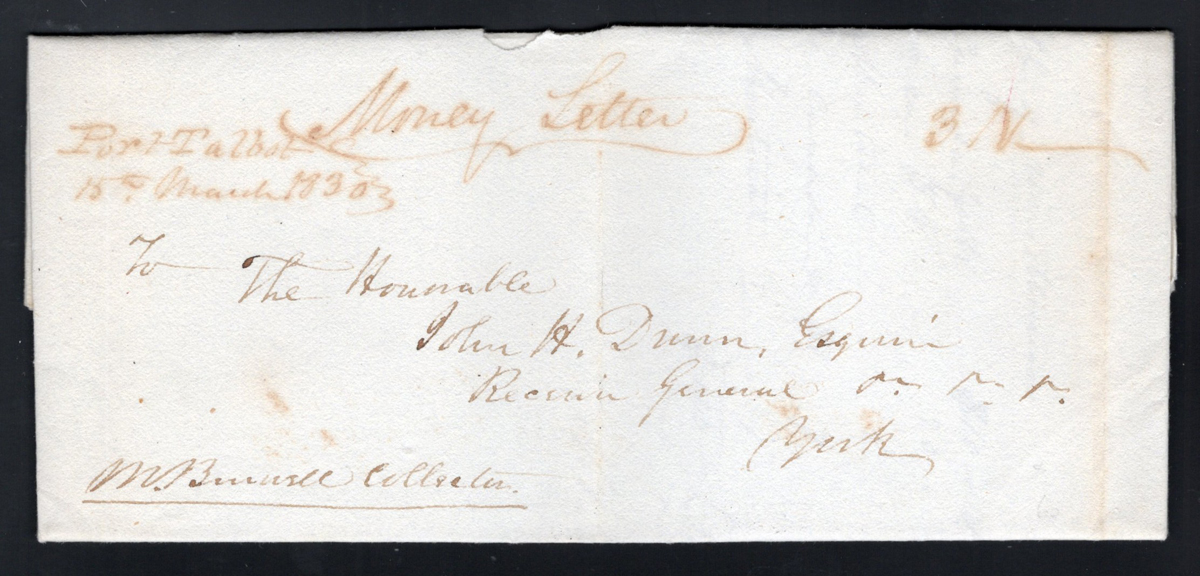 Manuscript (U.C.) Precursor on Folded Money Letter to York, mailed on MAR.15.1830 (two-line manuscript is the latest recorded date) to John Dunn in York, rated "3N" and would have included (apart from the letter) £10 Cy. Very fine and scarce.