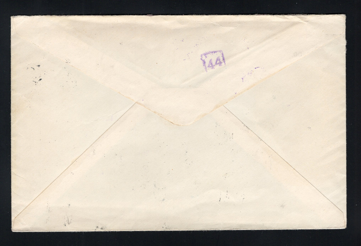 (type 7C) handstamp in purple, and back shows a small boxed "44" censor unit number in purple, very fine. (Scan 1)