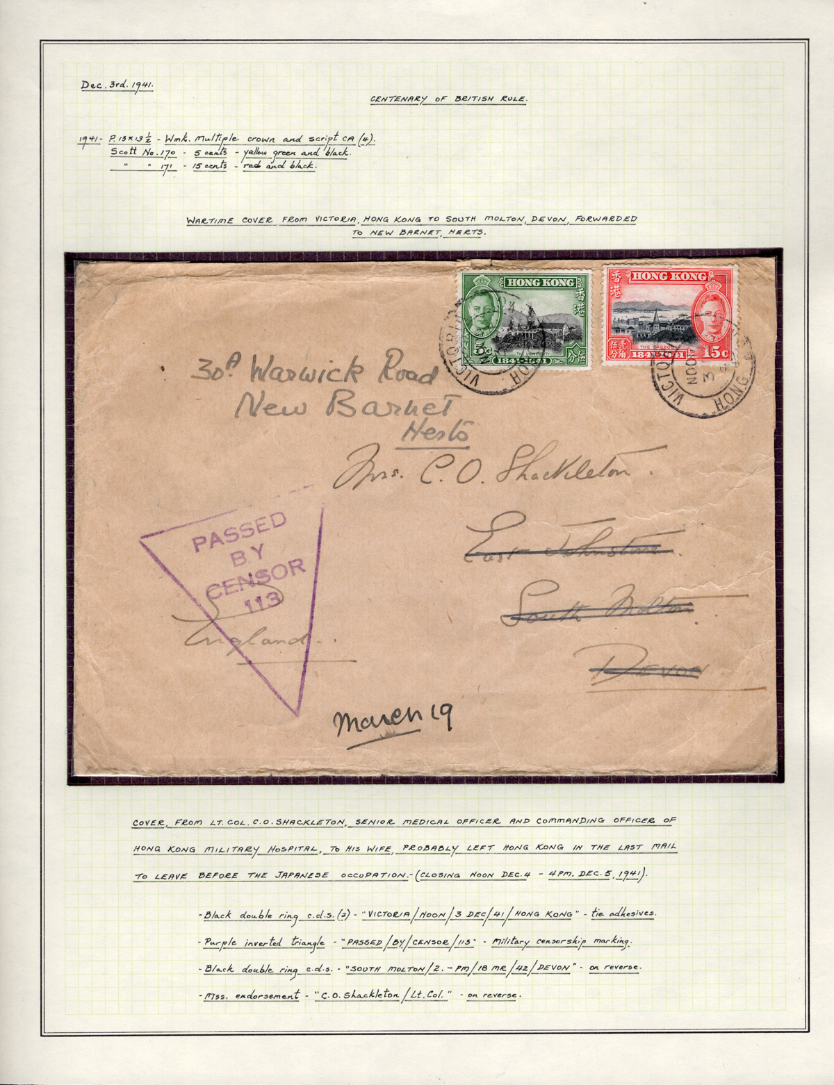 This was mailed during the Japanese attack on Pearl Harbour and Hong Kong. (Scan 1)