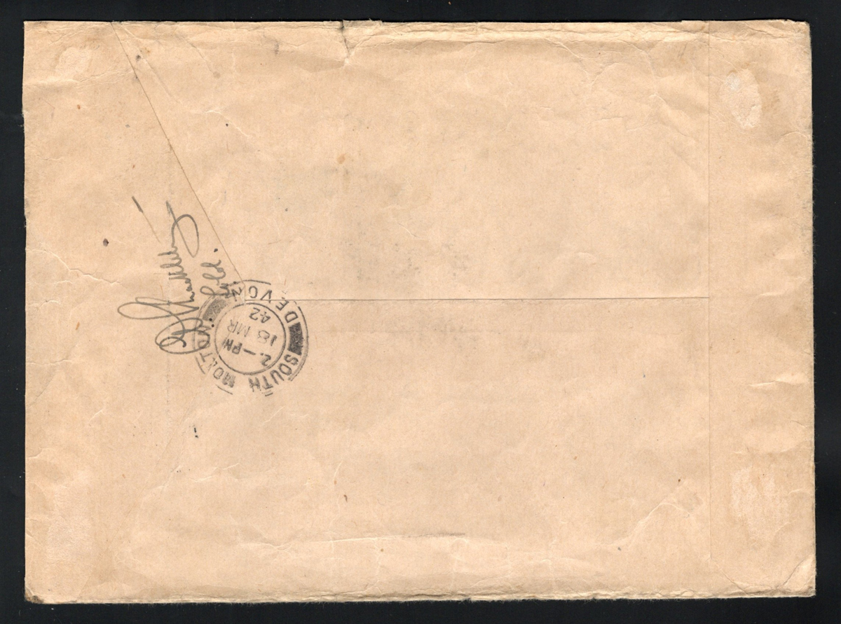 MAR.18.1942 South Molton receiver. The cover was then forded to an other English address, very fine. Accompanied by a 1987 note from the "HKSC Survey of Military Censorship Handstamps" chair thanking the owner for submitting this handstamp and
