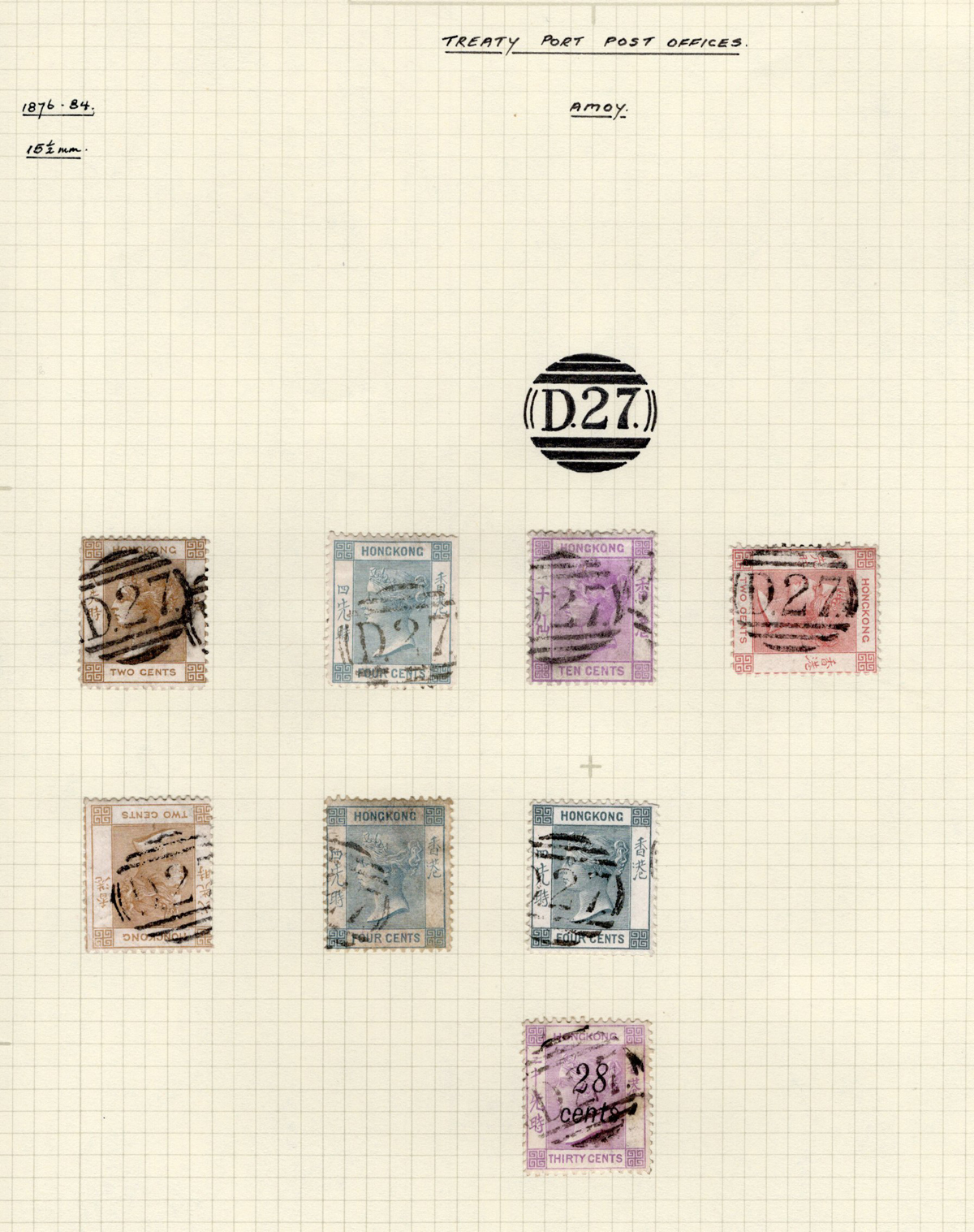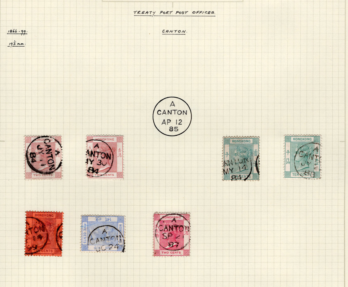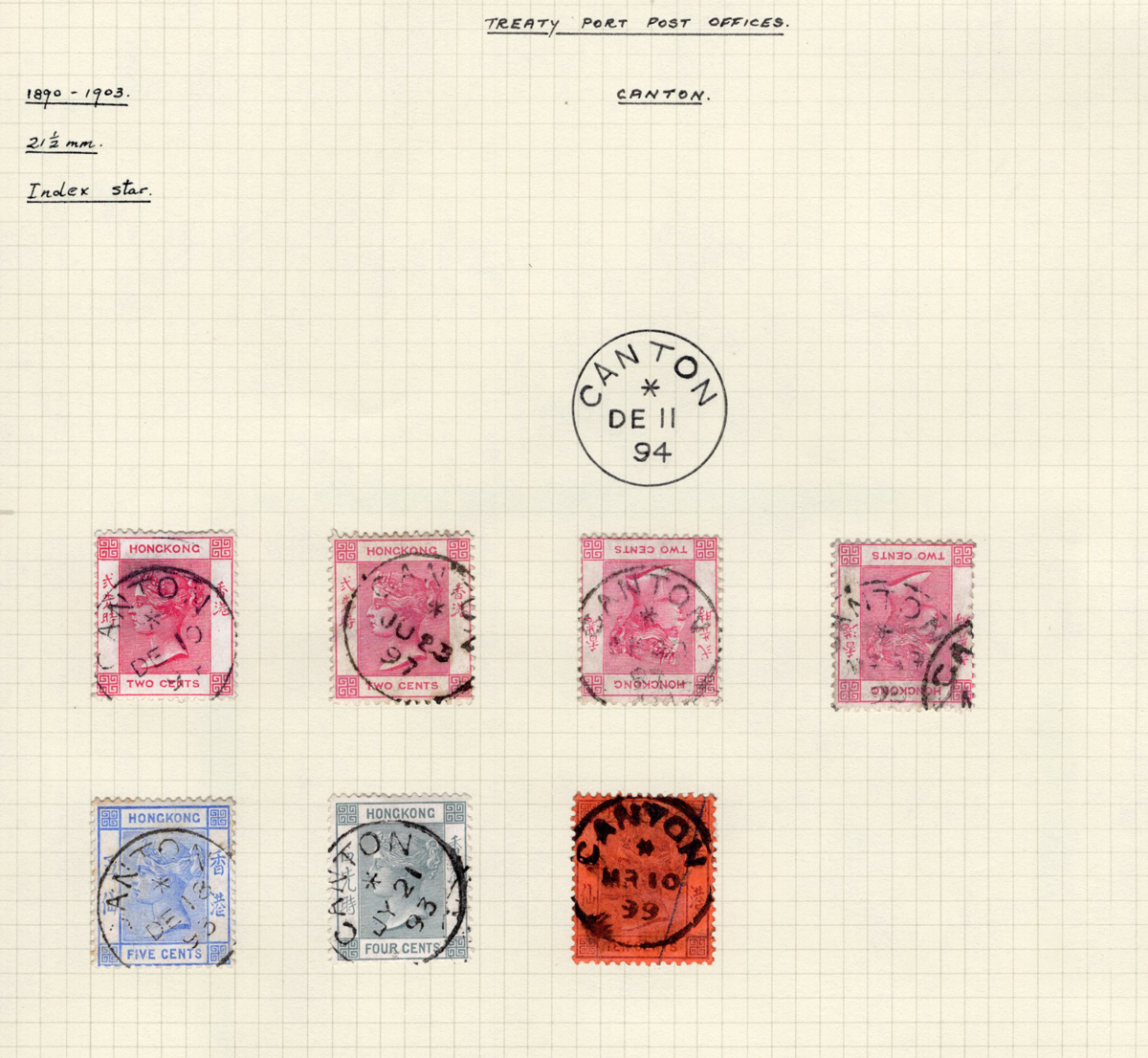 C.D.S. (Curved, with * Index) Cancels on Seven Queen Victoria Hong Kong Issues, a fine to very fine strike on a variety of issues, overall fine, with several fully dated. Scott catalogue value is $298, SG £245.