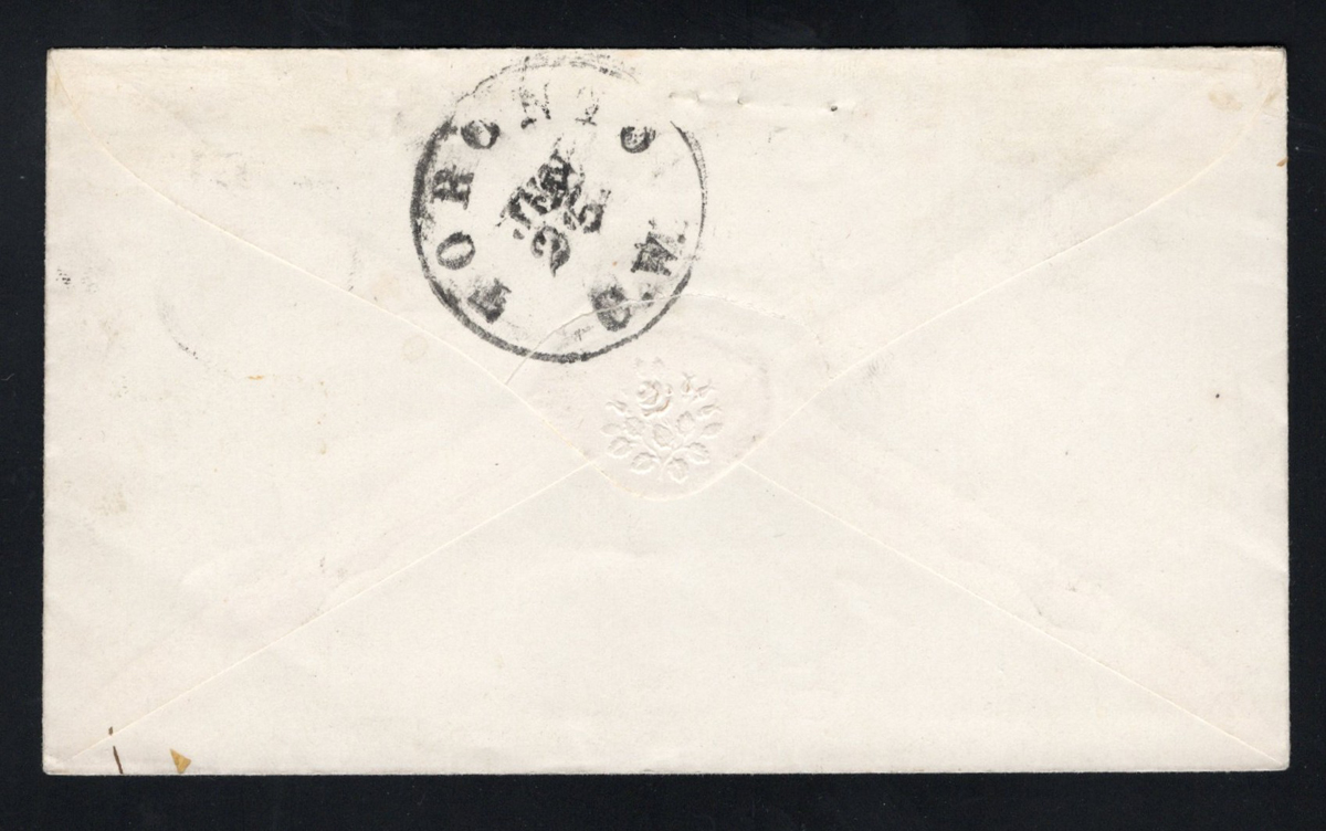 "Changeling" on Registered Cover to Toronto, also known as a "Ruggles" postmark, this JUN.24.1857 example is a very fine strike, clearly showing the two outer-rings that were once filled with lead to form a single ring, on a registered cover to