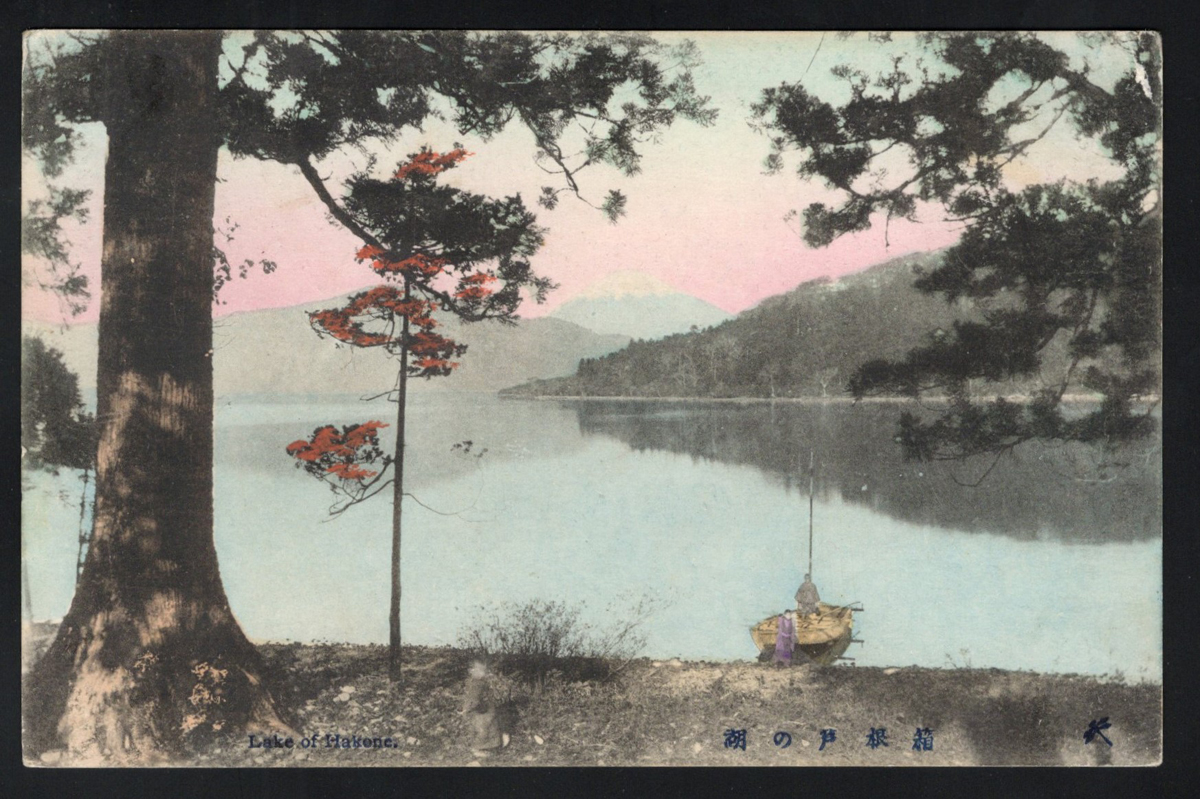 from Chefoo, China to England, a U.P.U. card printed in Japan mailed on MAY.30.1910 (c.d.s. ties 4c carmine KEVII Hong Kong stamp), endorsed “via Siberia”. The picture side shows a colourized view of “Lake of Hakone”, very fine. (Scan 1)