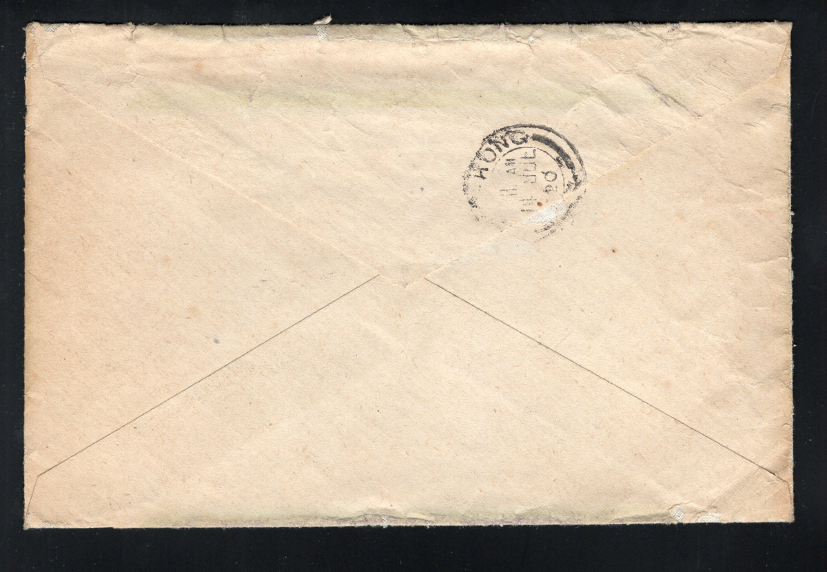 648 CVR   image1915 Cover from Wei-Hai-Wei China to Chefoo China, mailed on MAR.21.1915 (WEI-HAI-WEI / PORT EDWARD c.d.s. ties 4c KGV Hong Kong stamp) to a Girl’s School in Chefoo, with a partial MAR.23 receiver on back. Tear on back flap, else fine.