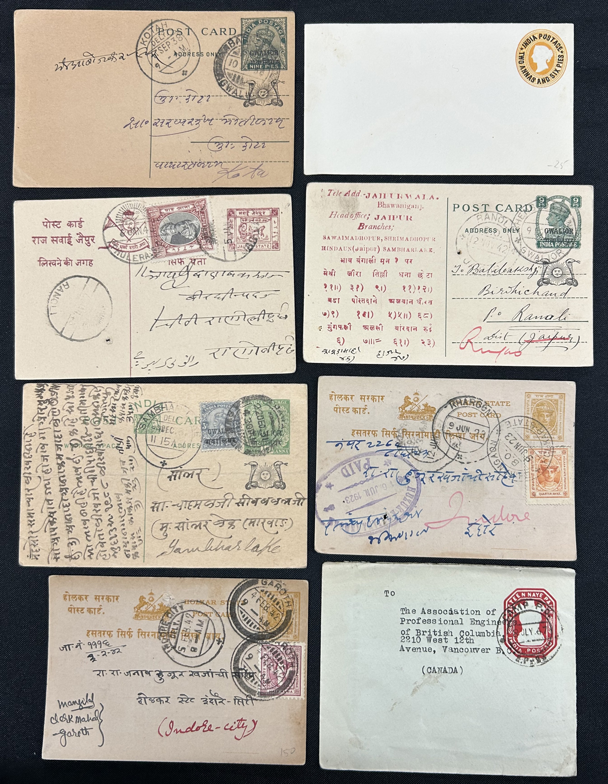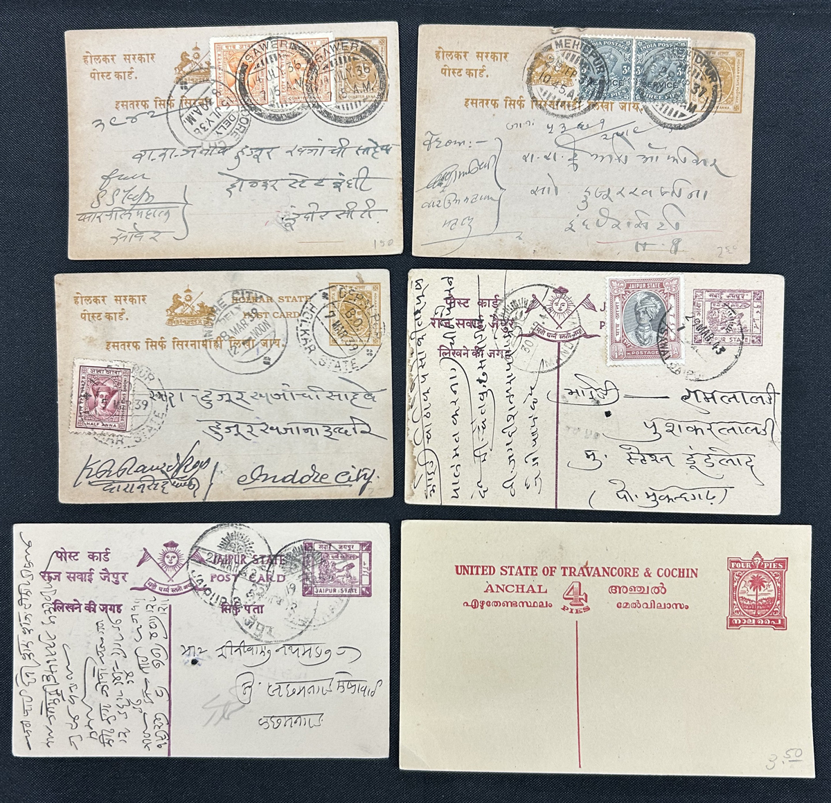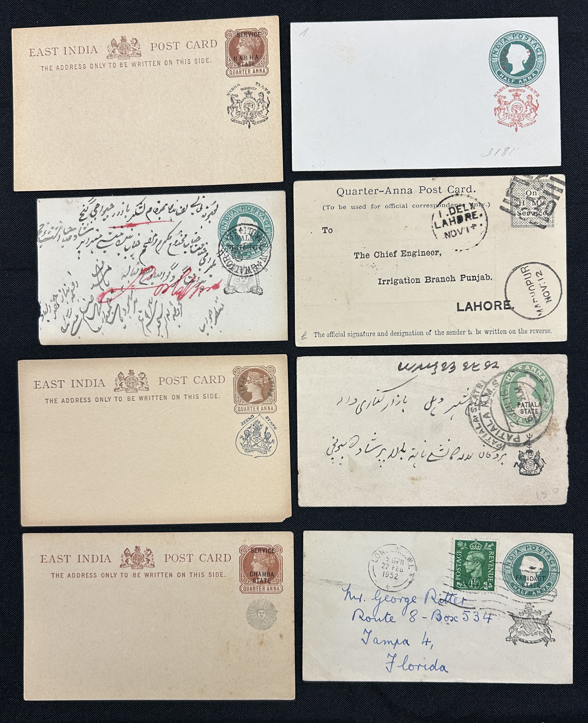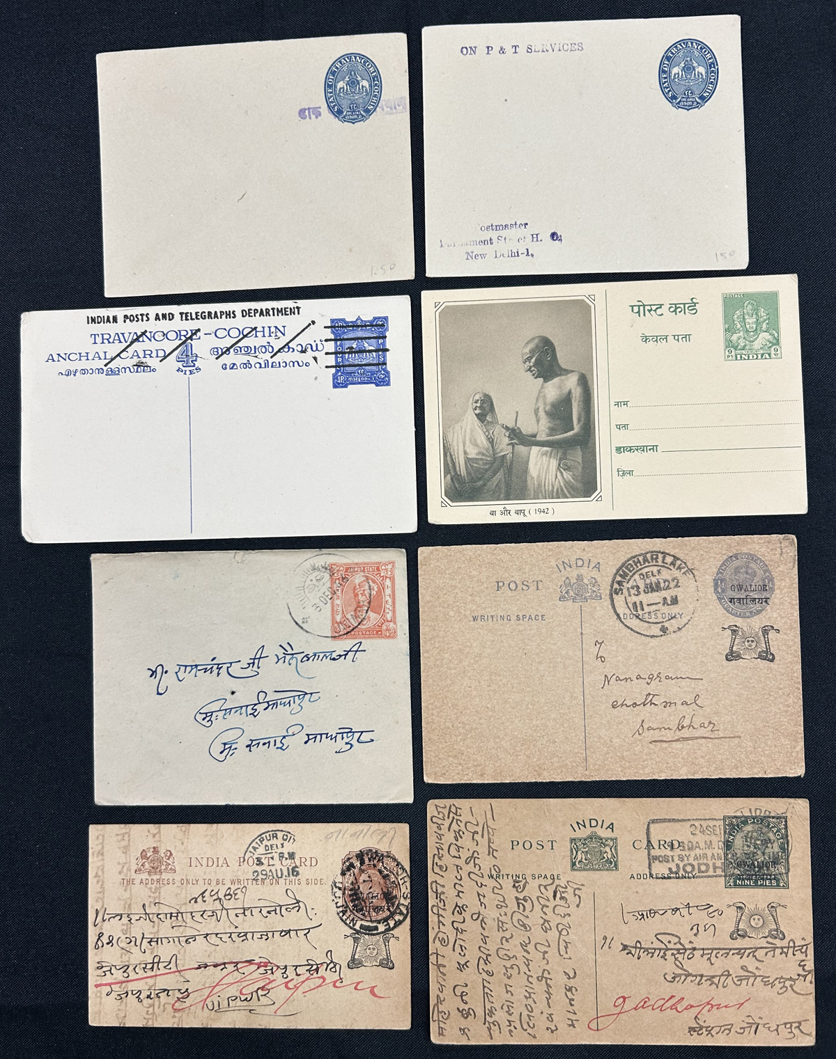 700 PC/CVR Indian States imageGroup of Over 170 Used and Unused Indian States Postal Stationery Cards and Covers, with a good variety of issues, the used ones have a good variety of postmarks, we note a few illustrated and much more. Overall fine to very fine quality, our photos only show a selection. (Scan 1) (Scan 2) (Scan 3) (Scan 4) (Scan 5) (Scan 6) (Scan 7) (All Scans) (All Images)