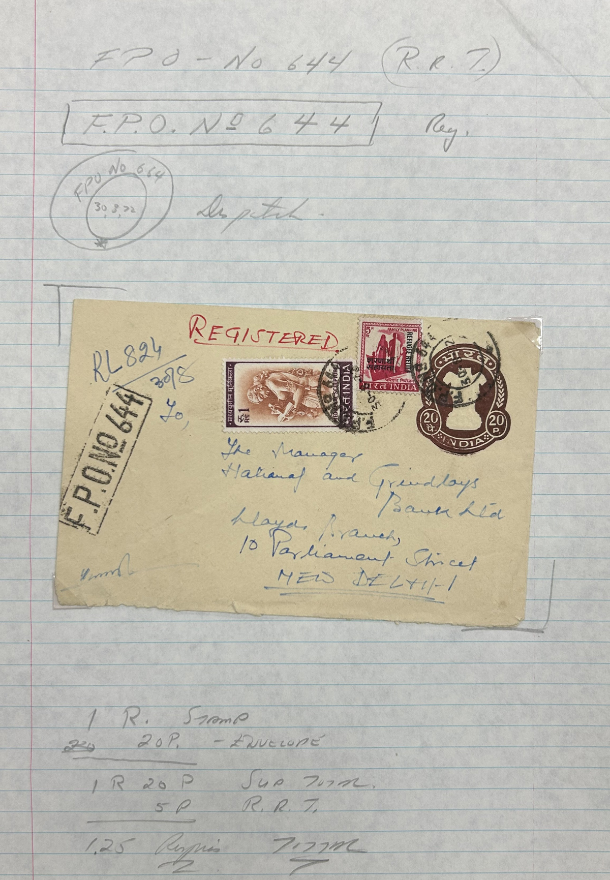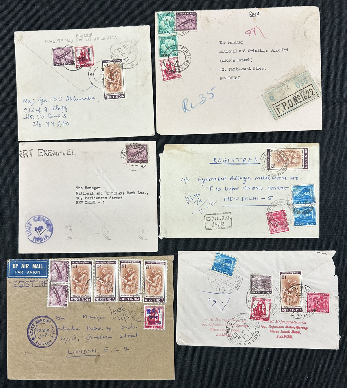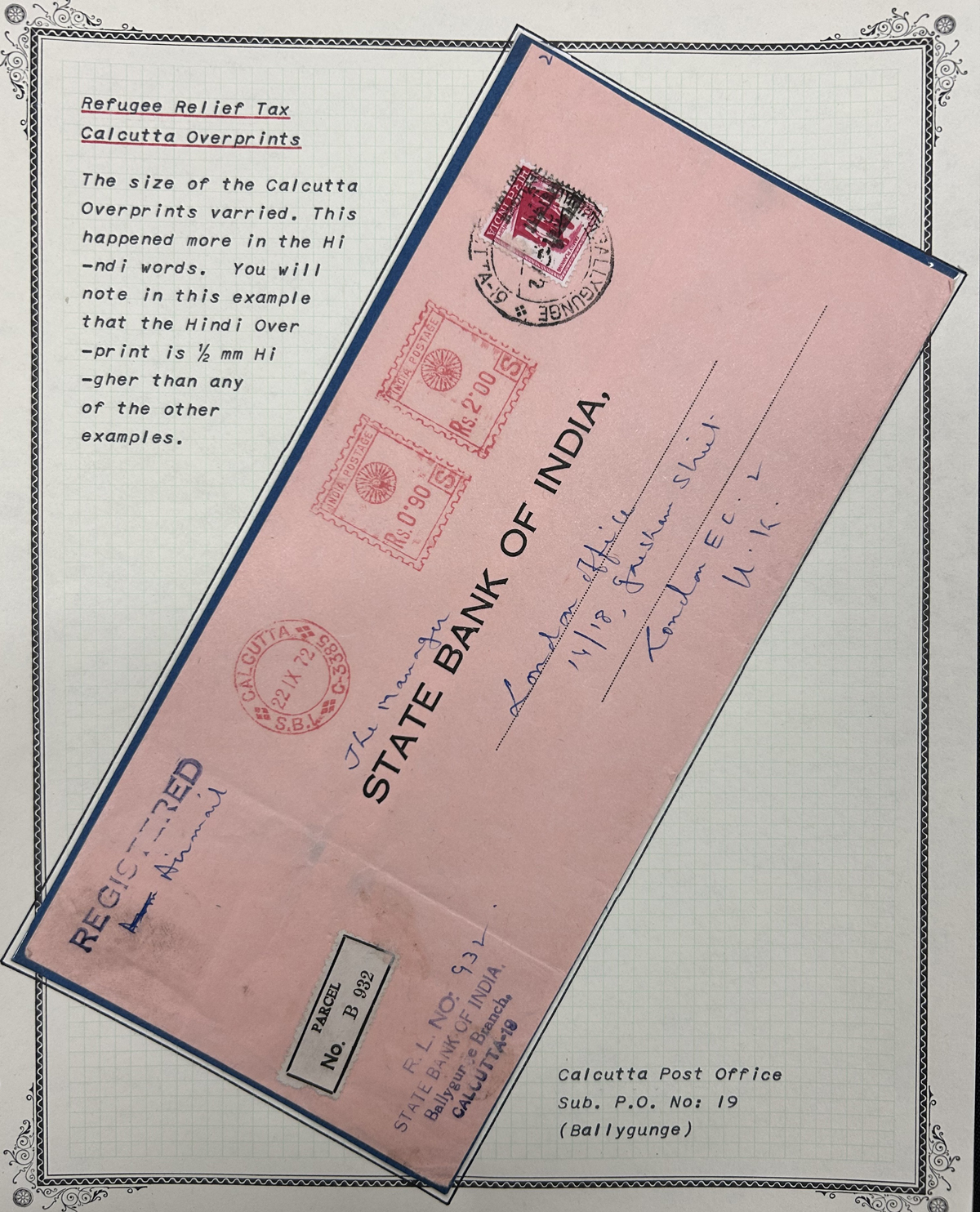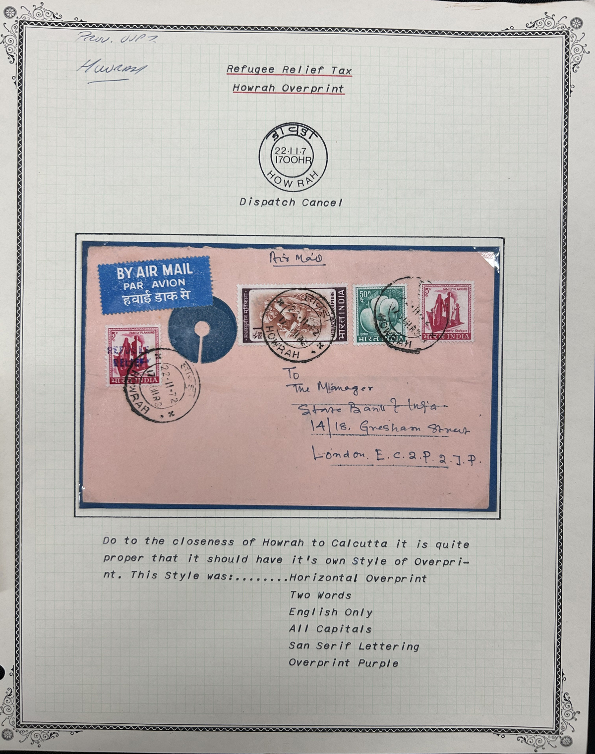 681 CVR   imageAccumulation of India Refugee Relief Fund Covers, 1971-1973, with well over 100 covers, all appear to have been mailed in period and with at least one overprinted or issued stamp. We noted destinations (Canada, United States and England) with the majority of domestic items being sent to New Delhi. There appears to be a good variety of Relief overprints (machines, handstamps and a good potential for varieties). There are also many interesting handstamps such as "RRT Exempted", "Unit Censor", some registered covers, government envelopes, F.P.O. handstamps, interesting frankings / rates and much more. Several of the covers are described on pages, and there is a folder with articles and information on this interesting time period. Some faults here and there, still overall fine to very fine. See our pictures for an overview and sampling. (Scan 1) (Scan 2) (Scan 3) (Scan 4) (Scan 5) (Scan 6) (Scan 7) (Scan 8) (Scan 9) (Scan 10) (Scan 11) (All Scans) (All Images)