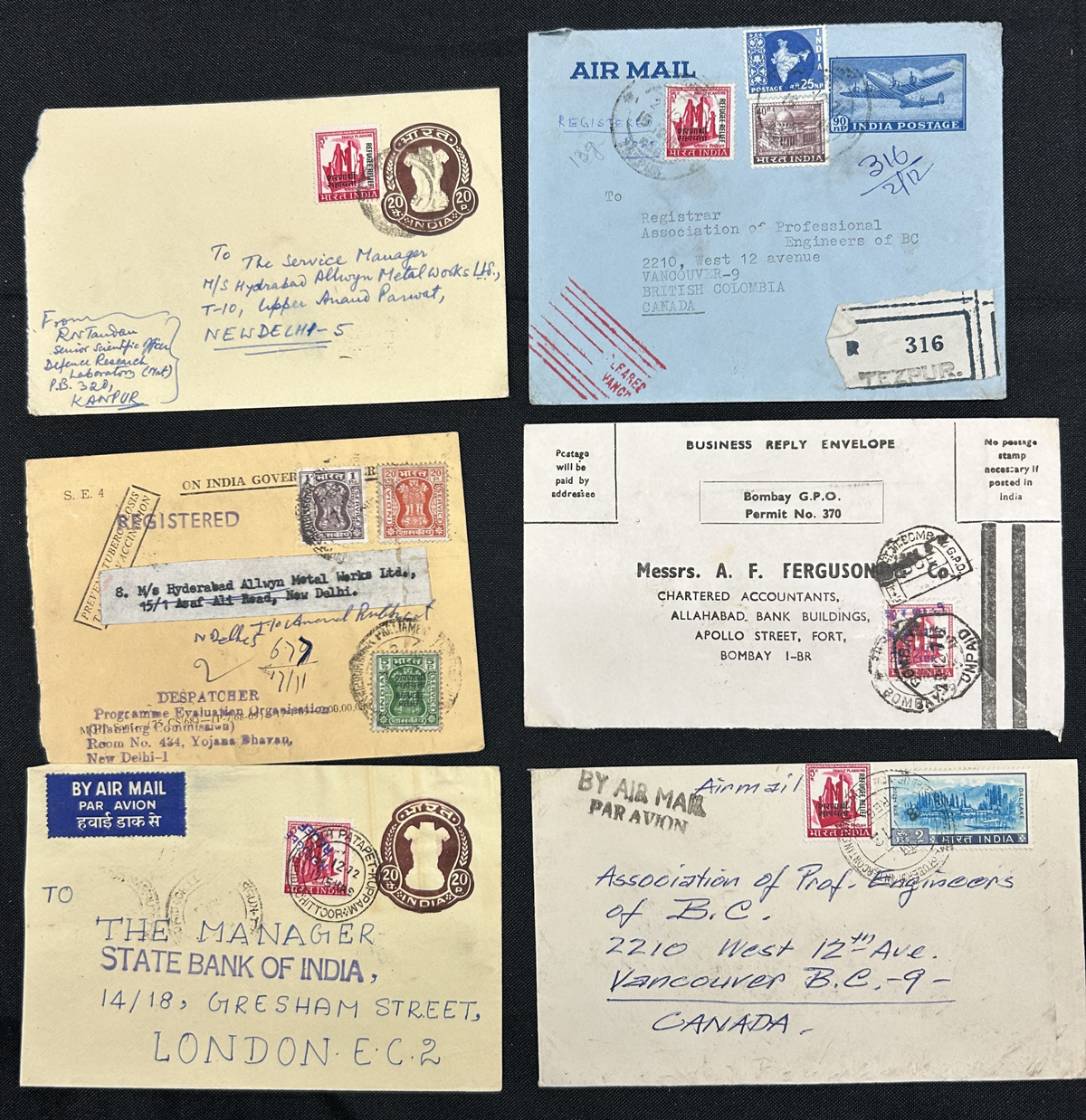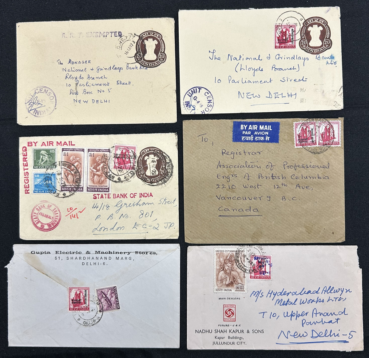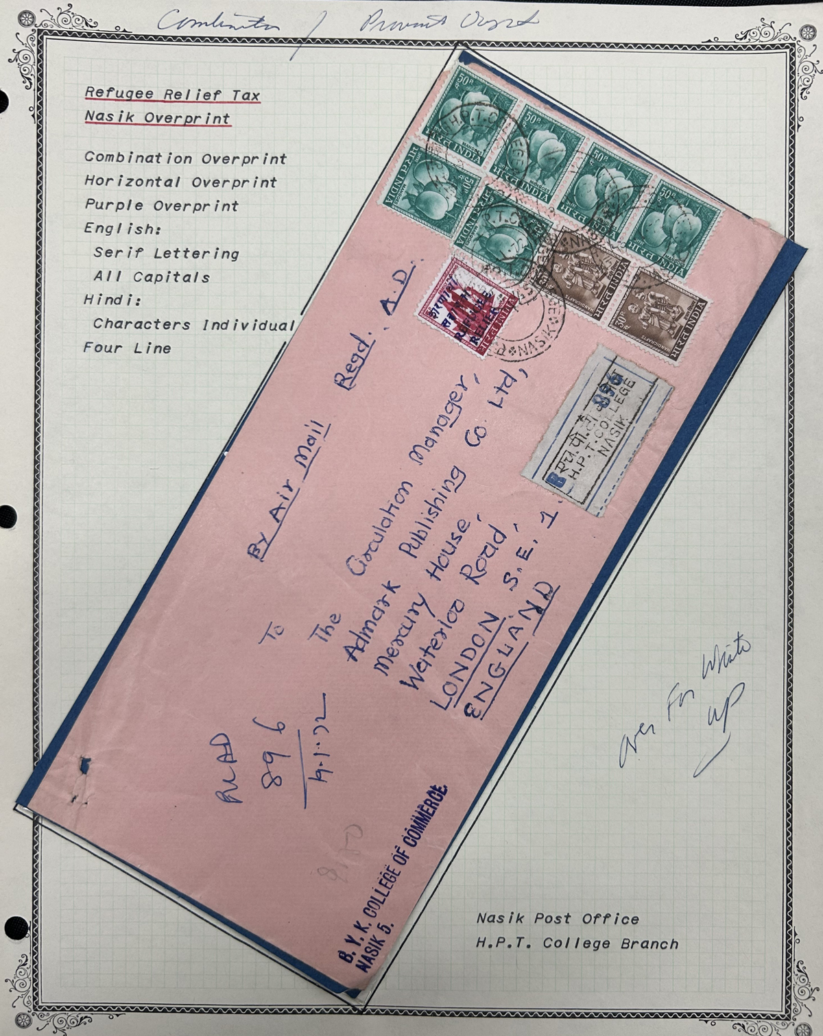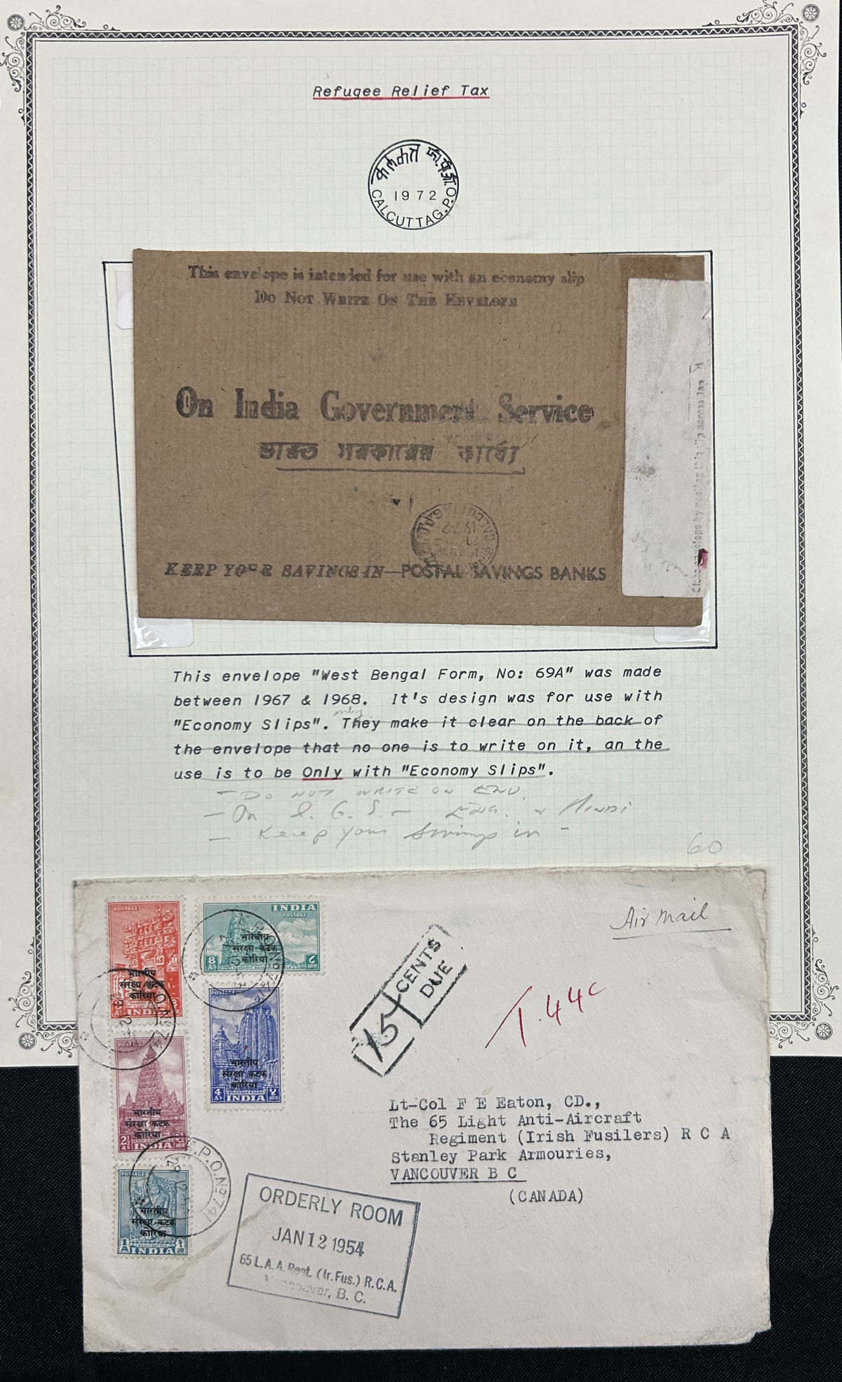 681 CVR   imageAccumulation of India Refugee Relief Fund Covers, 1971-1973, with well over 100 covers, all appear to have been mailed in period and with at least one overprinted or issued stamp. We noted destinations (Canada, United States and England) with the majority of domestic items being sent to New Delhi. There appears to be a good variety of Relief overprints (machines, handstamps and a good potential for varieties). There are also many interesting handstamps such as "RRT Exempted", "Unit Censor", some registered covers, government envelopes, F.P.O. handstamps, interesting frankings / rates and much more. Several of the covers are described on pages, and there is a folder with articles and information on this interesting time period. Some faults here and there, still overall fine to very fine. See our pictures for an overview and sampling. (Scan 1) (Scan 2) (Scan 3) (Scan 4) (Scan 5) (Scan 6) (Scan 7) (Scan 8) (Scan 9) (Scan 10) (Scan 11) (All Scans) (All Images)