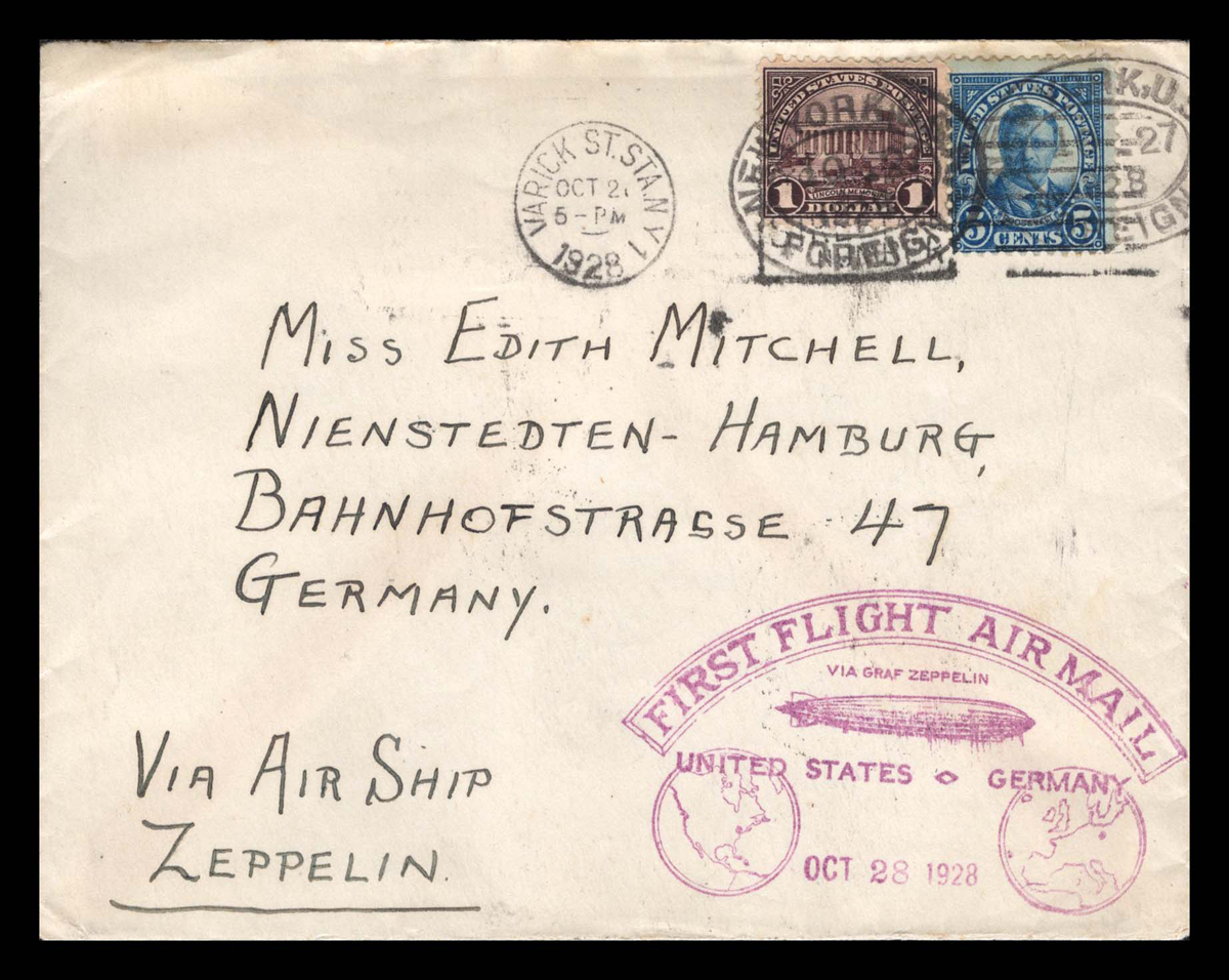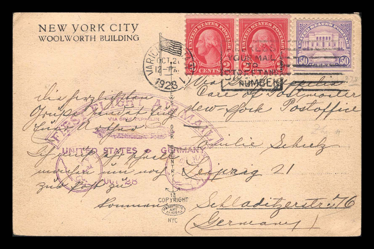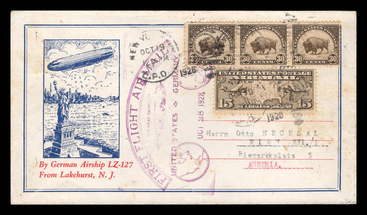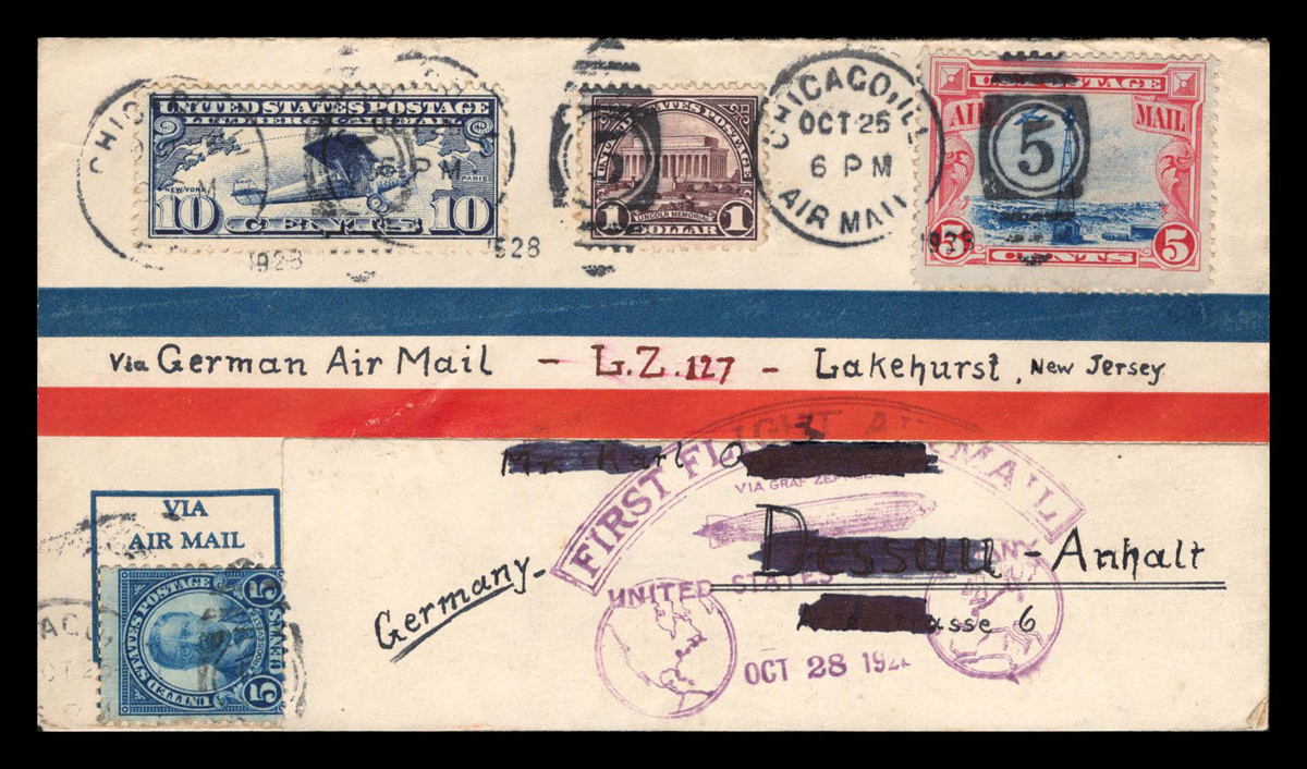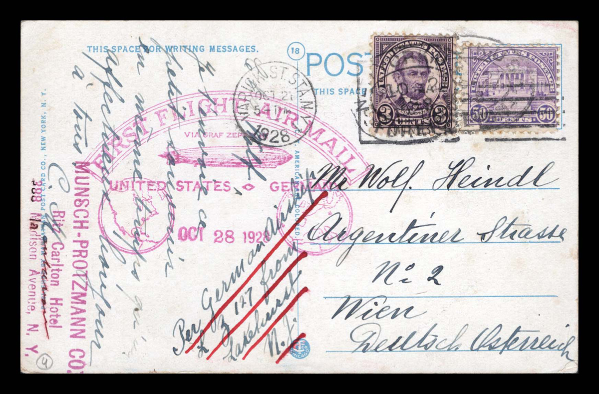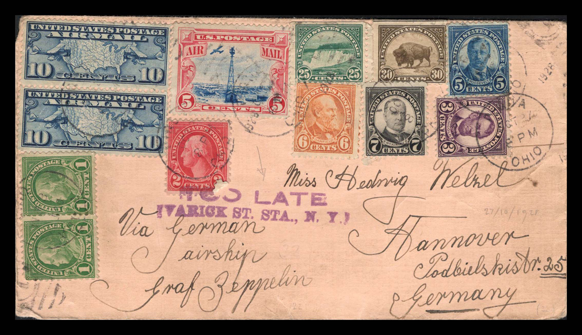 Zeppelin" but mailed from Ohio on the day before departure, and thus received a "TOO LATE / Varick St. Sta. N.Y." handstamp. An overall fine to very fine group. (Scan 1)