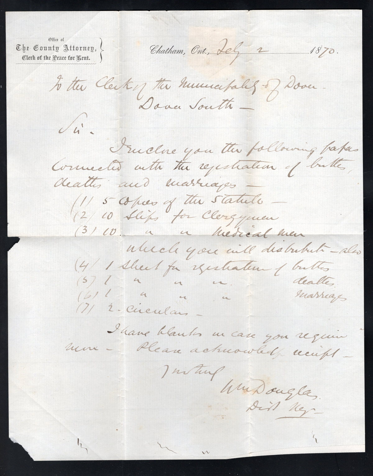 (with part selvedge), tied by a blurry (as usual) Chatham C.W. Berri duplex cancel. The inside is a hand-written letter on letterhead. Fine. (Scan 1)
