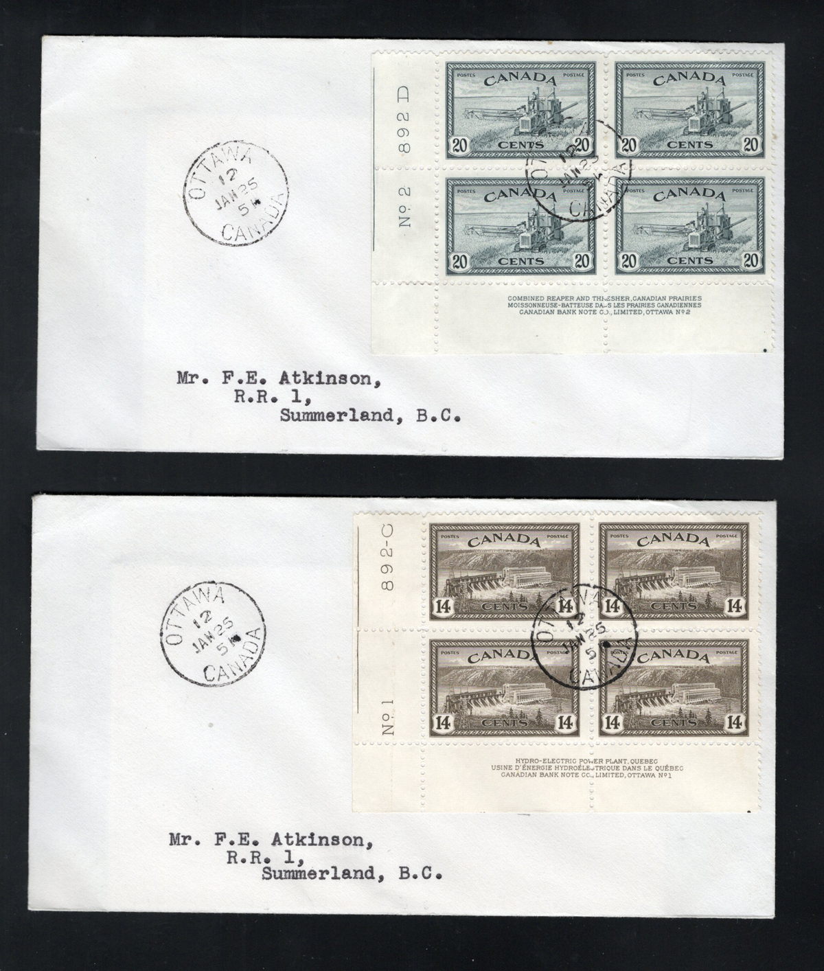 136 CVR 270-273 image1951 (Jan.25) First Day Covers of the Peace issue High Values, the 14c, 20c, 50c and $1 values are each represented by a lower left plate block of four, each mailed on the first day of issue from Ottawa to Summerland, BC. A very fine group. (Scan 1) (Scan 2) (All Scans) (All Images)