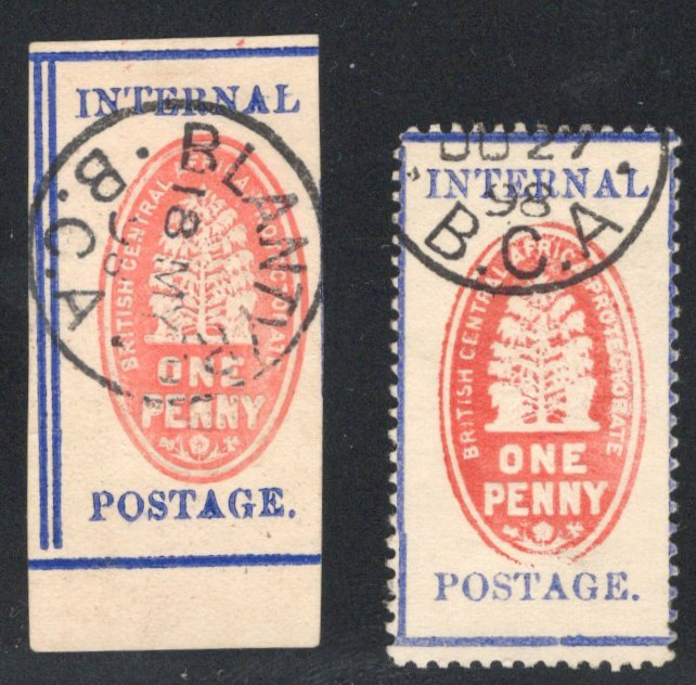 244 O 58b, 59d image1898 Two Different Embossed 1p Issues, both used with B.C.A. postmarks (one from Blantyre), includes Scott #58b (imperforate, Type I, with no control on reverse) and #59d (perforated 12, Type I, with no control on reverse), both are fine.