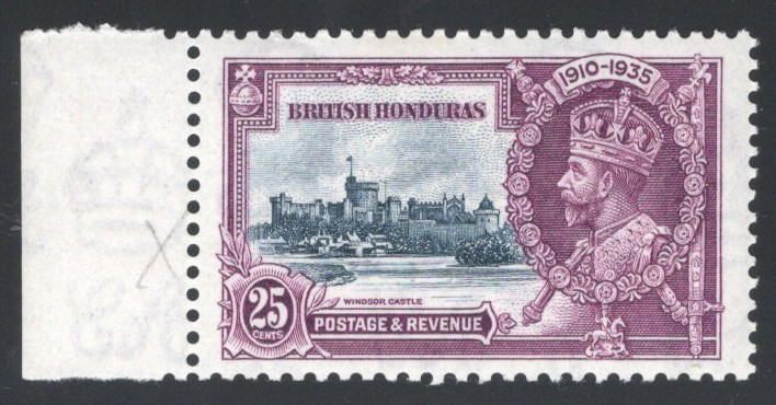 247 og 146a (SG) image1935 25c KGV Silver Jubilee with “Extra Flagstaff" Variety, mint very lightly hinged, with sheet selvedge at left (position 9/1, plate 1 R), very fine.