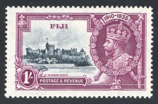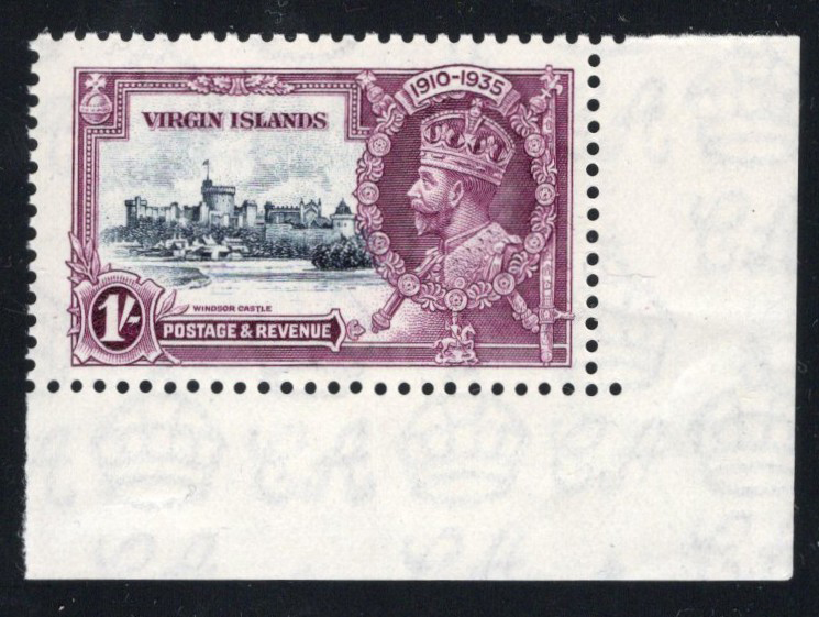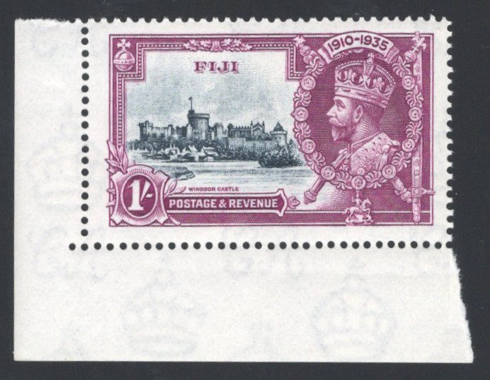 258 nh 245f (SG) image1935 1sh KGV Silver Jubilee with “Diagonal Line by Turret" Variety, mint never hinged, from position 10/1 or 10/2 (plate 2A R), very fine.