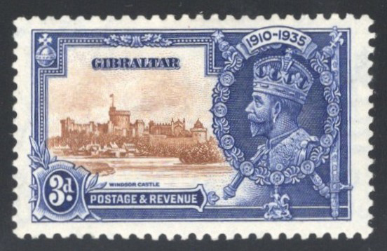 265 og 115a (SG) image1935 3d KGV Silver Jubilee with “Extra Flagstaff" Variety, mint lightly hinged, from position 9/1 (plate 1 R), very fine.