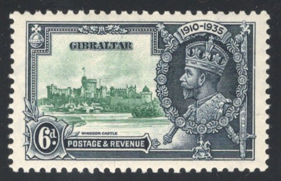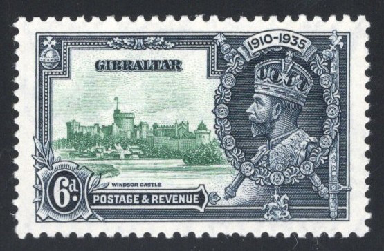 270 nh 116c (SG) image1935 6d KGV Silver Jubilee with “Lightening Conductor" Variety, mint never hinged, from position 2/5 (plate 3 R), very fine.