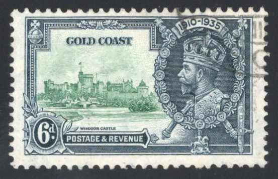 275 O 115a (SG) image1935 6d KGV Silver Jubilee with “Extra Flagstaff" Variety, used with c.d.s. cancel, from position 9/1 (plate 1 R), fine.