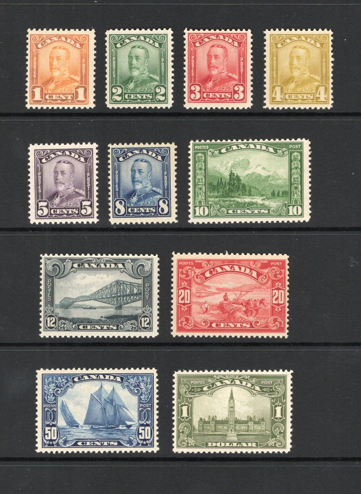 39 nh 149-159 image1929 1c to $1 King George V Scroll Set, mint never hinged, fresh and fine to very fine.