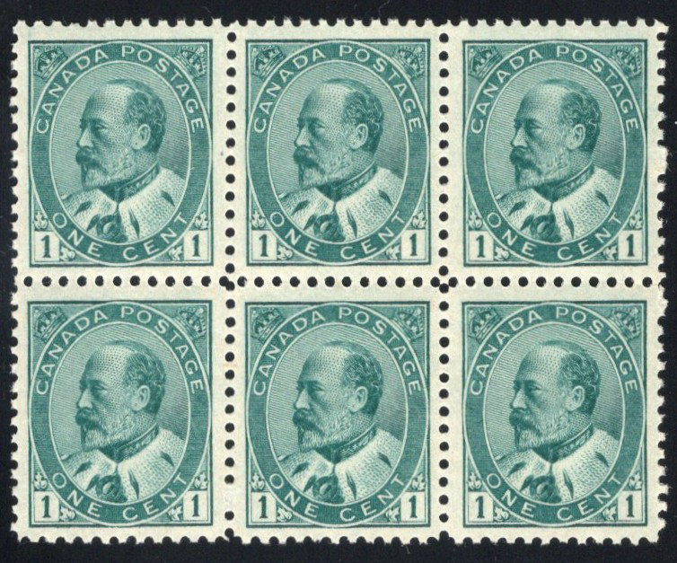 30 og 89 image1903 1c Green King Edward VII, a mint never hinged block of six, quite fresh and very fine.