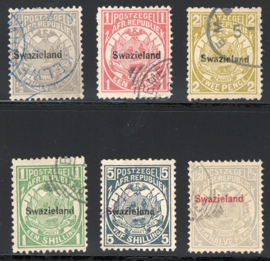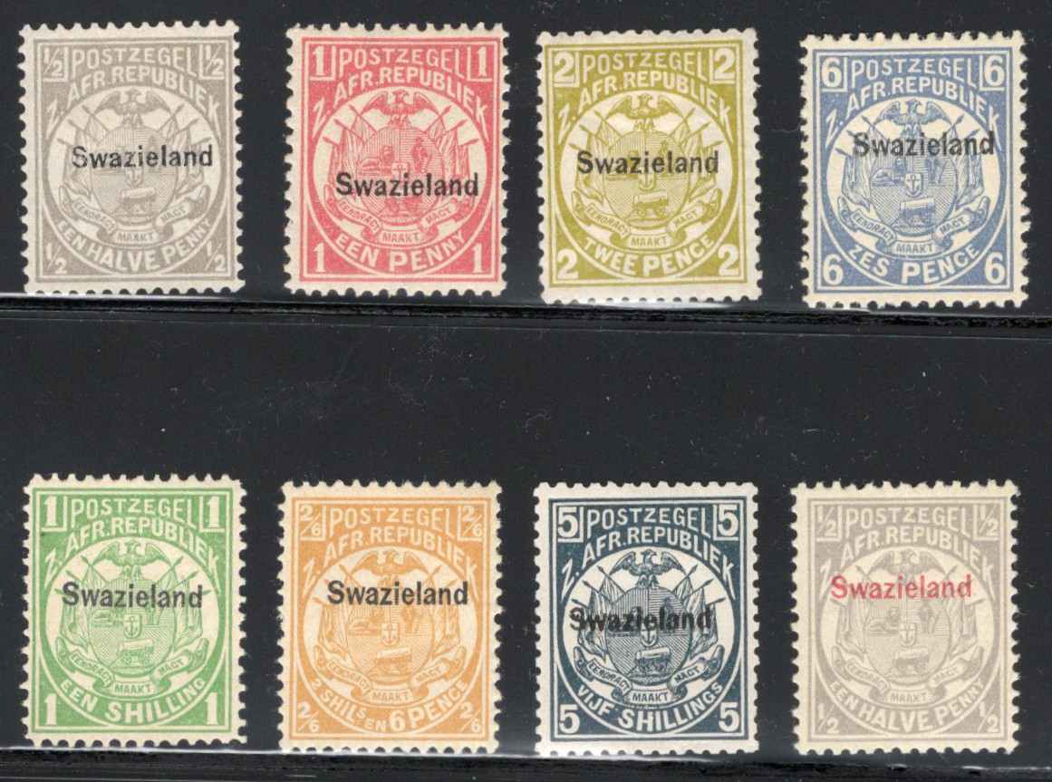 444 og 1-7, 9 image1882-92 ½d to 5sh Swaziland Overprint Short Set, mint lightly hinged and includes the 1892 ½d issue, overall fine.