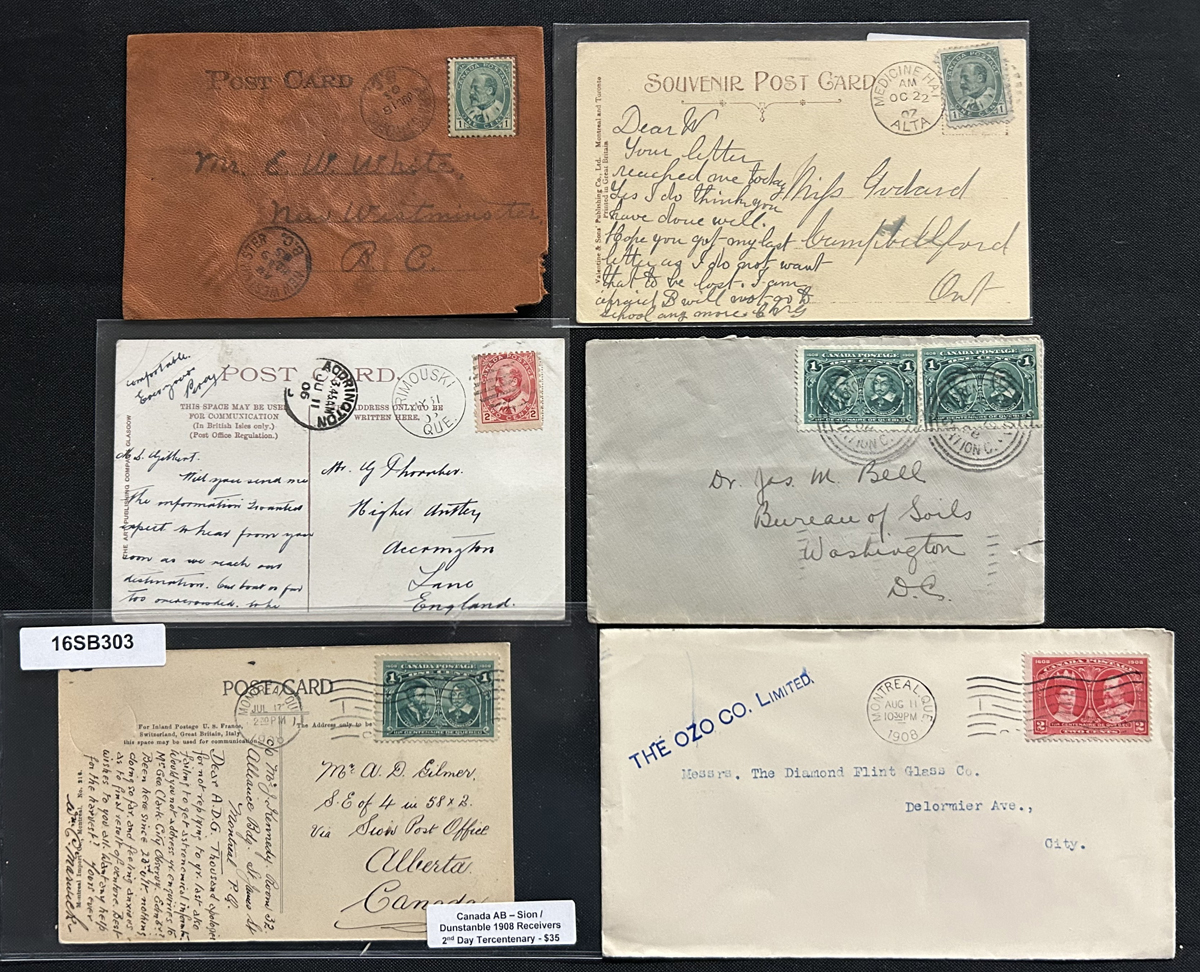454 CVR/PC 89, 90, 97, 98 imageGroup of Over 100 KEVII and Québec Tercentenary Covers and Cards, 1902-1911, mostly 1c and 2c values, a good variety of postmarks (small towns, RPO, etc.), picture postcards, registered covers, 1c Québec issue drop covers, etc. A few have faults, else overall fine or better. Our photos show some examples. (Scan 1) (Scan 2) (Scan 3) (All Scans) (All Images)