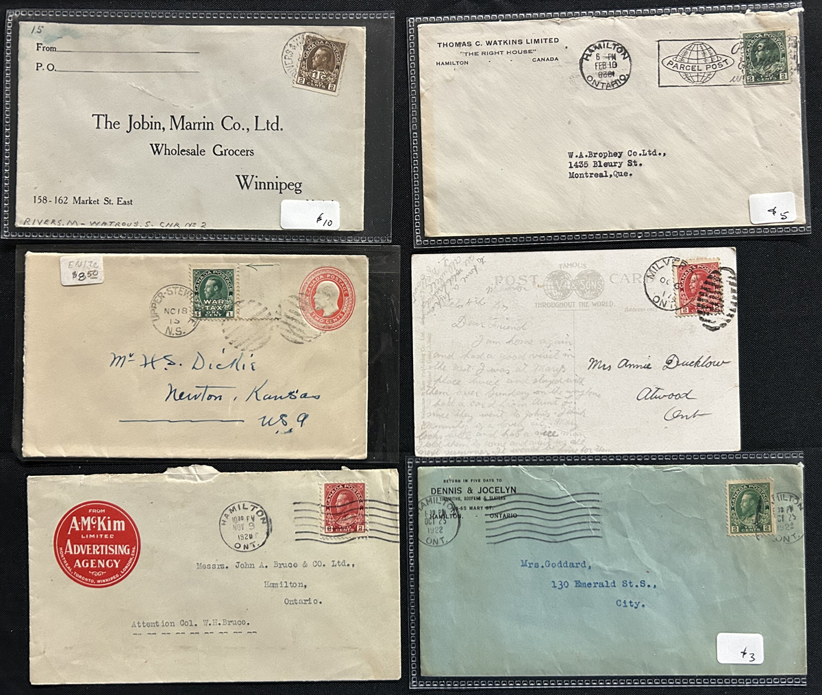 456 CVR/PC 104-109 imageGroup of About 250 KGV Admiral Covers and Cards, mostly 1c to 3c frankings and rates, with a good variety of postmarks, including duplex, slogans, small towns, etc. Several have faults, still there are many fine to very fine. See pictures for a small sampling. (Scan 1) (Scan 2) (Scan 3) (All Scans) (All Images)