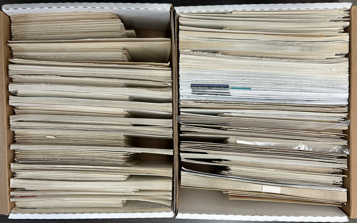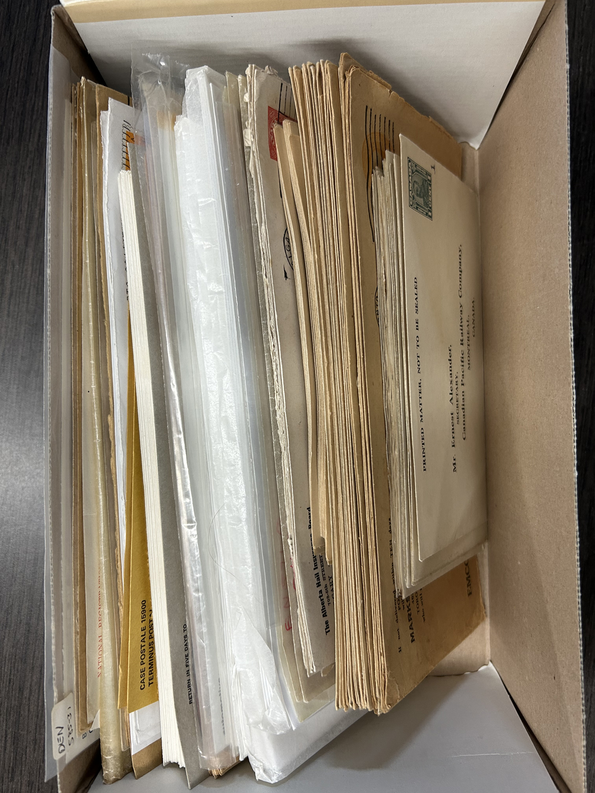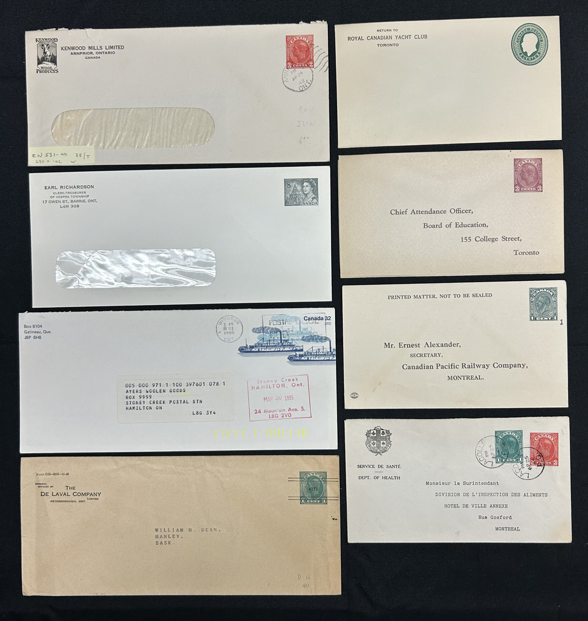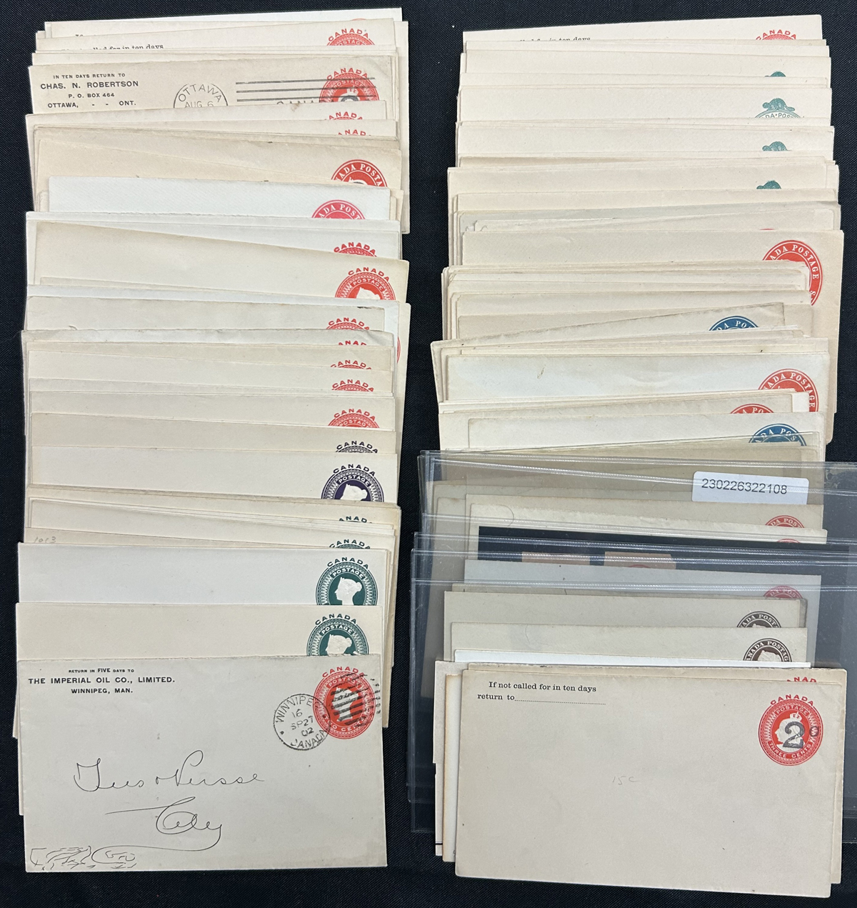 463 CVR   imagePrinted to Private order and Official Envelopes in a Shoebox, with a mix of mint and used, the PTPO envelopes are mostly KGV and KGVI, including some precancels plus a touch of Centennial. The OHMS envelopes include a QV “Lighthouse” envelope, 10 Meteorological envelopes, Dominion Statistician (mint and used) and a 32c Transportation “Test Mailer”. Bit of mixed condition, and some light to moderate duplication. (Scan 1) (Scan 2) (Scan 3) (All Scans) (All Images)