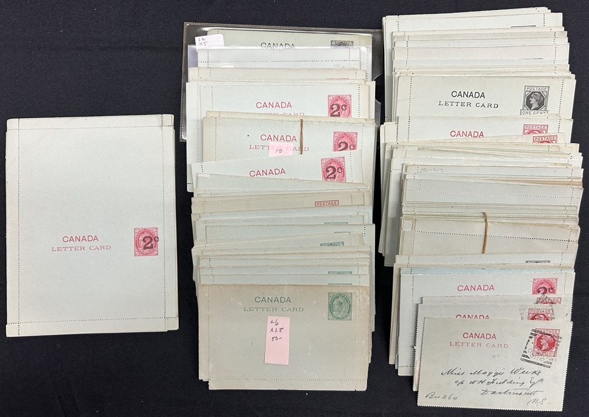 461 PC   imageHolding of 175 Mostly Mint Letter Cards, noting various heading types, perforations, papers, some “bank” printings, a few squared circle postmarks and some revalued. A few are unfolded. In usual mixed condition for this underrated Victorian era stationery. (Scan 1) (Scan 2) (All Scans) (All Images)