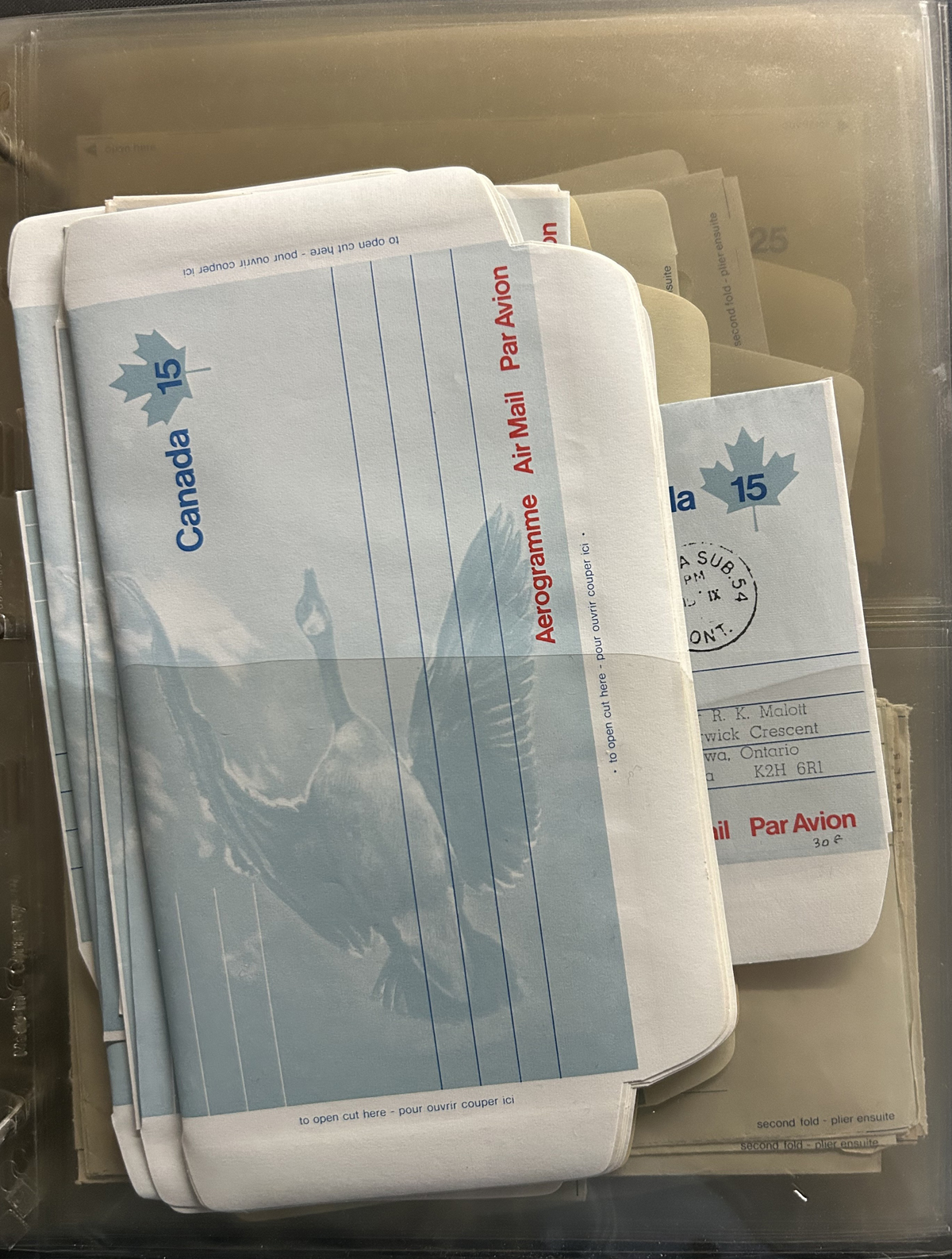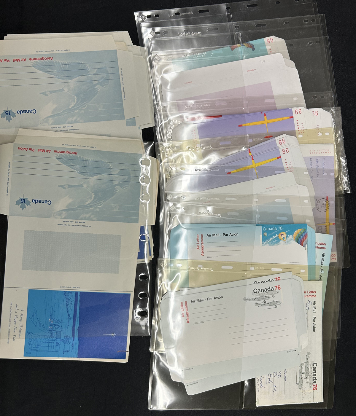 475 A30/A86 imageSubstantial Aerogramme Holding – Part 2, “Centennial” to the “Birds” Issues, mostly mint but with some used (all to proper overseas destinations), generally up to a dozen of a type, including knife and watermark variants, noting 2 copies of #A31 (“no dotted line” Webb U$350 each), a small group of the private “Save the Children” printing on the 15c Goose, 15x “White Gum” on the 86c. Packed into a large Uni-Safe binder (with lots more that won’t fit inside) with matching slip cover. Photos only show a small sampling. (Scan 1) (Scan 2) (Scan 3) (Scan 4) (Scan 5) (Scan 6) (All Scans) (All Images)