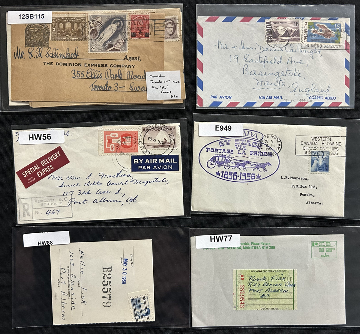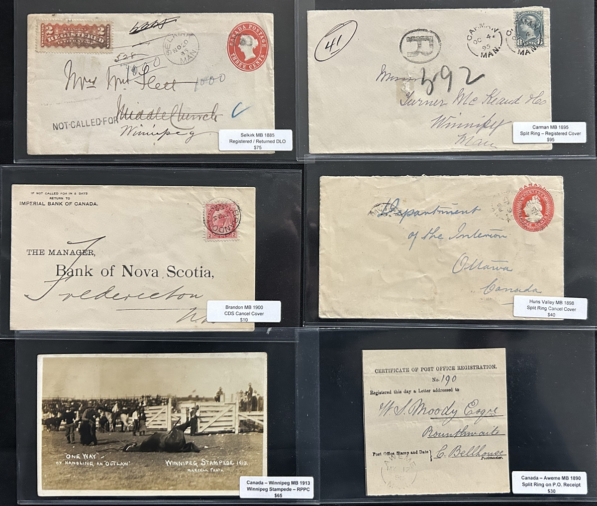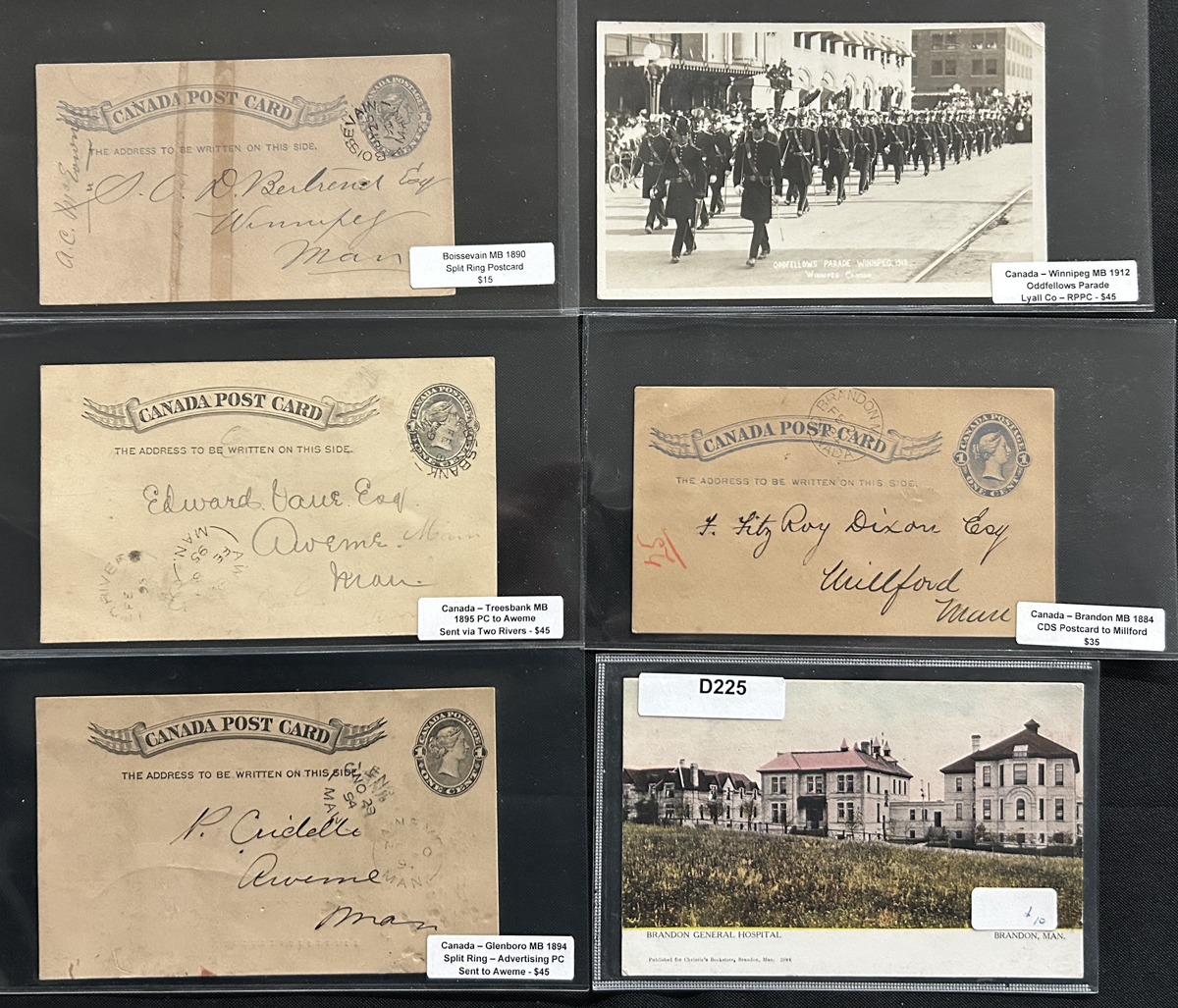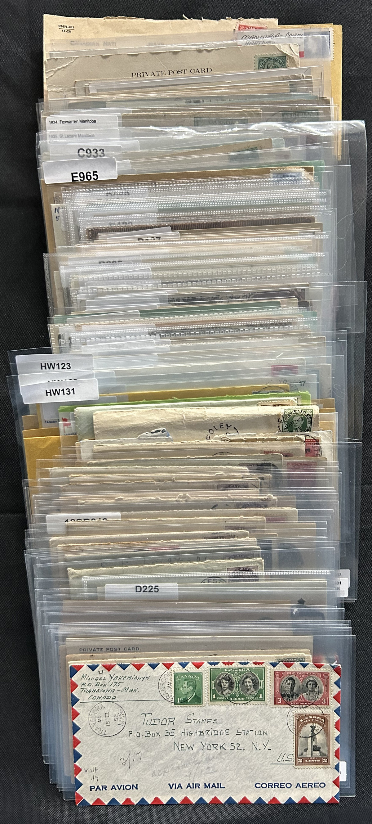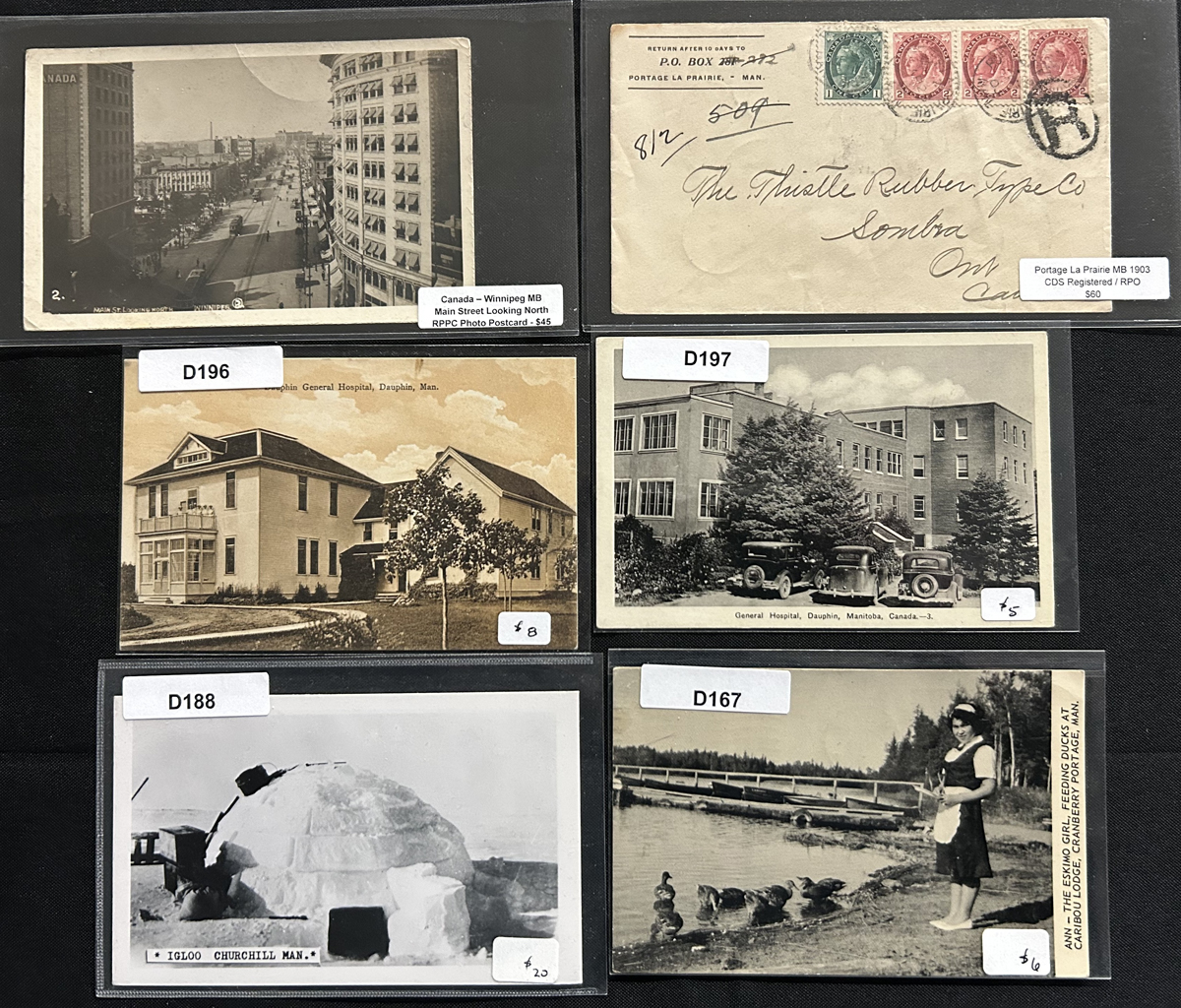513 CVR/PC   imageGroup of 185 Manitoba Covers and Cards, QV to 1980, with a good variety of picture postcards, covers, lots of small town postmarks and much more. Some have faults, still an overall nice quality group, with many sleeved and priced items. See a sampling and overview in our photos. (Scan 1) (Scan 2) (Scan 3) (Scan 4) (Scan 5) (All Scans) (All Images)