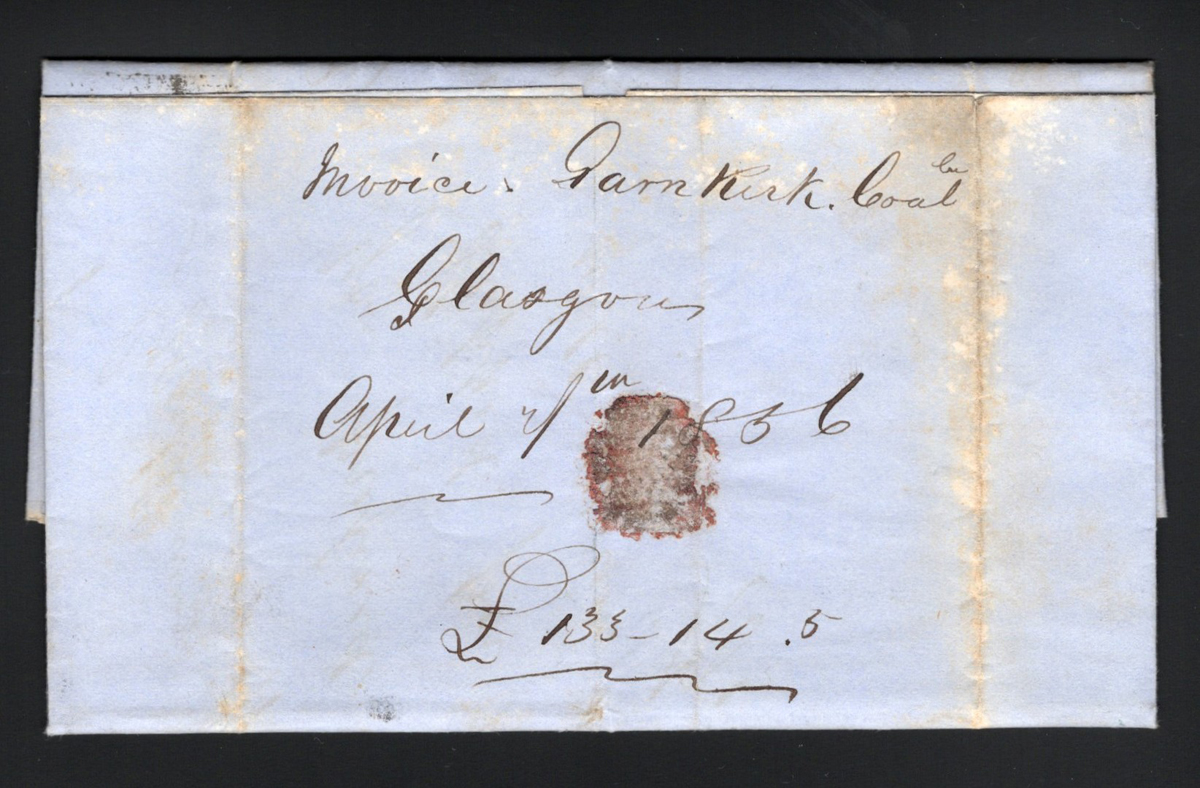 538 CVR 4, 22 imageGlasgow Experimental Duplex Cancellation on Folded Letter Mailed to Canada, mailed Glasgow on APR.15.1856 (with three strikes of the so-called Madelaine Smith cancel) to Toronto, Upper Canada (faint receiver on back) through Liverpool (APR.16 transit in green on back), endorsed "Per U.S. Packet". The folded letter is franked with a pair plus single of Scott #22 ($900 on cover) plus a Scott #4 ($400 on cover) paying a 13d rate. The inside is a two-page invoice from the Toronto Gas Consumer's Company (Glasgow office). Vertical creases, one through 2d blue and one just in-between two of the 4d rose stamps, else very fine and scarce. (Scan 1) (Scan 2) (Scan 3) (Scan 4) (All Scans) (All Images)