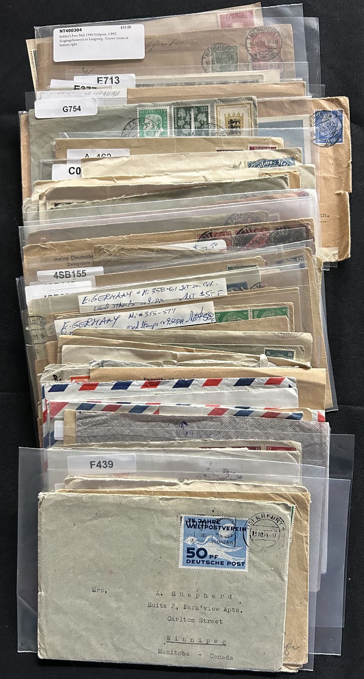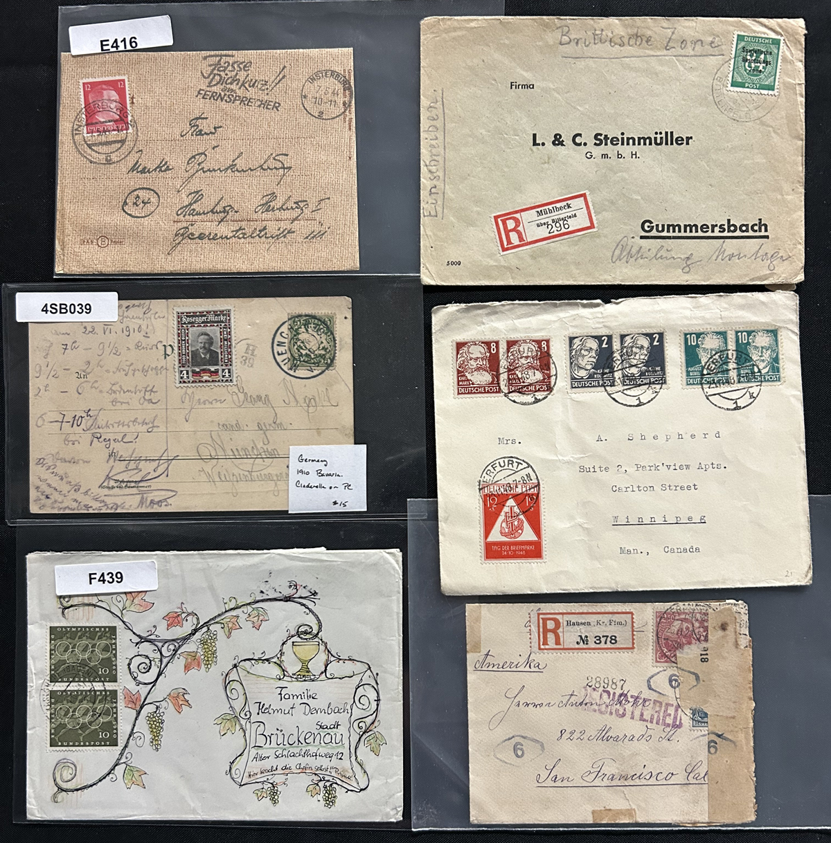 527 CVR   imageGroup of About 100 Germany Covers, 1930s to 1950s, with a good variety of material including frankings, rates, first days and more, from both East and West Germany. Some have faults, else an overall fine group. (Scan 1) (Scan 2) (Scan 3) (Scan 4) (All Scans) (All Images)