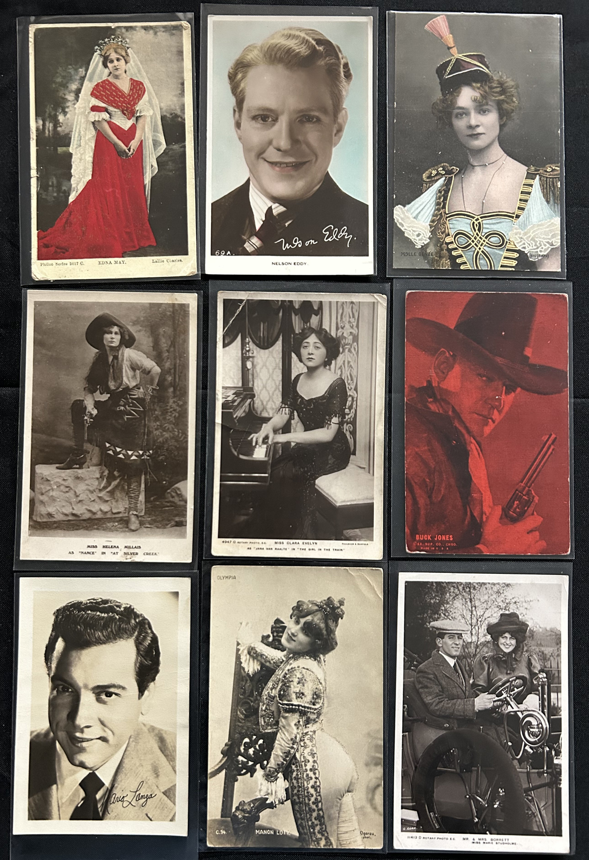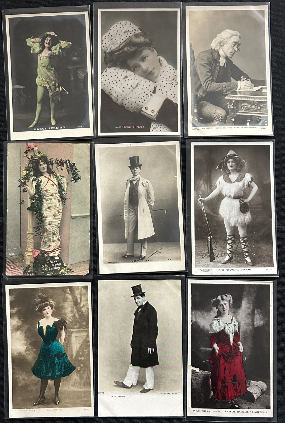 593 PC   imageGroup of Over 200 Early Picture Postcards on Actors and Actresses, mostly from the British theatre, also saw some silver screen, some French, etc. Condition is very nice throughout, with most items individually sleeved. Only a very little duplication of a few cards, and perhaps one quarter were mailed in the 1903-1911 period. (Scan 1) (Scan 2) (All Scans) (All Images)