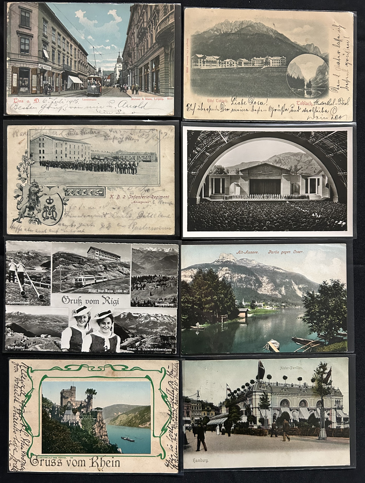 595 PC   imageGroup of About 700 Early Picture Postcards from Germany, and some from Austria, with a good variety of town scenes, lakes and waterfronts, buildings, and much more. We estimate that about half of the cards were mailed in the 1930s to 1950s period, and the unmailed cards appear to be from the early 1900s to about the 1960s. Quality is overall very nice (with the odd fault, here and there) and each card is individually sleeved. (Scan 1) (Scan 2) (Scan 3) (Scan 4) (All Scans) (All Images)