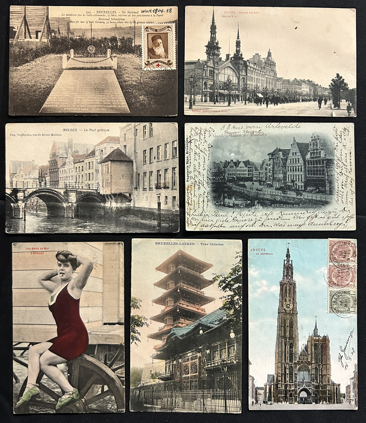 596 PC   imageGroup of About 700 Early Picture Postcards from Belgium, with a good variety of town scenes, buildings, and much more. We estimate that about half of the cards were mailed from the early 1900s to about the 1960s. Includes about a dozen unused postcard packs and we note many interesting frankings, as well as several cards mailed to Canada. Quality is overall very nice (with the odd fault, here and there). (Scan 1) (Scan 2) (Scan 3) (Scan 4) (All Scans) (All Images)