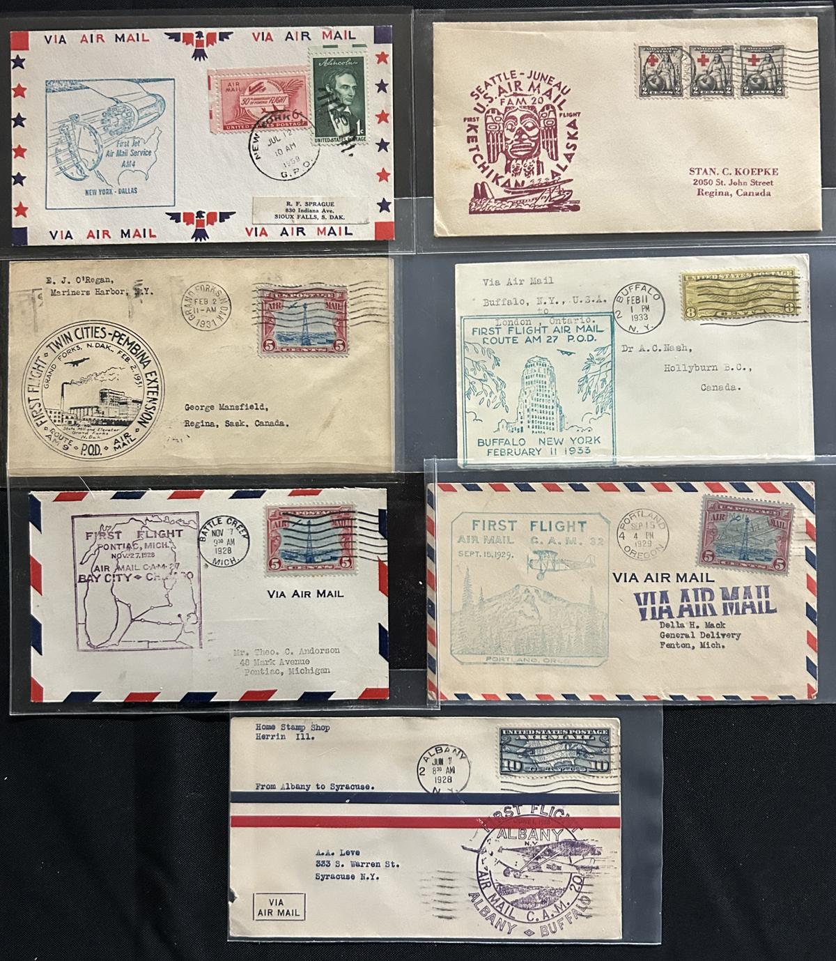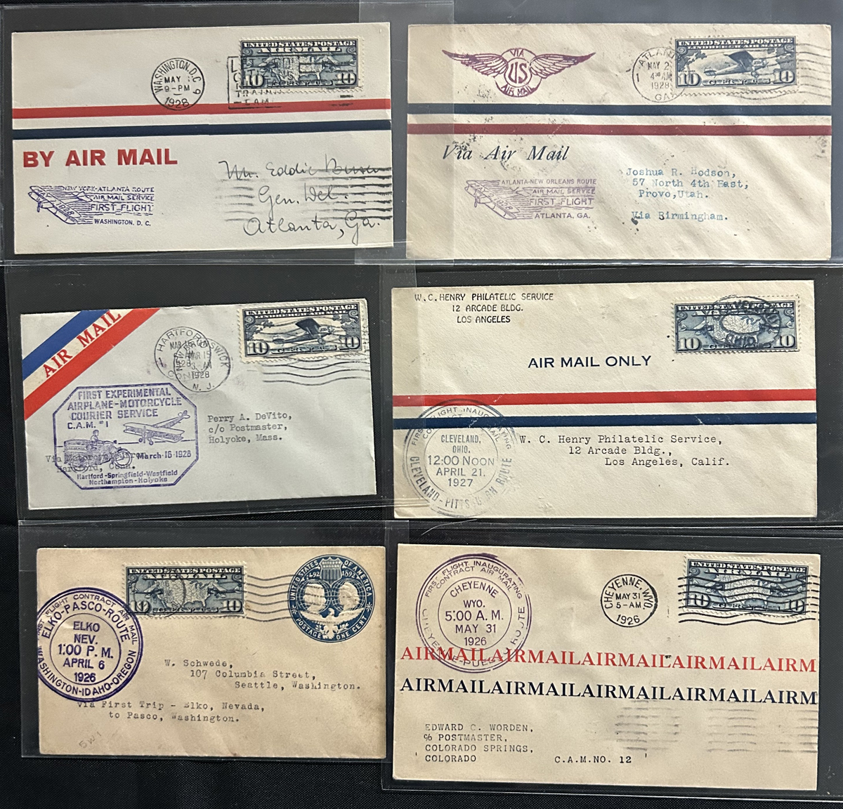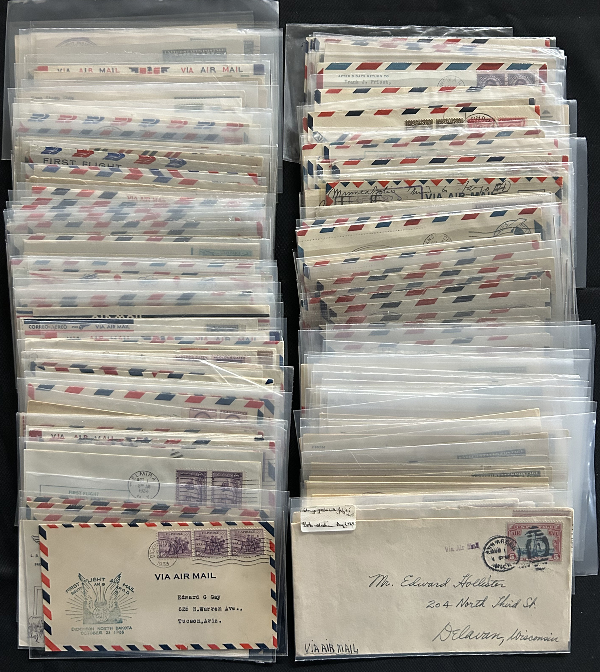 584 CVR   imageGroup of Over 150 United Stated Airmail Covers, 1920s to 1980s, we noted regular airmail, first flights (mostly), commemorative flight covers, etc. All appear to be different, and in very fine condition. Our photos show a small sample and an overview. (Scan 1) (Scan 2) (Scan 3) (All Scans) (All Images)