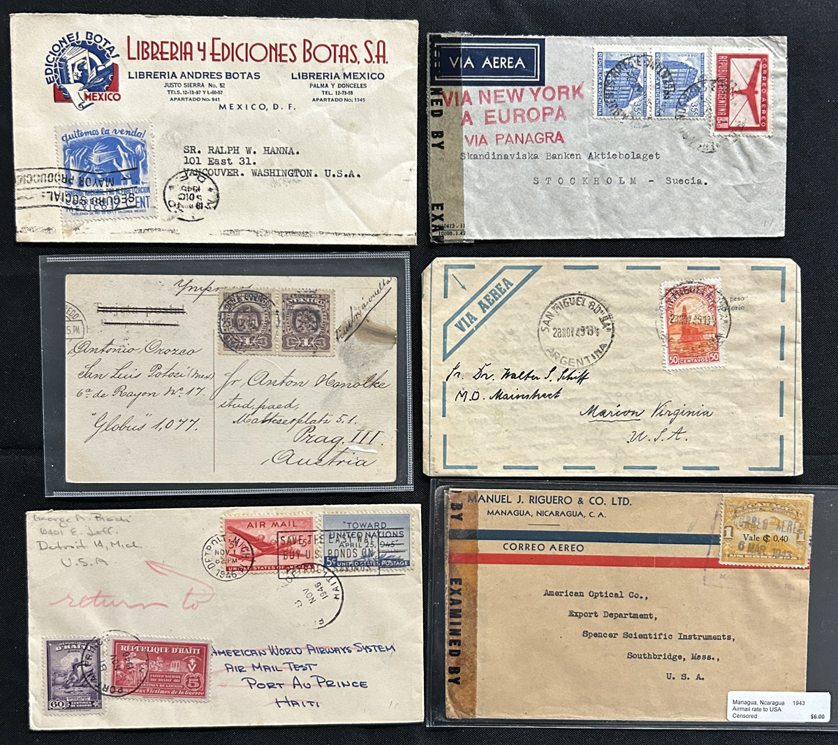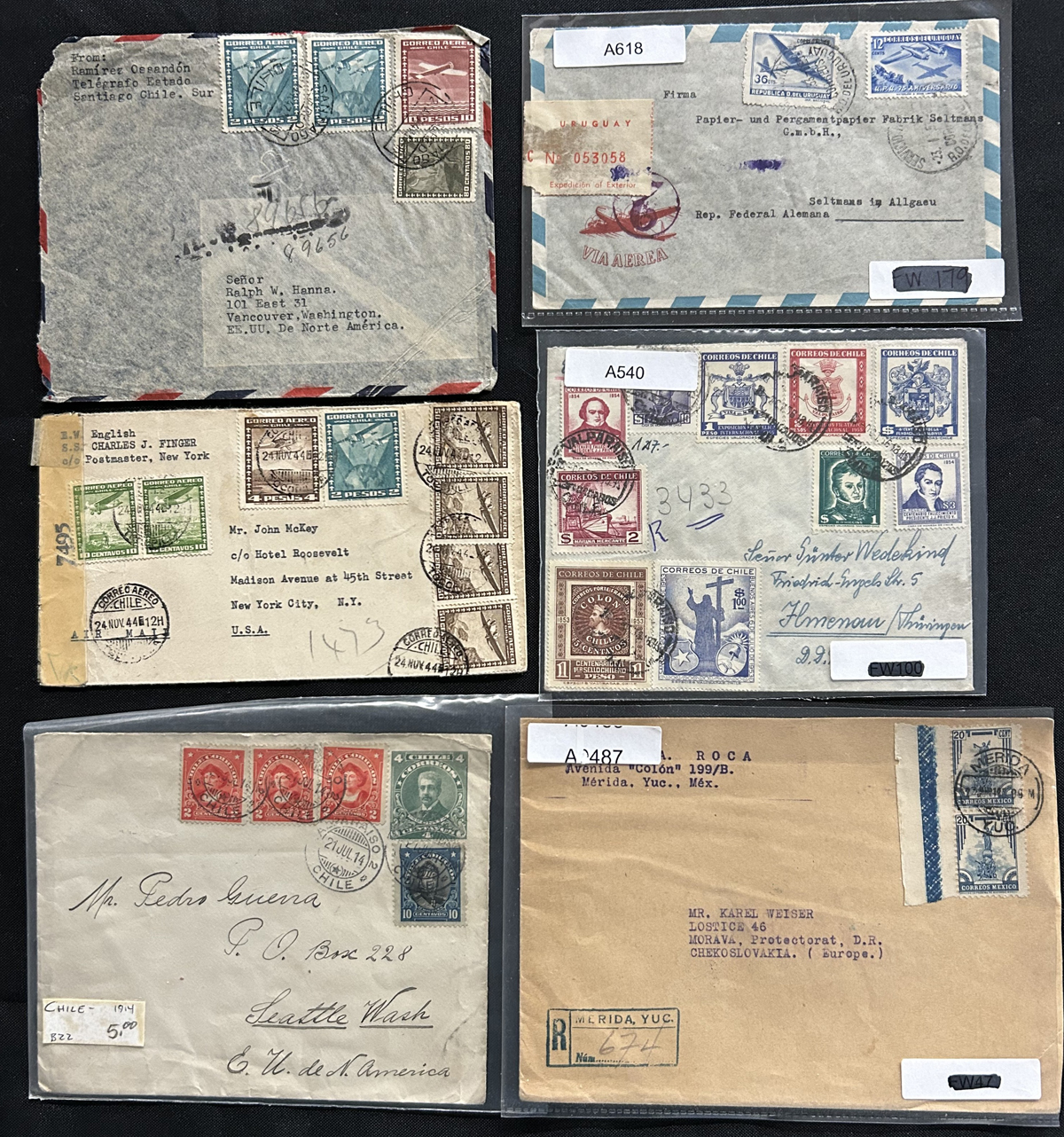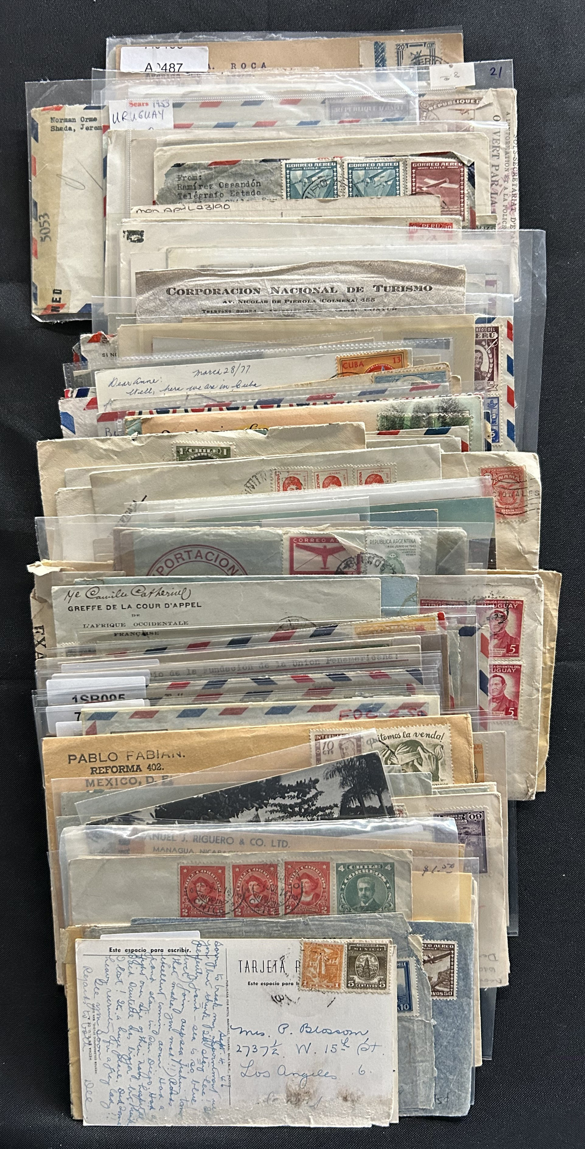 581 CVR/PC   imageGroup of 185 Central and South America Covers and Cards, mostly pre-1960s, with a good variety of material including airmail covers, censored, frankings, destinations, postmarks and much more. See our photos for a small sampling. Overall fine or better with the usual faults here and there. (Scan 1) (Scan 2) (Scan 3) (Scan 4) (Scan 5) (Scan 6) (All Scans) (All Images)