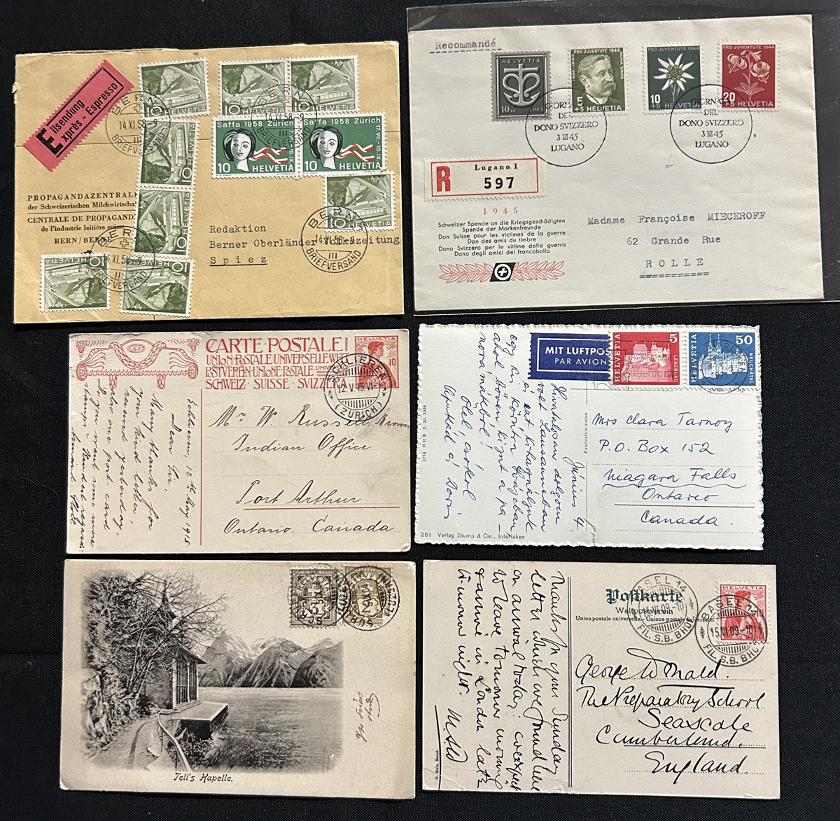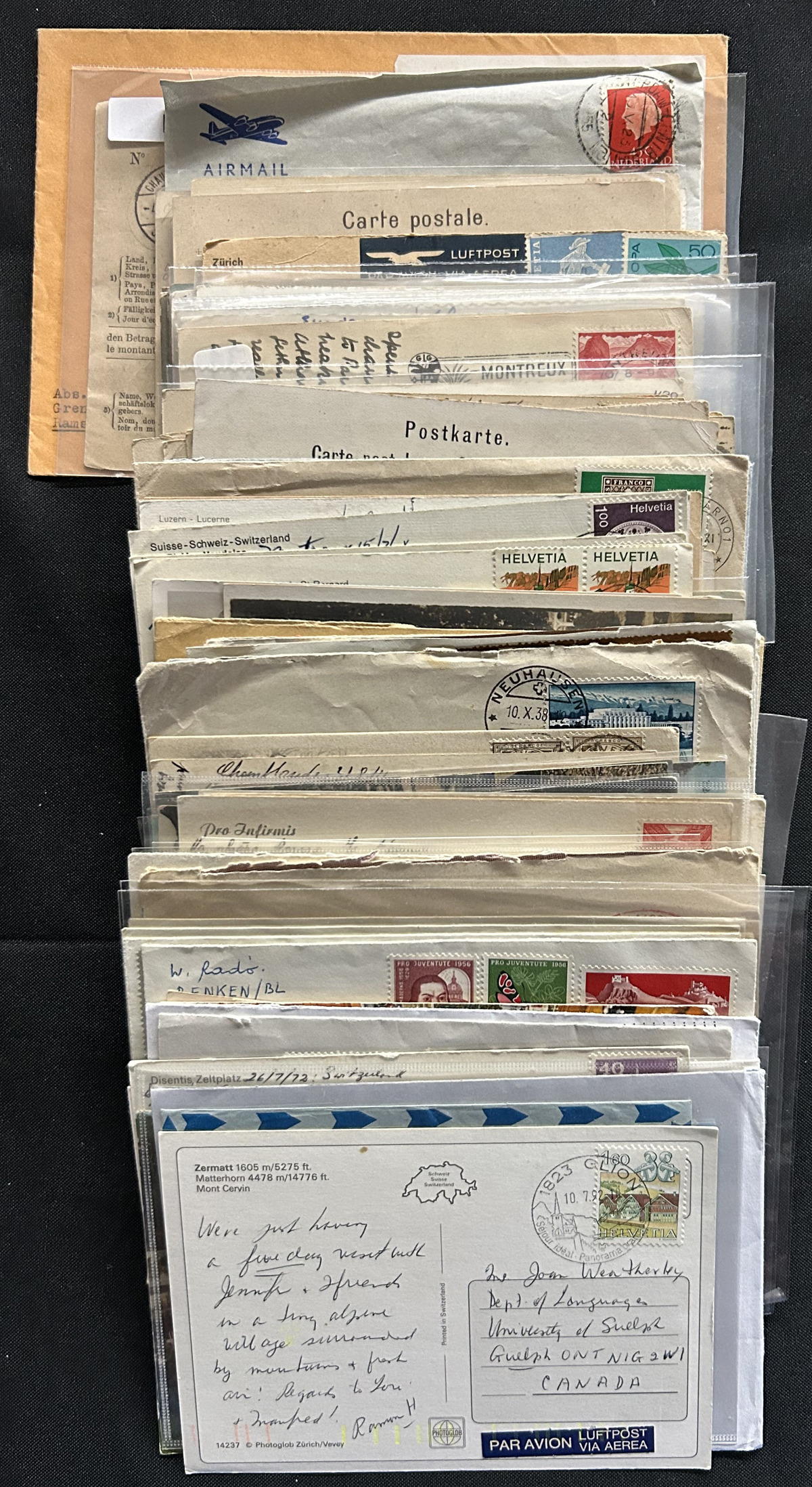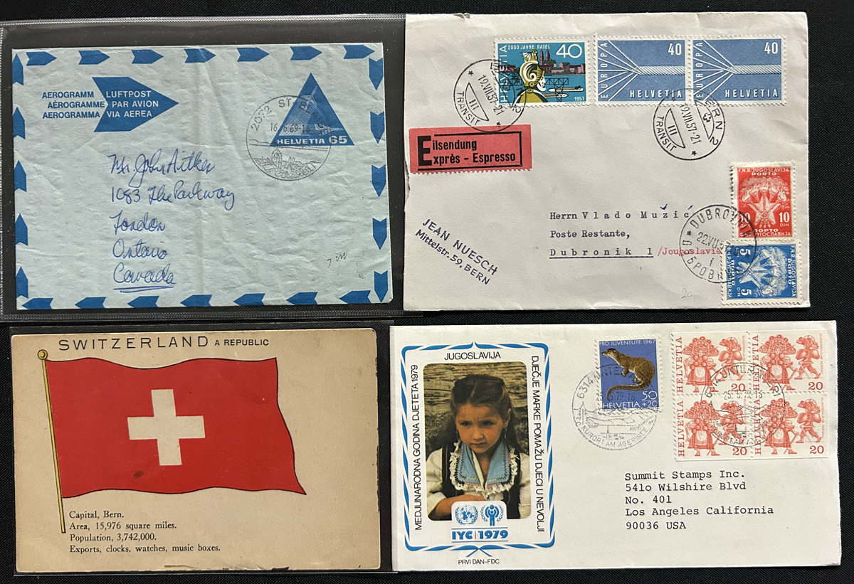 582 CVR/PC   imageGroup of About 140 Switzerland Covers and Cards, 1900 to 1980s, with a good variety of material, with a good proportion mailed to Canada, USA, England and Germany, with note many frankings, postmarks, unused picture postcards, and much more. A few have faults, still an overall fine to very fine group. (Scan 1) (Scan 2) (Scan 3) (All Scans) (All Images)