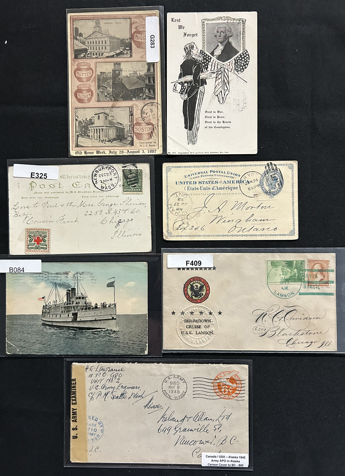 585 CVR/PC   imageGroup of About 270 United States Covers and Cards, quite a varied lot, with Christmas labels, picture postcards, airmail, naval and ship themes, hand drawn cachets, and lots more. Some have faults, else overall fine or better. See pictures for a sampling. (Scan 1) (Scan 2) (Scan 3) (Scan 4) (All Scans) (All Images)