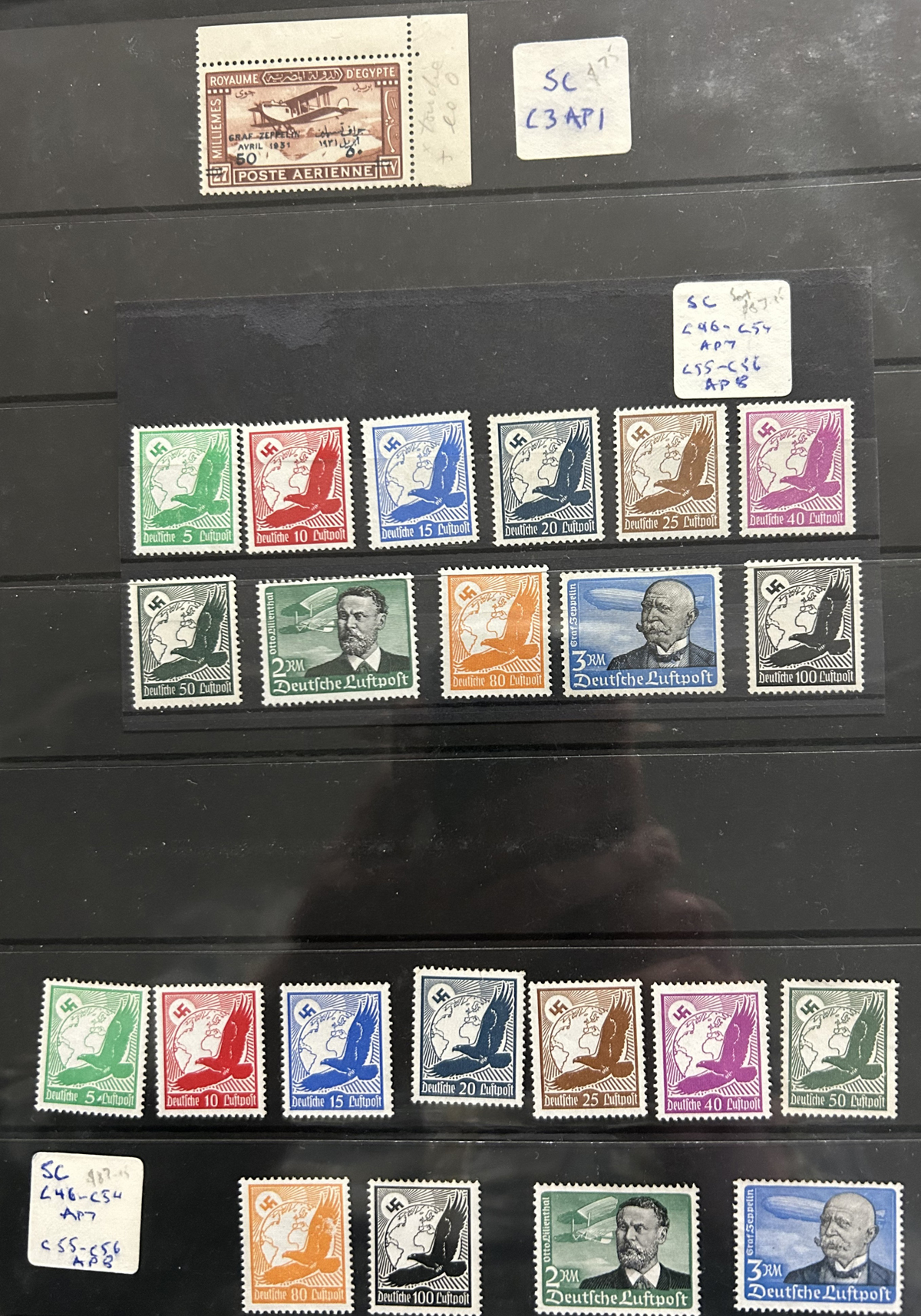 591 O/og/CVR   imageExtensive Thematic Collection on the Subject of Airships, covering Zeppelins, dirigibles, etc., all displayed on 71 pages and stock pages. The collection starts with stamps of the world depicting airships, noting Iceland #C9-11 (mint and used, $330), Germany C35-37 (mint, $92), C46-56 (mint, $88 x two sets), Egypt 168-71 (mint, $77), 172-76 (mint, $90), C3 (mint, $90), Latvia CB21-24 (mint, $170), Italy C42-47 (mint, $130), Tripolitania C21-26 (mint, $58) plus numerous others, plus many cinderellas on the same subject. More than half of the pages display a group of 58 covers and cards which include picture postcards, commercial and commemorative mail, real photos, etc. An overall very fine collection, our pictures show only a small sampling. (Scan 1) (Scan 2) (Scan 3) (Scan 4) (Scan 5) (Scan 6) (Scan 7) (Scan 8) (Scan 9) (Scan 10) (Scan 11) (Scan 12) (Scan 13) (Scan 14) (Scan 15) (Scan 16) (All Scans) (All Images)