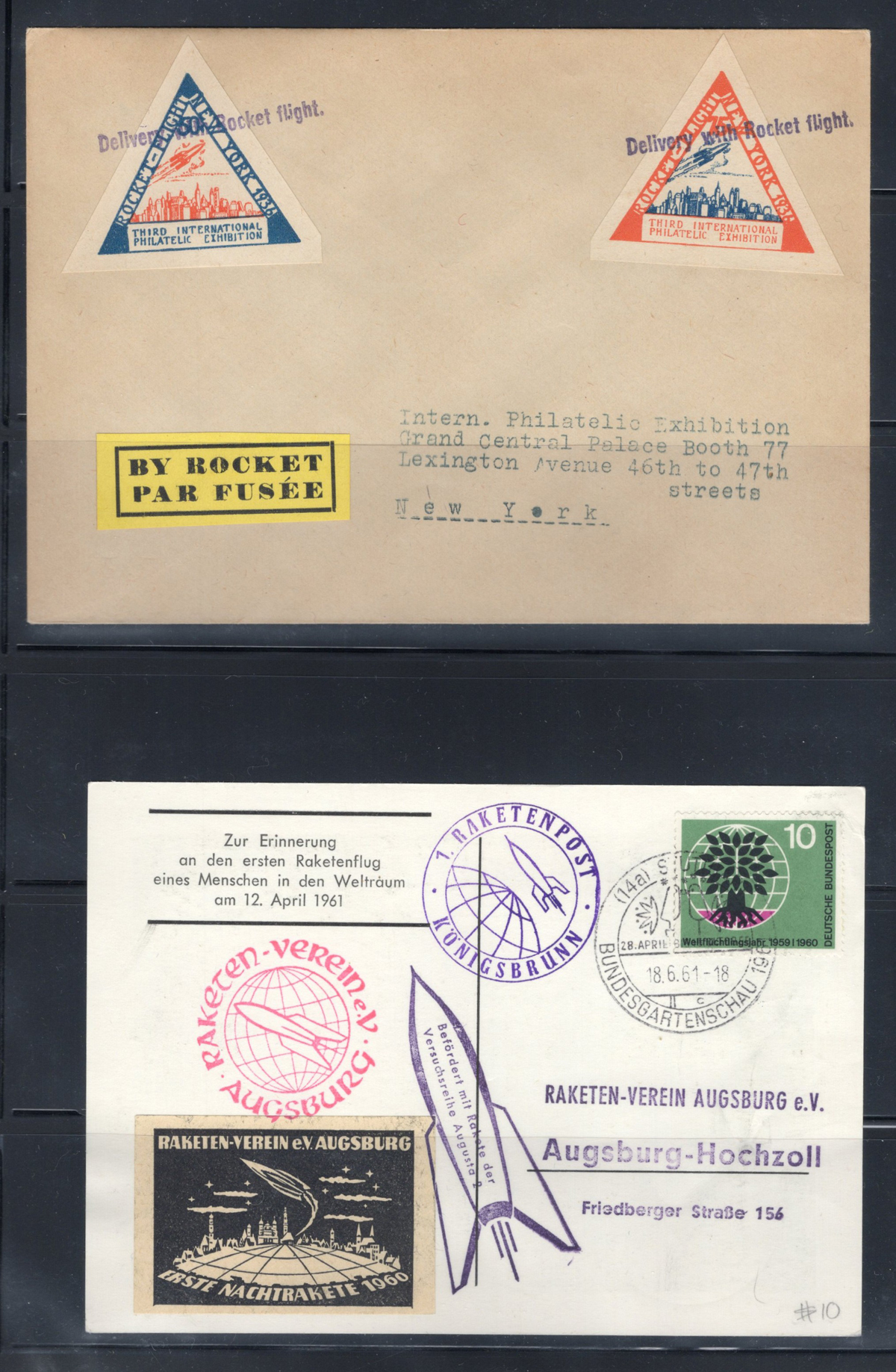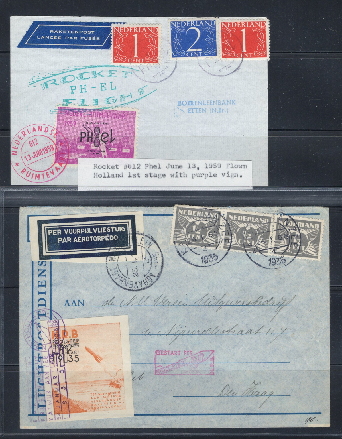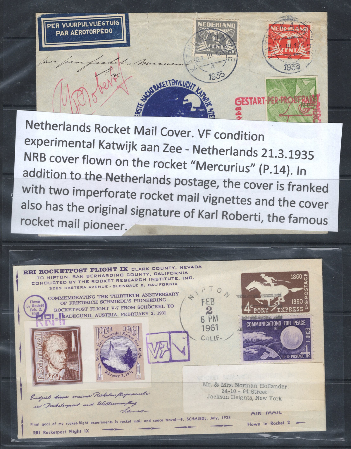 592 CVR   imageCollection of Rocket and Ship to Shore Mail, with 29 covers, including from Canada, United States, Germany, Netherlands, Austria, etc. as well as two panes of 8 stamps each of Netherlands rocket mail labels. Overall very fine and a useful grouping of this popular collecting area. All covers scanned online. (Scan 1) (Scan 2) (Scan 3) (Scan 4) (Scan 5) (Scan 6) (Scan 7) (Scan 8) (Scan 9) (Scan 10) (Scan 11) (Scan 12) (Scan 13) (Scan 14) (Scan 15) (All Scans) (All Images)