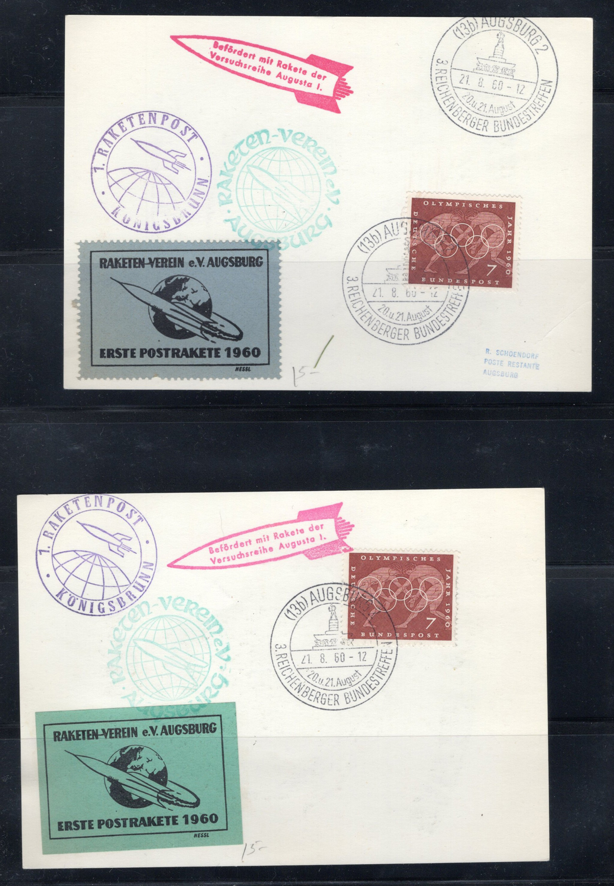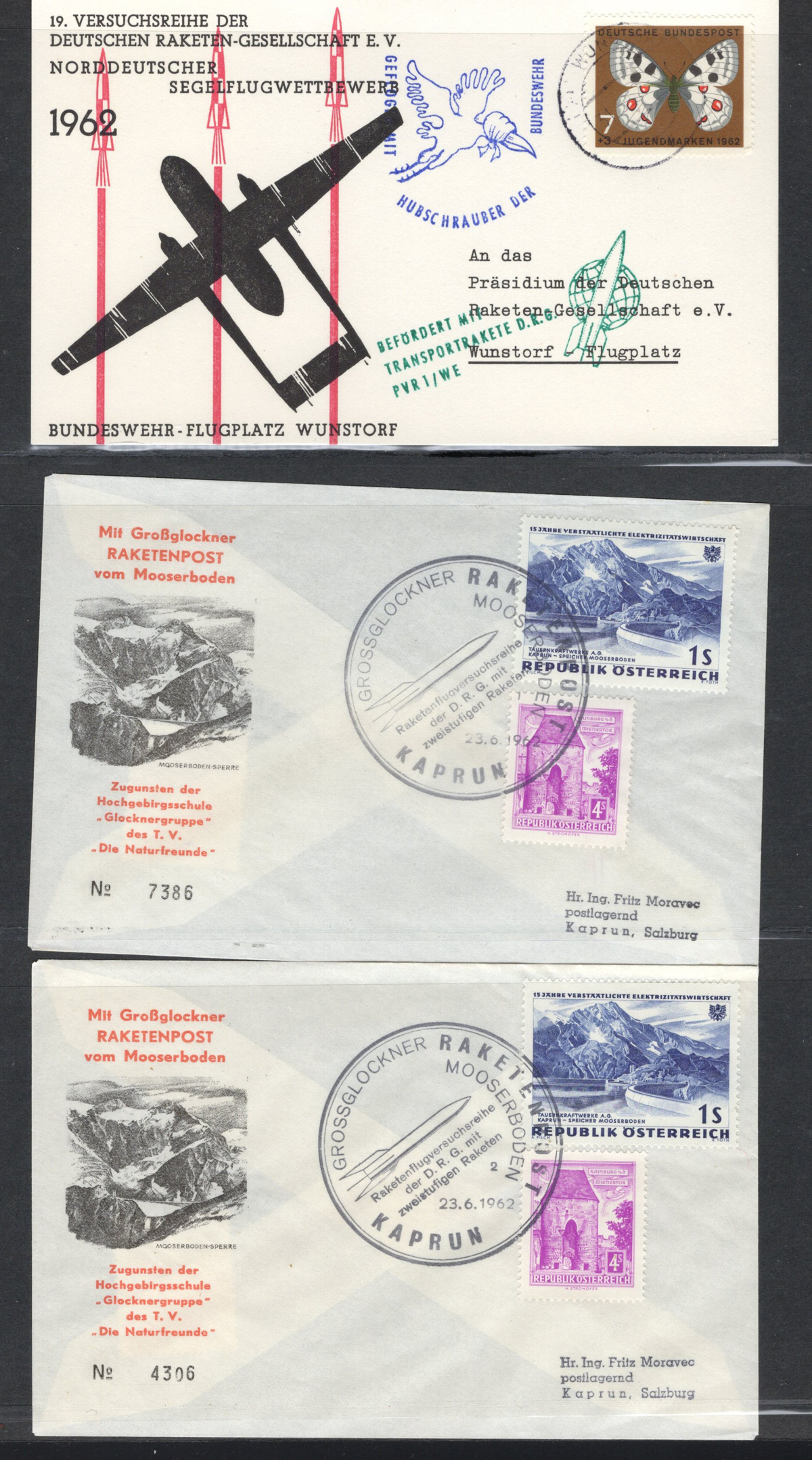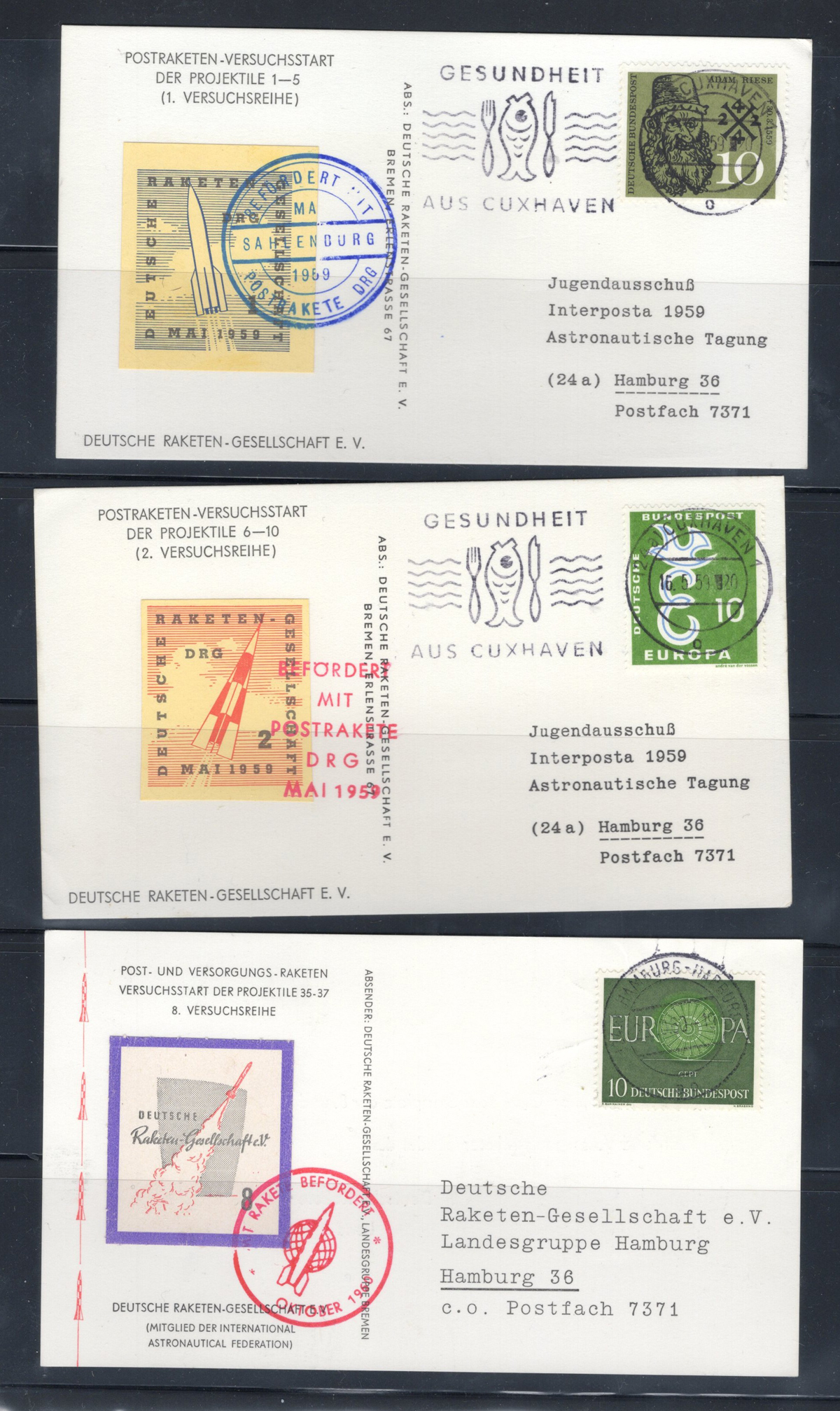 592 CVR   imageCollection of Rocket and Ship to Shore Mail, with 29 covers, including from Canada, United States, Germany, Netherlands, Austria, etc. as well as two panes of 8 stamps each of Netherlands rocket mail labels. Overall very fine and a useful grouping of this popular collecting area. All covers scanned online. (Scan 1) (Scan 2) (Scan 3) (Scan 4) (Scan 5) (Scan 6) (Scan 7) (Scan 8) (Scan 9) (Scan 10) (Scan 11) (Scan 12) (Scan 13) (Scan 14) (Scan 15) (All Scans) (All Images)