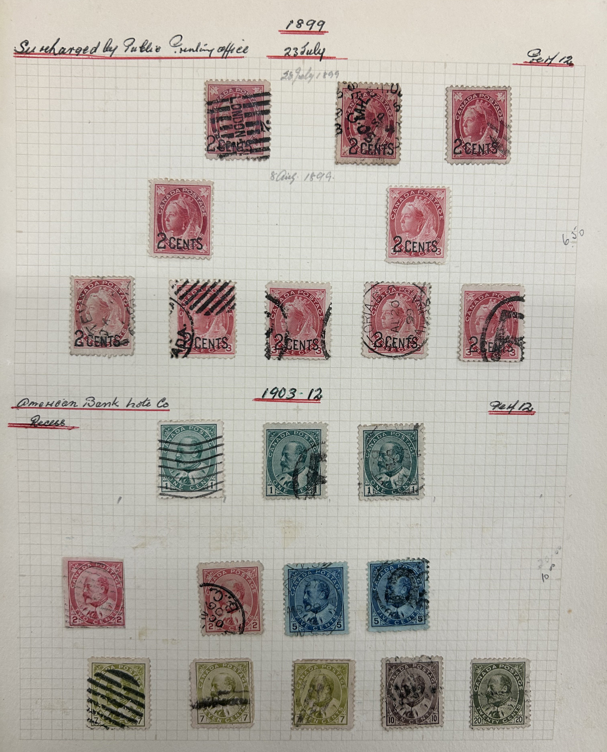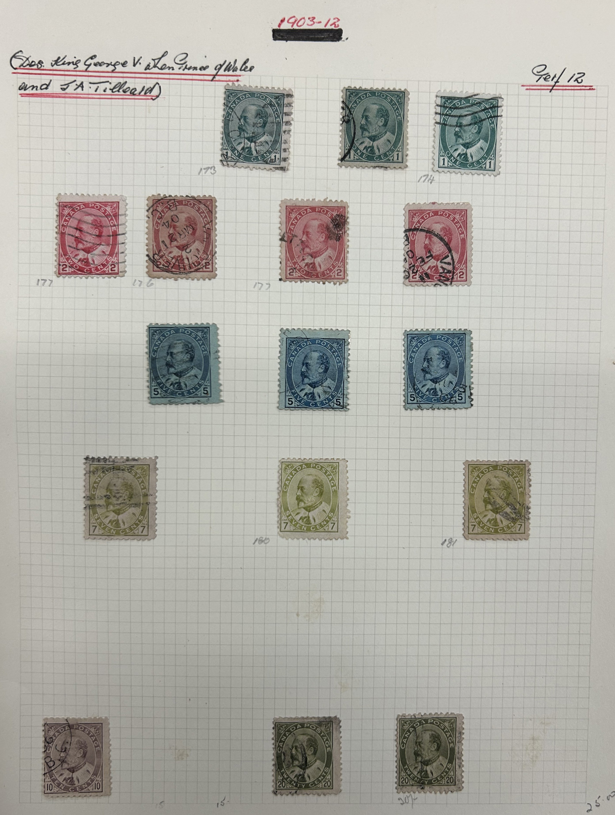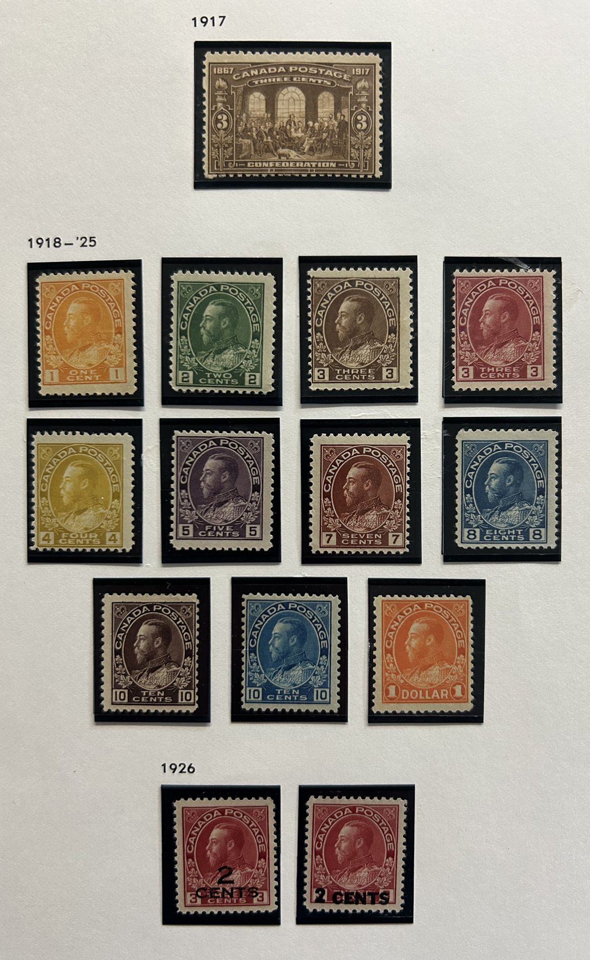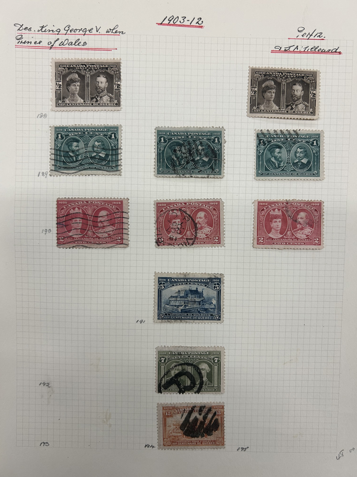613 O/og 14/400 imageCollection of Mint and Used Canada, 1859-1962, an old-time collection mounted on quadrille pages in an album. The collection starts with a #14, a 3c, 6c and 8x 15c Large Queens, followed by Small Queens to the 50c (incl. 6x 10c, 2x 20c, 5x 50c), Jubilees to the 10c, complete Leafs and Numerals, Edwards to the 20c, Québecs to the 15c, good selection of Admirals to the $1 (plus War Tax), partial Scroll set (includes a 50c Bluenose), complete 1927 sets, and so on, with several incomplete sets, but the value is mostly before the 1930s. Most of the stamps are used, including several with town cancels (mostly from British Columbia) and mint stamps start appearing in the 1930s. Also starting in the 1930s are mint and used blocks and plate blocks of four. All in all a useful collection, with some faults in the earlier material, but mostly fine to very fine. See pictures for only some of the pages. (Scan 1) (Scan 2) (Scan 3) (Scan 4) (Scan 5) (Scan 6) (Scan 7) (Scan 8) (Scan 9) (Scan 10) (Scan 11) (Scan 12) (Scan 13) (Scan 14) (All Scans) (All Images)