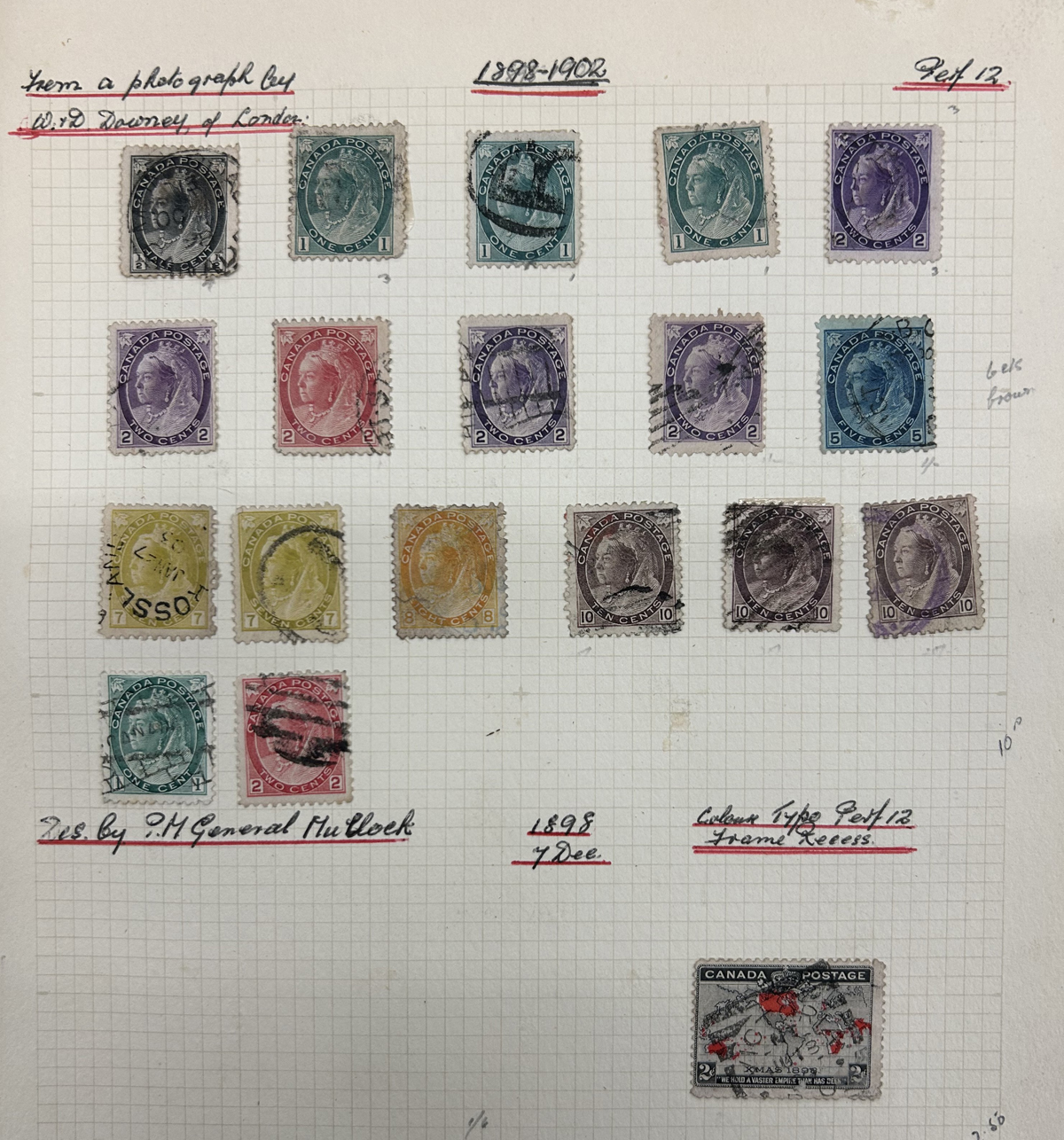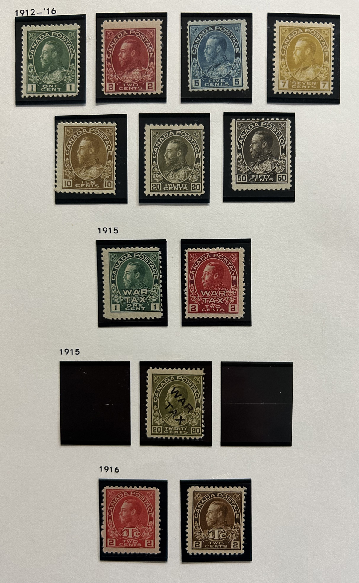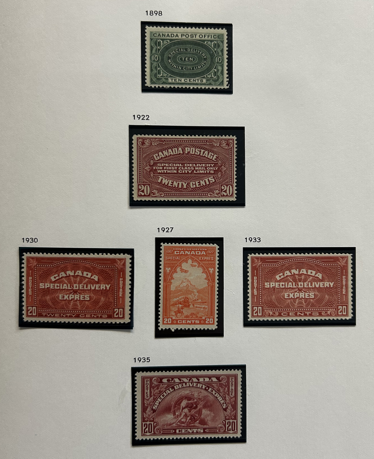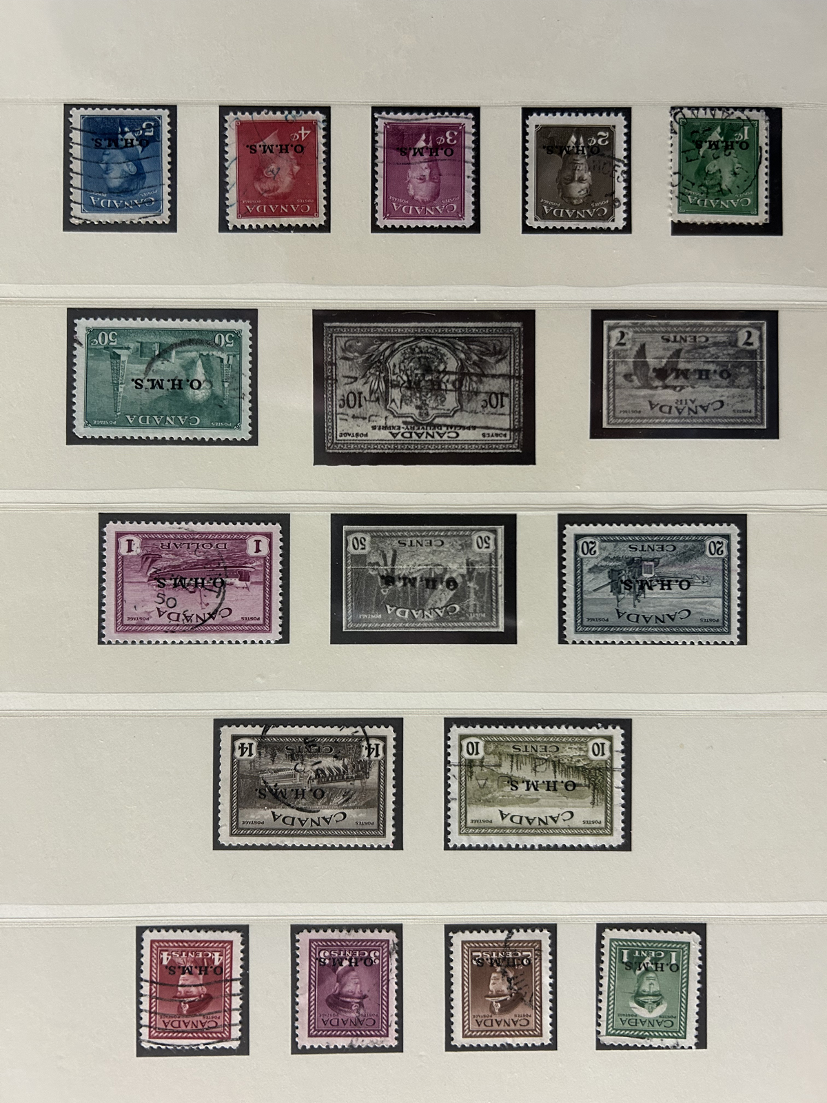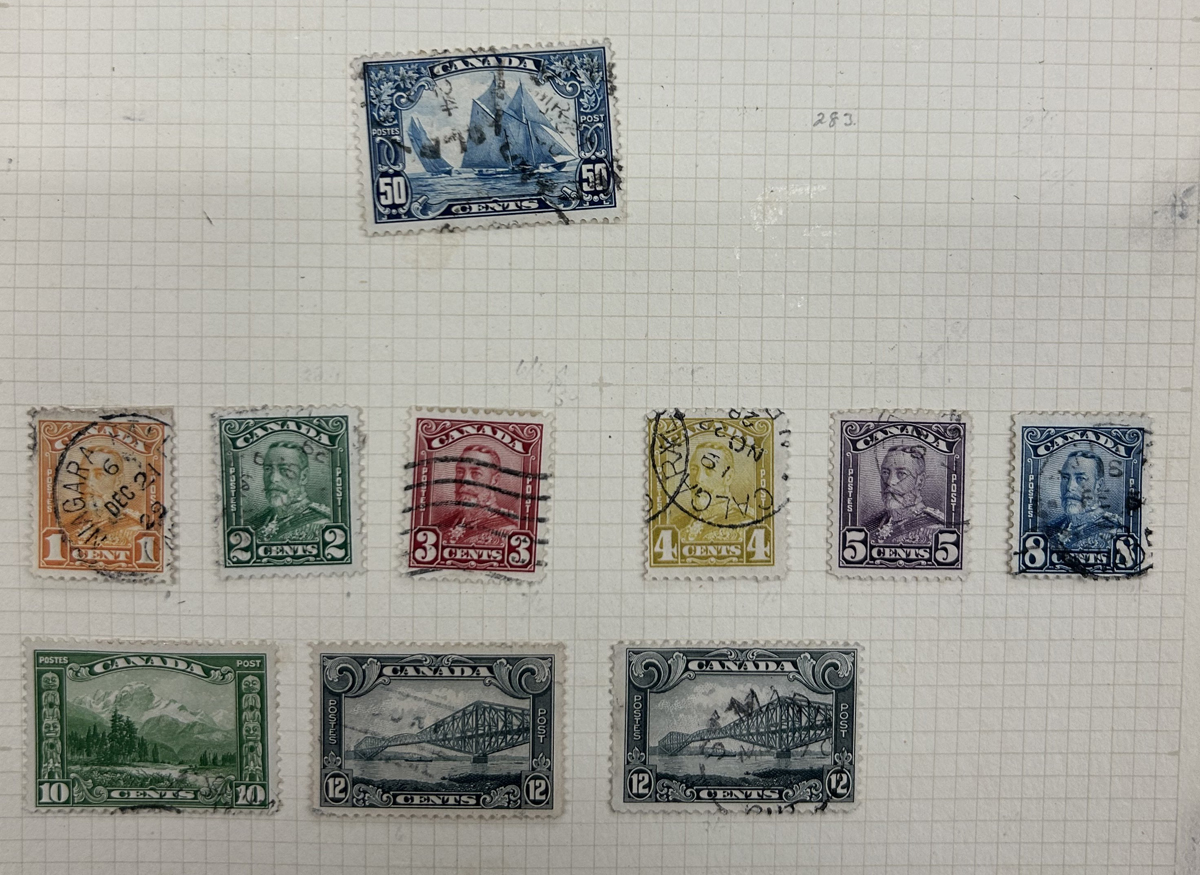 613 O/og 14/400 imageCollection of Mint and Used Canada, 1859-1962, an old-time collection mounted on quadrille pages in an album. The collection starts with a #14, a 3c, 6c and 8x 15c Large Queens, followed by Small Queens to the 50c (incl. 6x 10c, 2x 20c, 5x 50c), Jubilees to the 10c, complete Leafs and Numerals, Edwards to the 20c, Québecs to the 15c, good selection of Admirals to the $1 (plus War Tax), partial Scroll set (includes a 50c Bluenose), complete 1927 sets, and so on, with several incomplete sets, but the value is mostly before the 1930s. Most of the stamps are used, including several with town cancels (mostly from British Columbia) and mint stamps start appearing in the 1930s. Also starting in the 1930s are mint and used blocks and plate blocks of four. All in all a useful collection, with some faults in the earlier material, but mostly fine to very fine. See pictures for only some of the pages. (Scan 1) (Scan 2) (Scan 3) (Scan 4) (Scan 5) (Scan 6) (Scan 7) (Scan 8) (Scan 9) (Scan 10) (Scan 11) (Scan 12) (Scan 13) (Scan 14) (All Scans) (All Images)