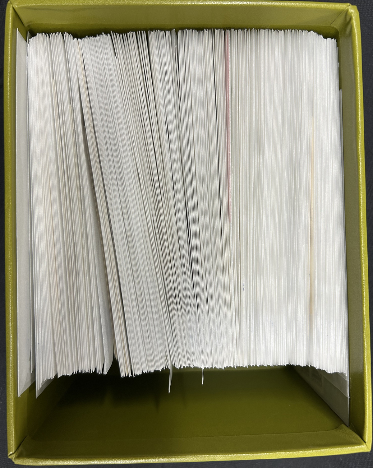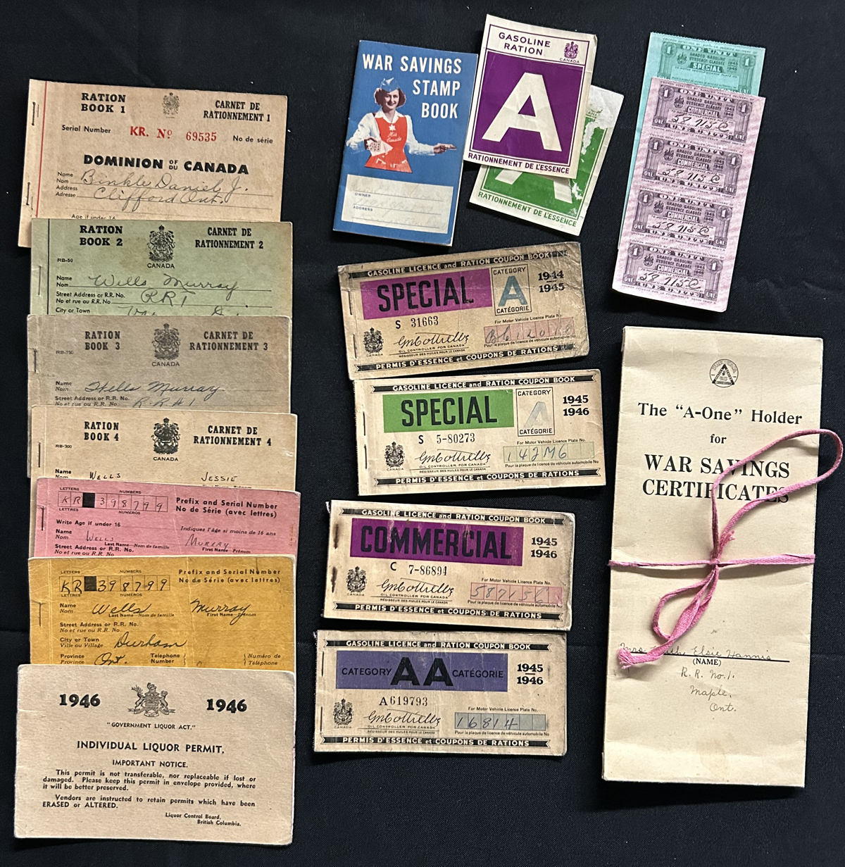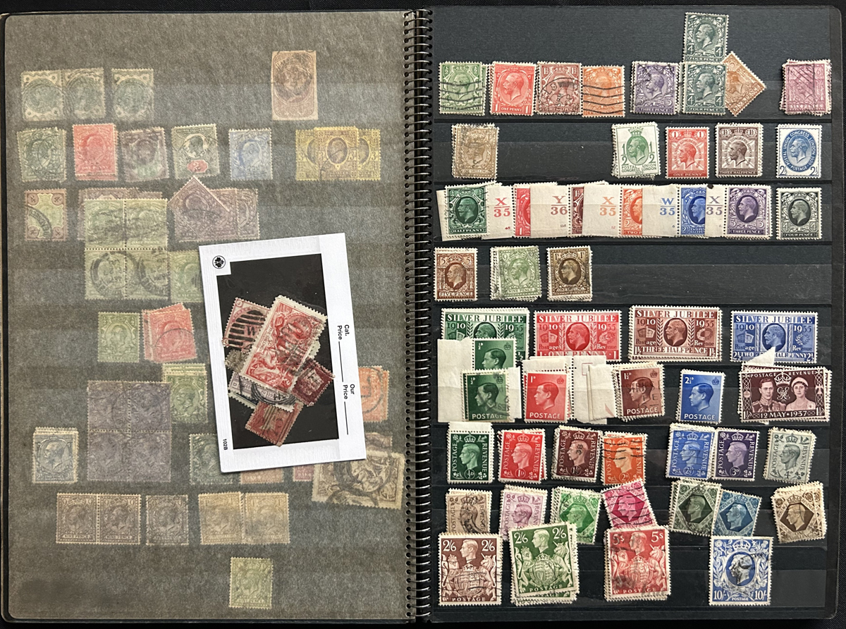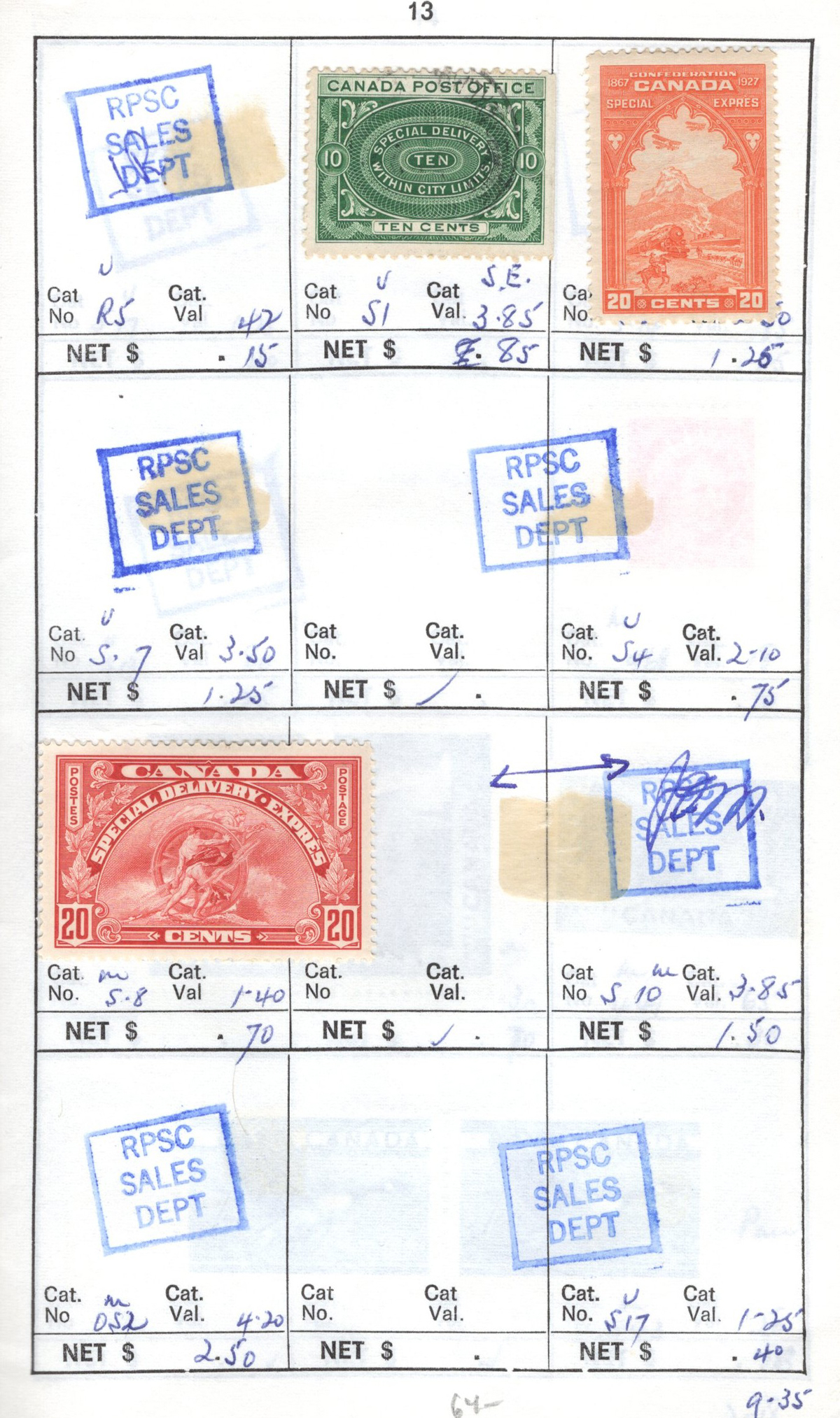 611 CVR/O/og   imageBanker's Box of Stamp and Cover Treasures, a useful offering with a good variety of mostly Canadian and Newfoundland material (stamps and covers), plus a few worldwide items. It is impossible to list everything in here, but saw a stack of about 120 Canada and Newfoundland covers and cards (saw used stationery, airmail, military, postmarks, precancels and much more, from Small Queens to about the 1950s), Canada $4 Bighorn Sheep FDC, a collection of Admiral booklet panes (the covers and inter-leaving, with no stamps) written-up on on about a dozen pages along with an original Post Office announcement for the issue of stamps dated FEB.17.1926 and another letter dated SEP.1925 announcing the sale of postage stamps from QV to Admirals. A stack of about 55 dealer cards containing complete, or semi-complete plate block matched sets (Sc. 269-598), two binders contain about 130 cancelled cheques from 1918 to the 1930s, each with KGV or revenue stamps (incl. War Tax issues), a dozen or so mint souvenir sheets with a face value over $50, a small stack of Newfoundland booklet covers and inter-leavings, some Christmas Stick-N-Tick packs, a small box of mint Canada low values, a small box full of used Newfoundland stamps, a stack of 10 WWII ration books (gasoline, etc.), a binder of mint and Used various Canada, a dealer card with several mint Newfoundland Customs Duty stamps, a stockbook of mint and used BG (saw some mint KGV issues, etc.), a nice USA mint and used collection (1929 to 1960, with B.O.B.) and more. Our 17 pictures show an overview only, and we recommend in-person viewing. A fun box lots of potential, ideal for the vest-pocket, club, or online dealer. (Scan 1) (Scan 2) (Scan 3) (Scan 4) (Scan 5) (Scan 6) (Scan 7) (Scan 8) (Scan 9) (Scan 10) (Scan 11) (Scan 12) (Scan 13) (Scan 14) (Scan 15) (Scan 16) (Scan 17) (All Scans) (All Images)