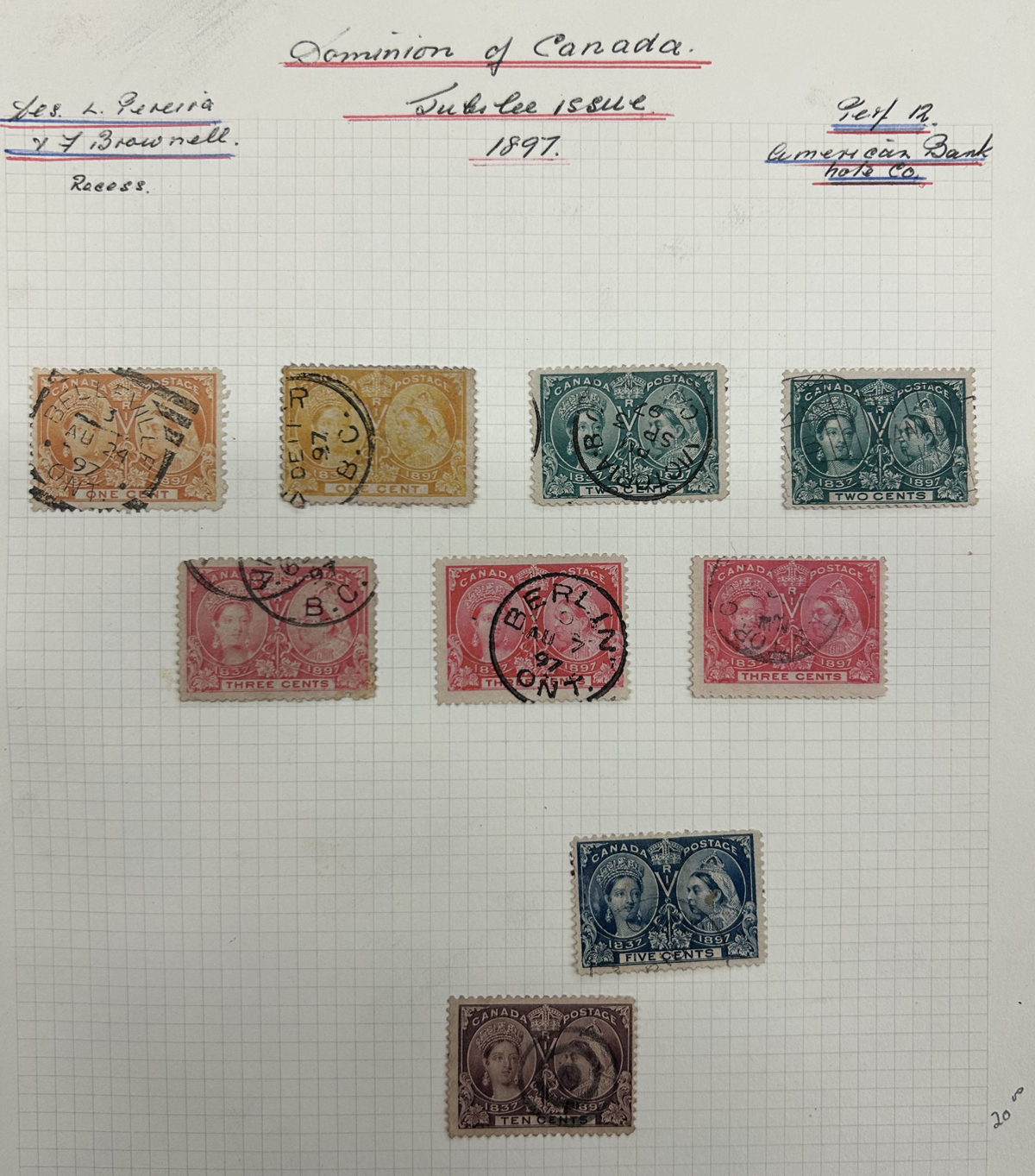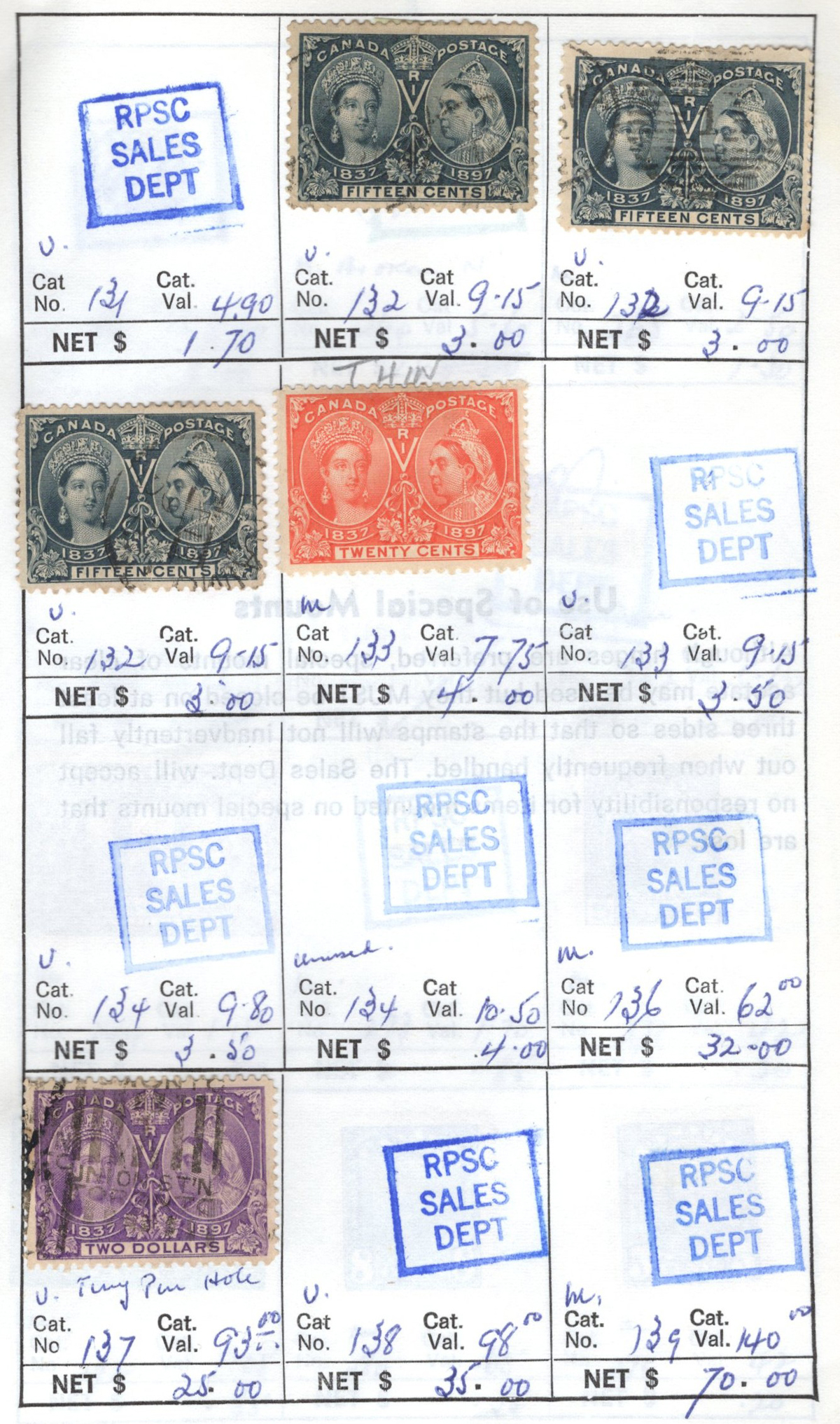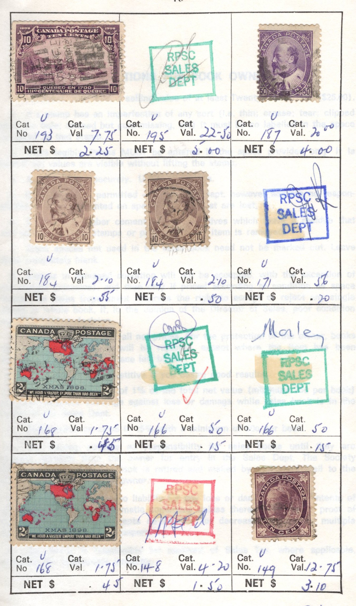 610 O/og   imageCircuit Book from 1968 with Valuable and Useful Mint and Used Canada, with 105 stamps ranging from 1897 to the 1950s. A much better circuit book than is normally seen, and includes a number of better items such as Jubilees ($2,245 worth) noting a very fine used $2, a 15c with Nanaimo squared Circle cancel which is unrecorded on that value, also saw a mint and a used 50c Bluenose, a used $1 Parliament, used 7c and 10c Québecs, used 10c Leaf, used 50c Edward, two used 10c Edwards, and more, including some back of the book. Overall fine to very fine, most pages scanned online. (Scan 1) (Scan 2) (Scan 3) (Scan 4) (Scan 5) (Scan 6) (Scan 7) (Scan 8) (Scan 9) (Scan 10) (Scan 11) (Scan 12) (Scan 13) (All Scans) (All Images)