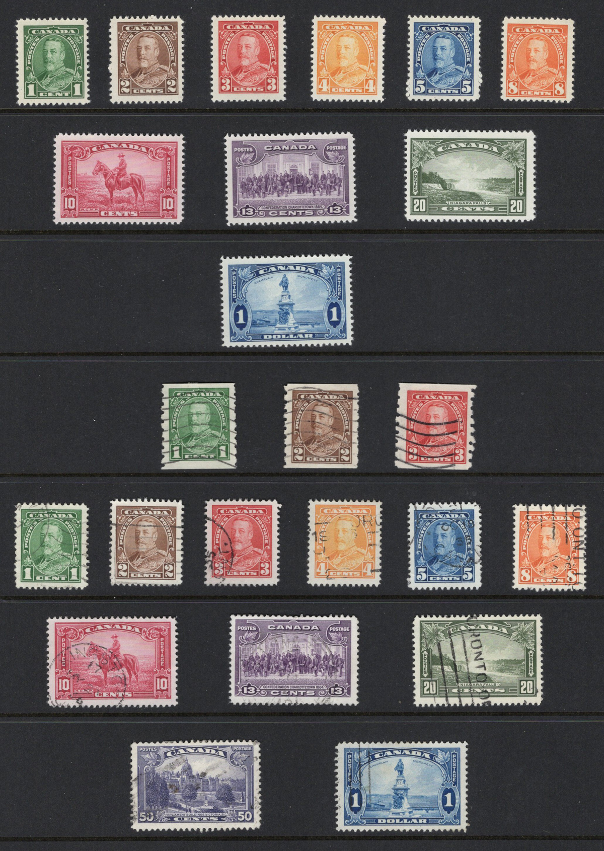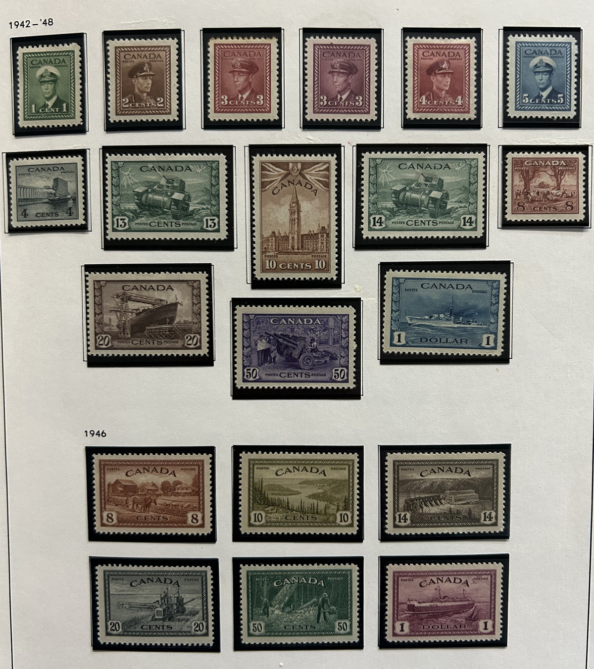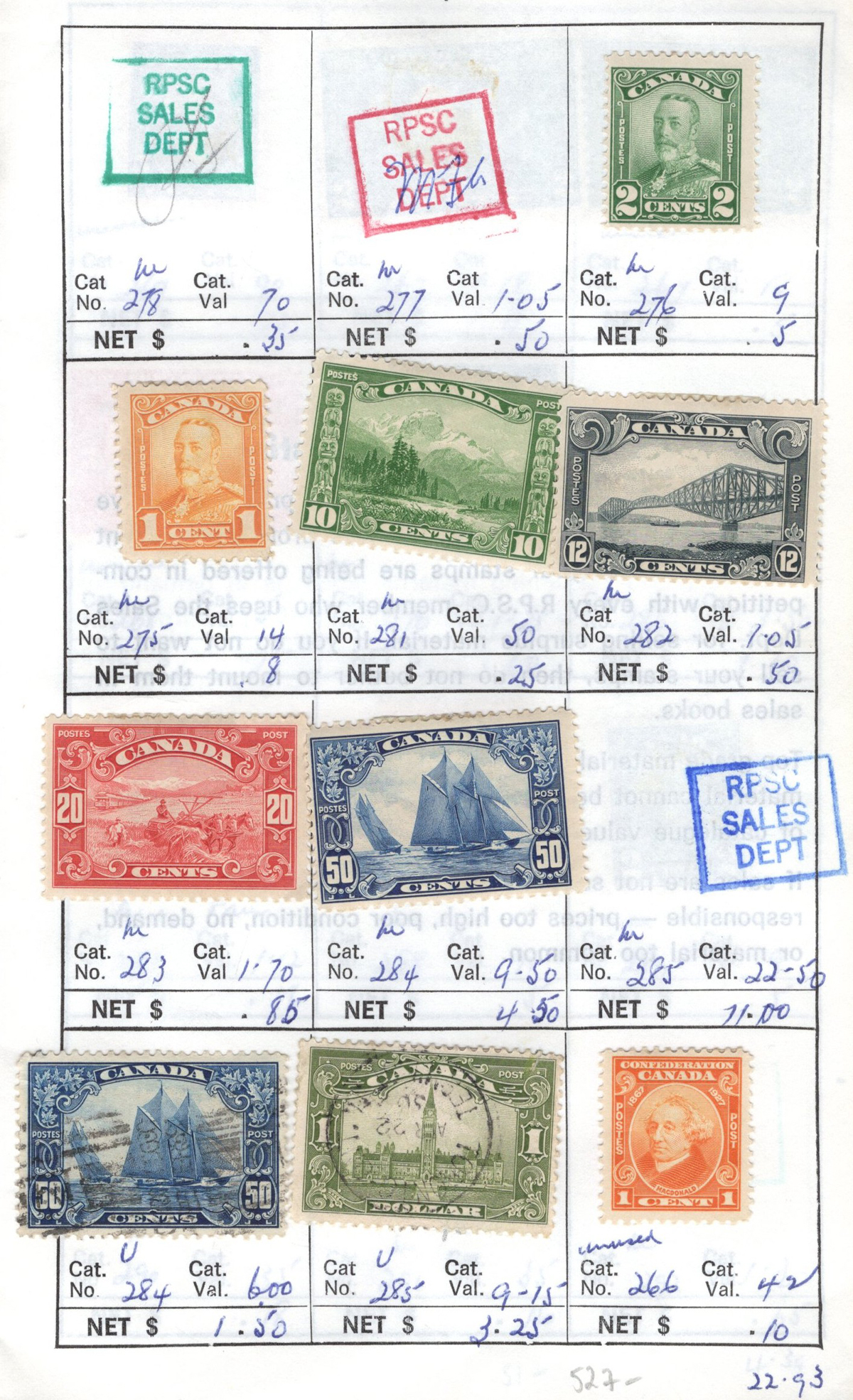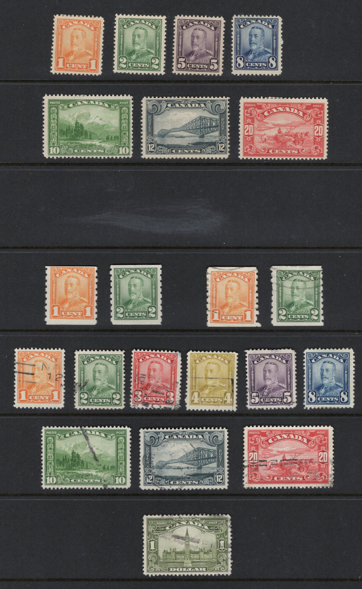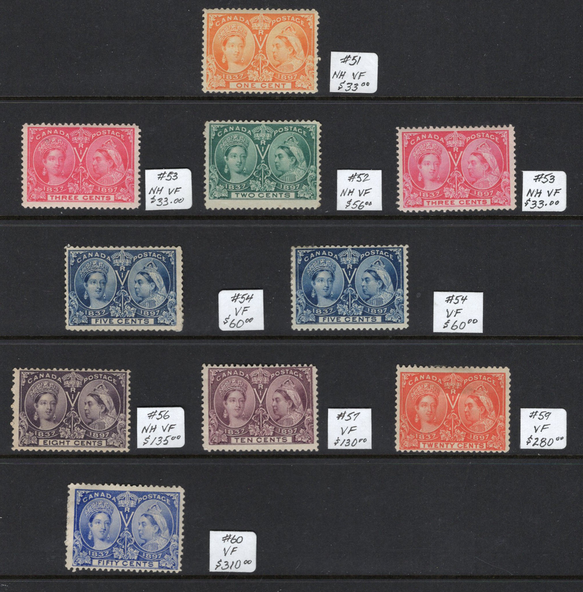 614 O/og/nh 34/726 imageCollection / Stock of Mint and Used Canada, 1880s to 1950s, displayed on 27 Hagner stock pages, with a mix of mint and used, and quite often with one of each. Starts with a page of (mostly mint) Small Queens, followed by 4 pages of mint and used Jubilees (to the 50c), noting twelve mint 8c values and much more. This followed by Maps, Leafs and Numerals, Edwards, Admirals, and so on to the end, including back of the book placed with regular issues. One of the pages that stood out contains twenty used $1 Fisherman issue. Many of the used stamps have nice c.d.s. cancels, the mint stamps range from no gum, to hinged to never hinged, and we noted some faults (especially towards the beginning), still an overall fine to very fine offering, with a huge catalogue value. Our online photos should give a good indication of the value within, and do not show the entire contents. (Scan 1) (Scan 2) (Scan 3) (Scan 4) (Scan 5) (Scan 6) (Scan 7) (Scan 8) (Scan 9) (Scan 10) (Scan 11) (Scan 12) (Scan 13) (Scan 14) (Scan 15) (Scan 16) (Scan 17) (Scan 18) (All Scans) (All Images)