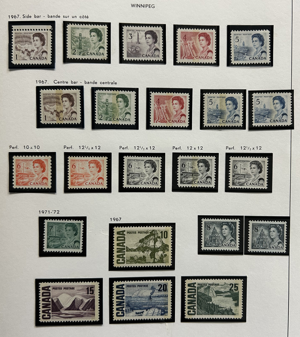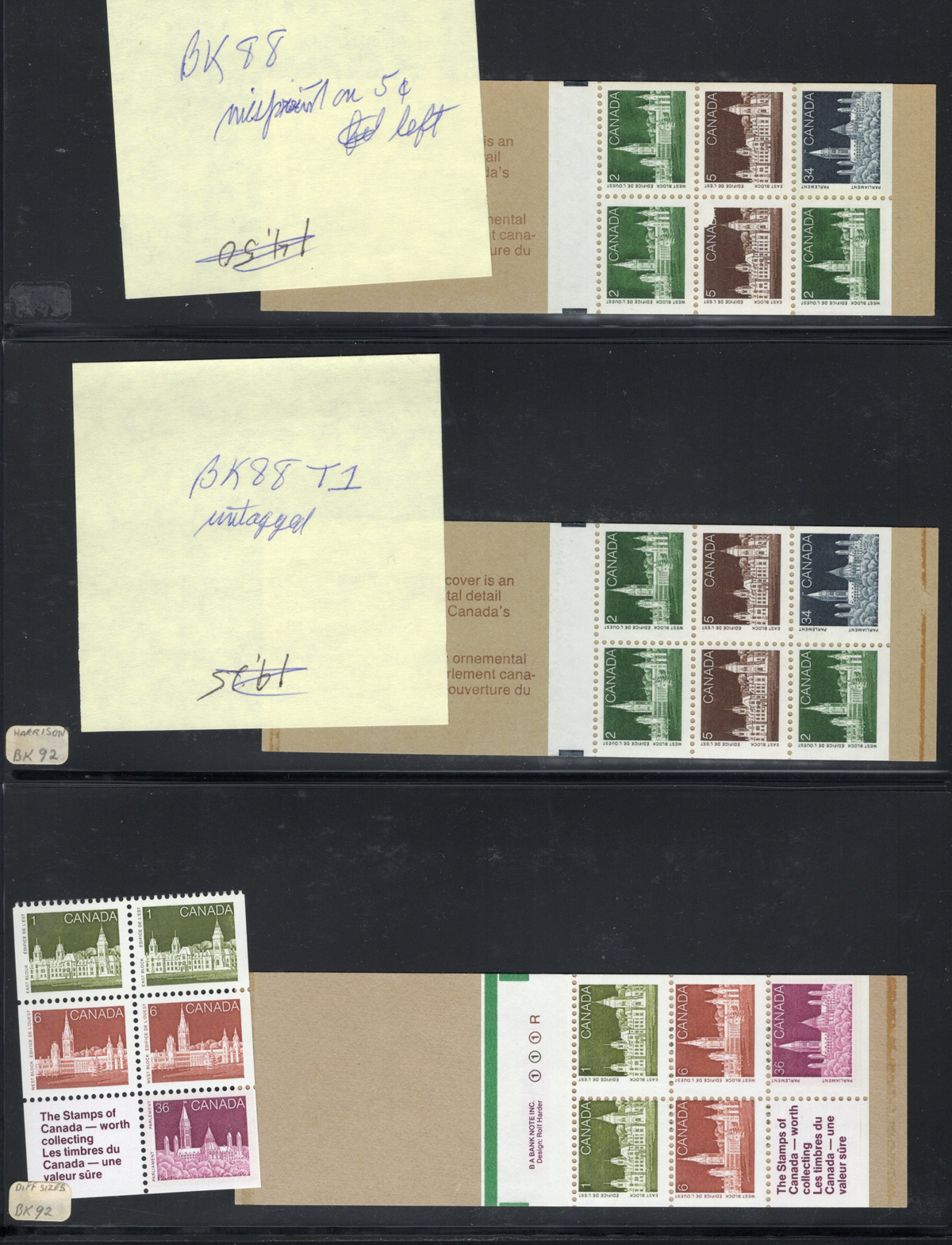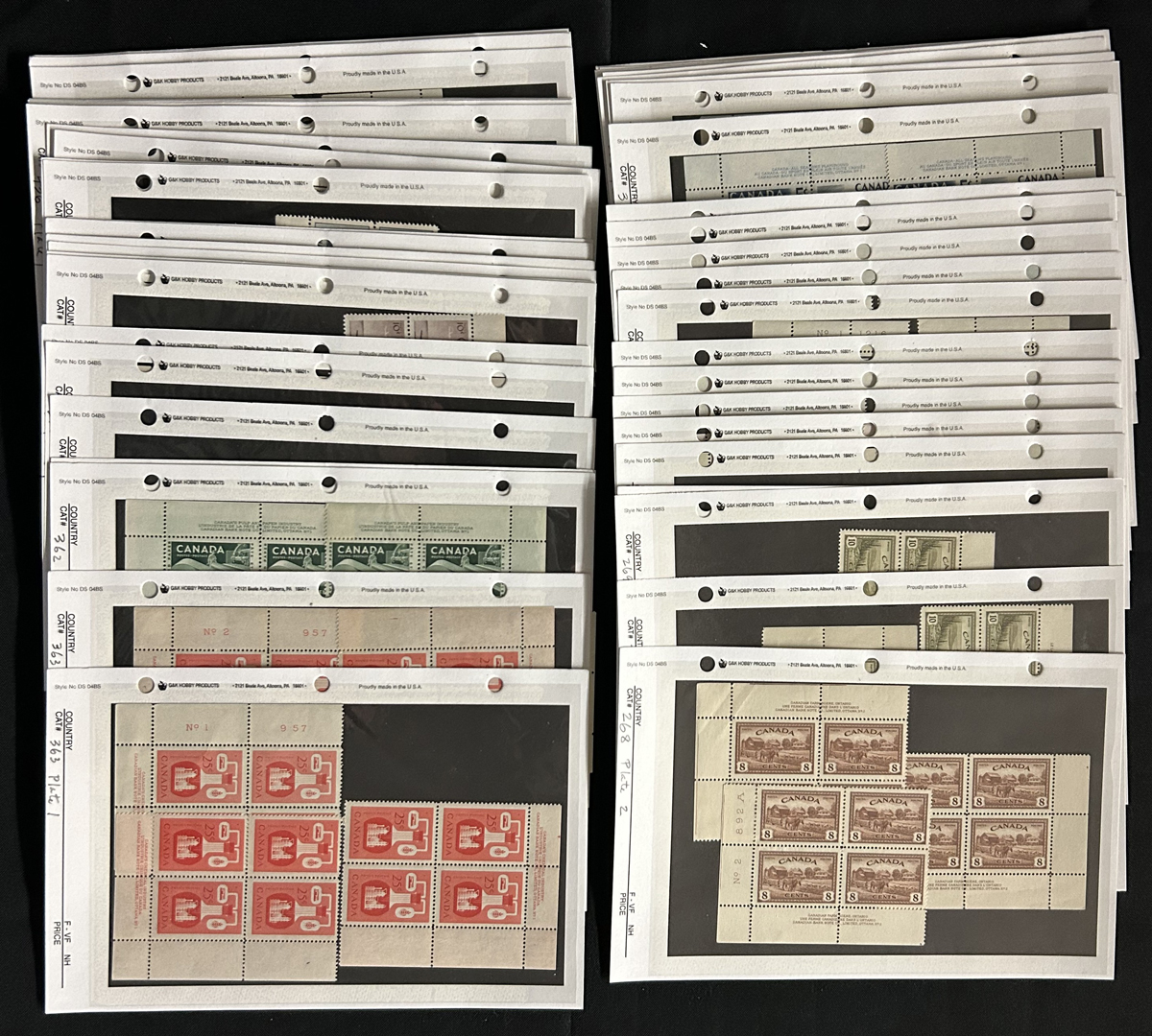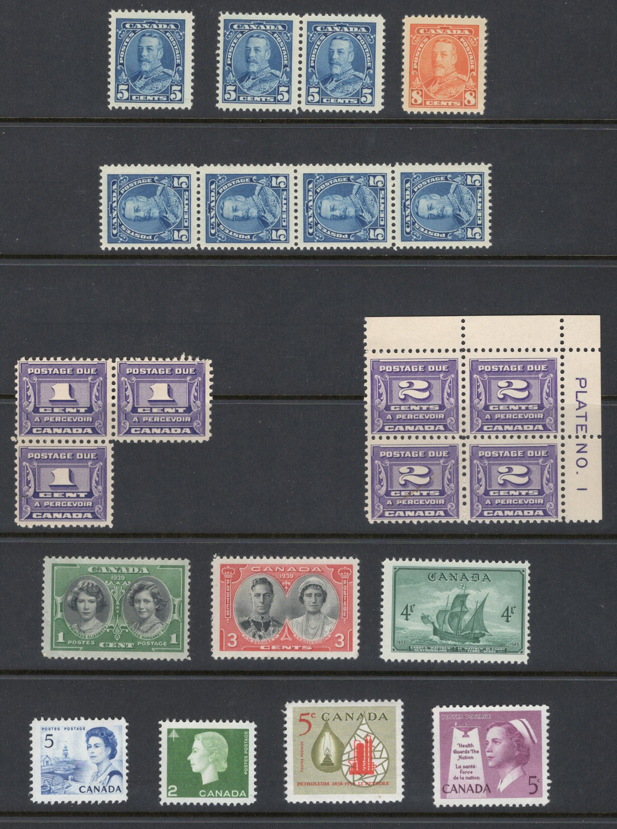 617 nh 347/1172 imageModern Mint Collection, with Many Varieties, 1954-1985, all mounted on 37 double-sided Vario stock sheets. The main collection consists of mint never hinged regular issues, which are complemented by coils, booklets and especially printing varieties. We note many tagging varieties including untagged, bar varieties, etc., as well as many misperforated stamps, some quite drastically-so, plus some misprints, paper varieties, missing ink, etc. Some of the stamps that stood out include #536 with missing inscriptions (sold as is, would require a certificate), a good selection of Caricature issue varieties, many 17c green Parliament varieties, untagged pair of #570-71 (Unitrade $200) and many more. A useful collection that would benefit from being viewed in person, we have selected a number of pages to try and represent the flair of the collection. Should be a useful one for varieties enthusiasts, collectors wishing to add variety to their collection, or online resellers. (Scan 1) (Scan 2) (Scan 3) (Scan 4) (Scan 5) (Scan 6) (Scan 7) (Scan 8) (Scan 9) (Scan 10) (Scan 11) (Scan 12) (Scan 13) (Scan 14) (Scan 15) (Scan 16) (All Scans) (All Images)